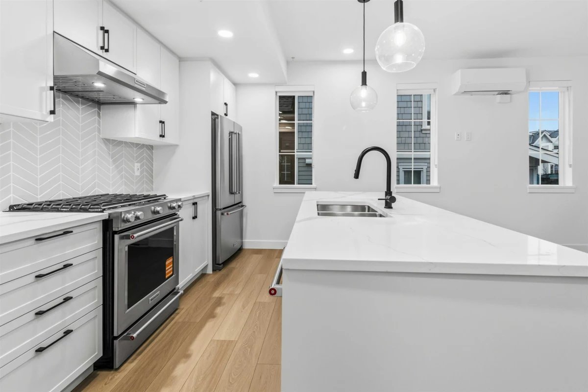 Introducing The Robinsons Parkside Collection—a contemporary 3bed + 2.5bath townhome in the heart of Coquitlam West, thoughtfully designed for modern family living. This stylish 3-level residence offers approx. 1,300+ sf of well-planned interior space, featuring an open-concept kitchen w/ quartz countertops, KitchenAid s/s appliances, & plenty of storage drawers, alongside bright living & dining areas seamless flow throughout. Enjoy outdoor living at its finest w/ a huge private yard & balcony, perfect for relaxing. Residents have exclusive access to an impressive 5,600+ sqft amenity bldg complete w/ a rooftop BBQ deck, yoga room, & expansive outdoor spaces for families & kids. Ideally located just steps to parks, schools, shopping, recreation, & a short walk to the Burquitlam SkyTrain.