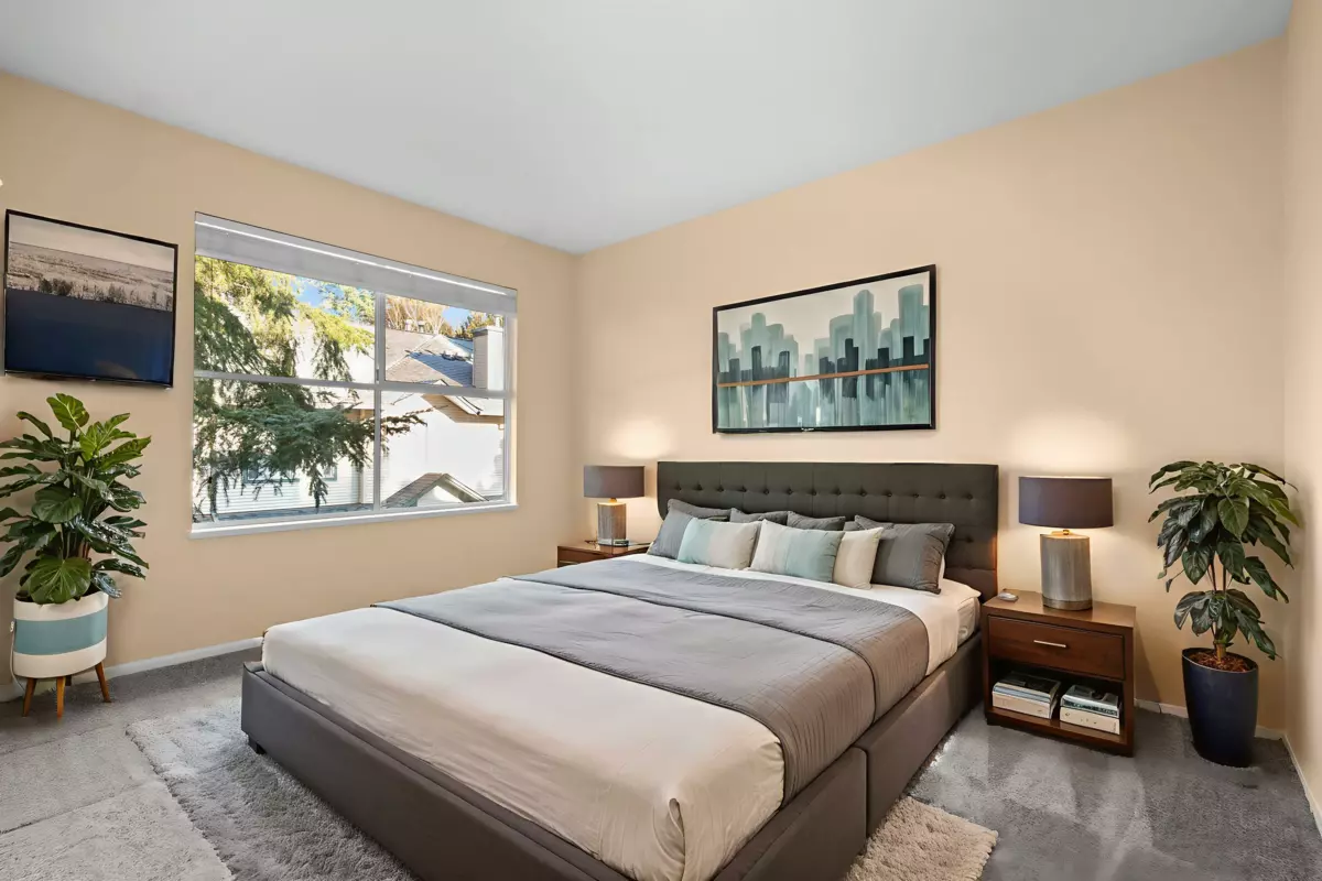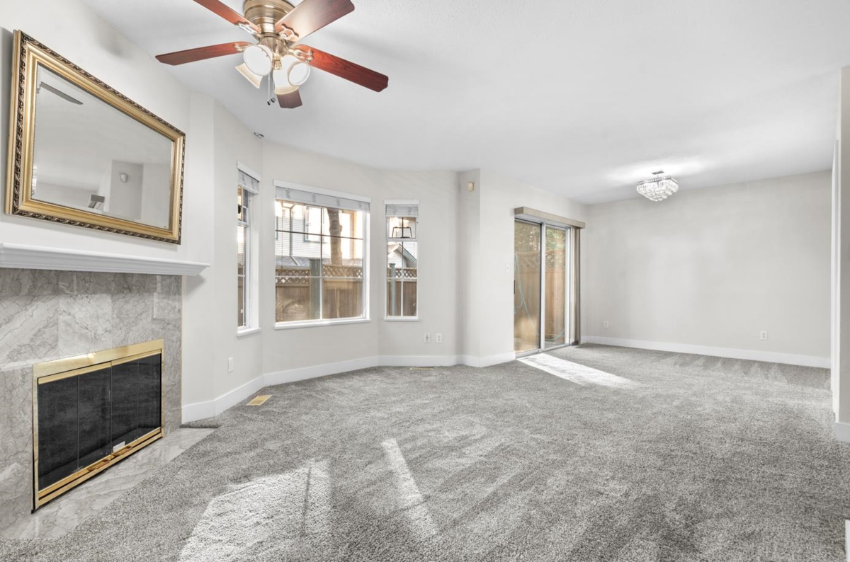 Welcome to Creekside Village! This beautiful, 3 Bed 3 Bath, 2-level family townhome is well maintained and includes a plethora of upgrades from 2021 including a renovated kitchen, carpet, paint, toilets and tiles. The thoughtful layout balances open, shared spaces with private bedrooms, making it ideal for family living. Ground floor includes a family room with natural gas fireplace, half washroom, kitchen, and dining area and upstairs features 3 well-sized bedrooms and 2 full washrooms. Enjoy summer BBQs in your private fenced backyard with a concrete patio. Parking includes a single car garage and an uncovered parking pad at your front door for added convenience. Located within walking distance to Bear Creek Park and public transit, and a short drive to schools, shopping and recreation.