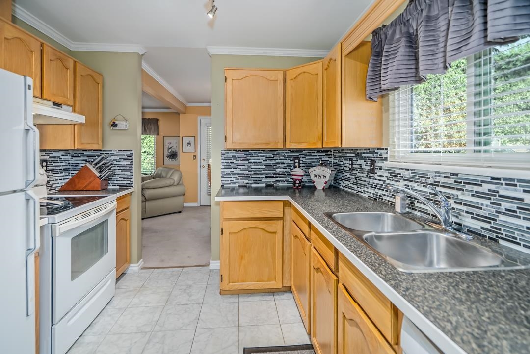 LOOK NO FURTHER!! Chantilly Lane is a HIGHLY Sought after and RARELY available Complex. This Gem is tucked away in a quiet community in Fleetwood. Large END unit offers 3Bdrm/3Bthrm & over 1600 Sq ft of Living space. The living/dining room walks out to your beautiful patio and huge wrap around yard. Bright functional kitchen offers oak cabinets & newer countertops. Upstairs has 3 generously sized rooms. Double car garage. Newer roof & windows. Just Minutes Away from Schools, Parks, Transit, Shopping, Restaurants & just a few Blocks from the highly anticipated Surrey/Langley Skytrain.
