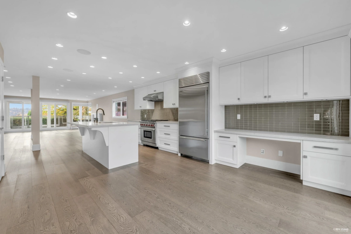 Situated on a quiet, sought-after street in Lower Ambleside, this custom-built 4-bedroom modern home has been extensively renovated with permits—including new roof, exterior, windows, and a stunning gourmet kitchen featuring Sub-Zero, Wolf, and Miele appliances. Additional upgrades include built-in speakers, a security system, and an in-ground sprinkler system.Enjoy spectacular ocean views from your sun-soaked south-facing primary bedroom, living room and expansive outdoor patios—perfect for alfresco dining and entertaining.Just a short stroll to the beach, seawall, and Ambleside’s shops and cafés, this is a rare opportunity to own a beautifully updated, move-in-ready home in one of West Vancouver’s most desirable neighbourhoods.