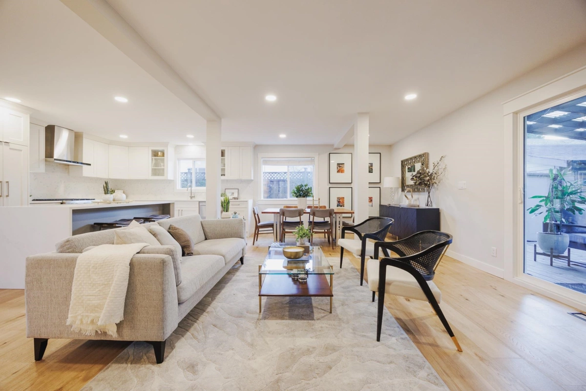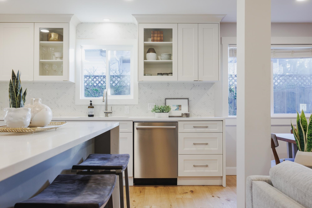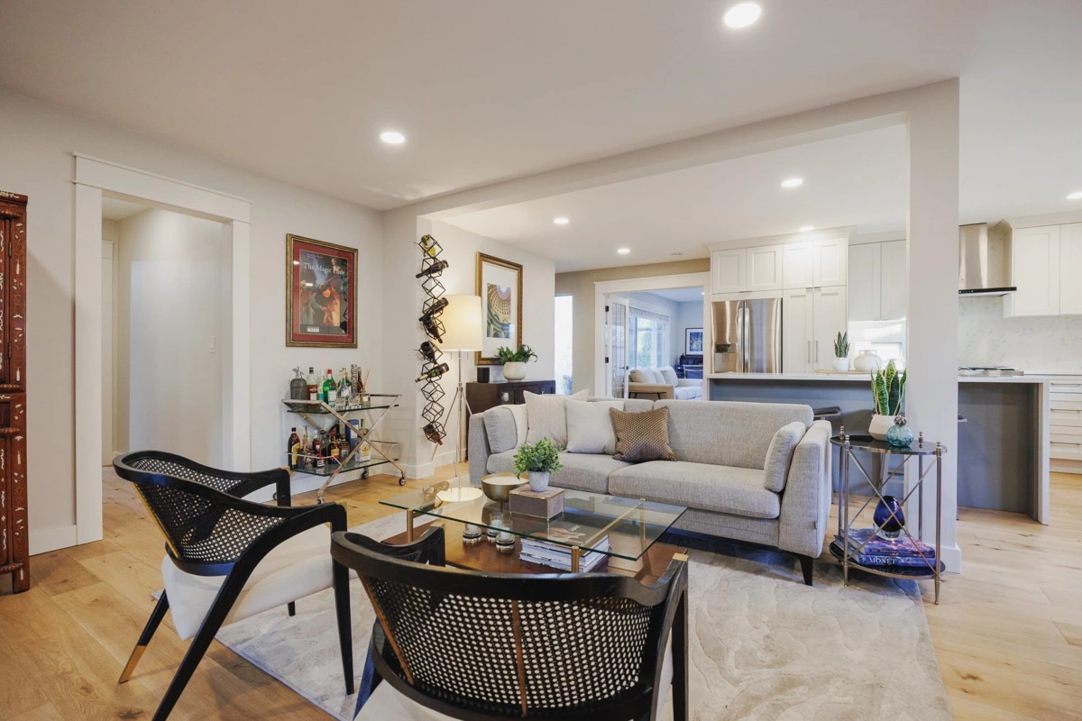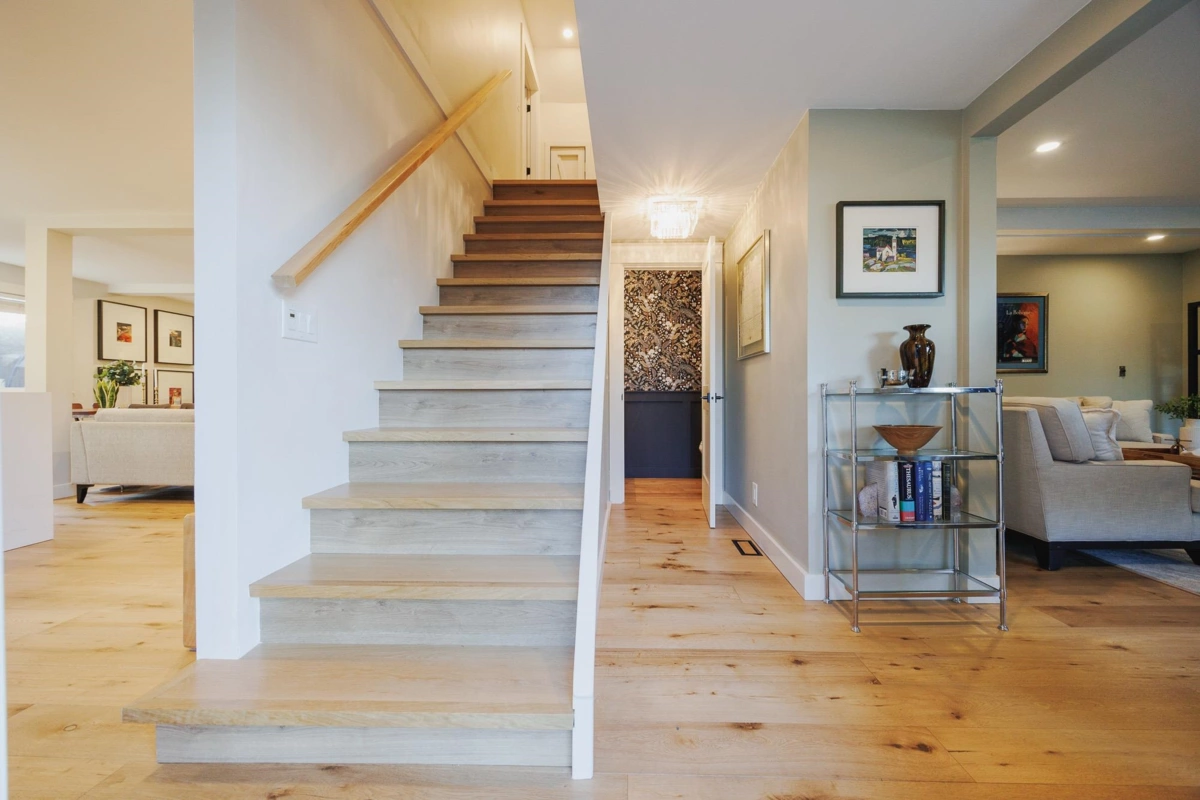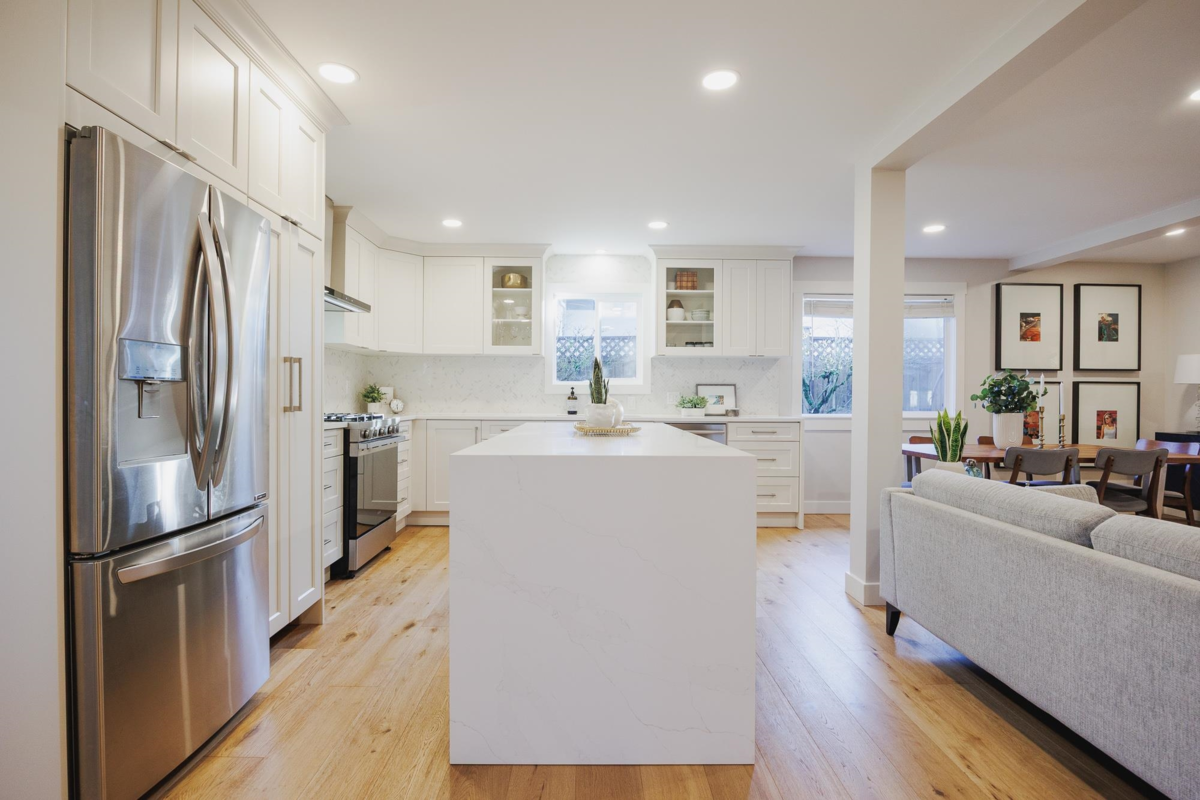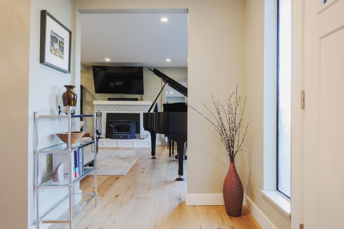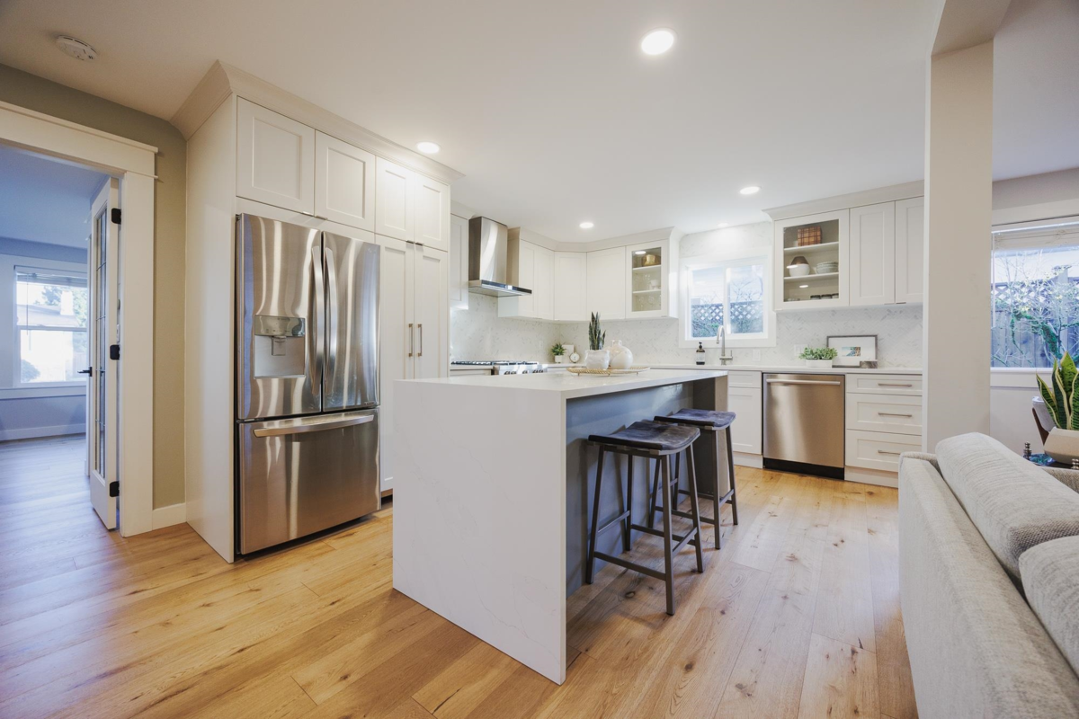 FAMILY FRIENDLY! This tastefully renovated home offers all the modern conveniences while enjoying the larger lot and mature landscaping of days gone by. Stunning kitchen featuring gleaming stone countertops, chevron tile backsplash, engineered wood floors, a massive island, an abundance of shaker cabinets and stainless appliance package including gas range. The large living room offers cozy comfort with a real wood fireplace. 2 bedrooms plus den on the main floor, and 2 fully remodeled bathrooms. Upstairs you will find a thoughtfully designed primary suite with beautifully renovated ensuite with double vanity and a shower built for 2. Additional bedroom upstairs ideal for the littles. Other upgrades included: new ceilings with pot-lights throughout, new window coverings, large deck, etc..
