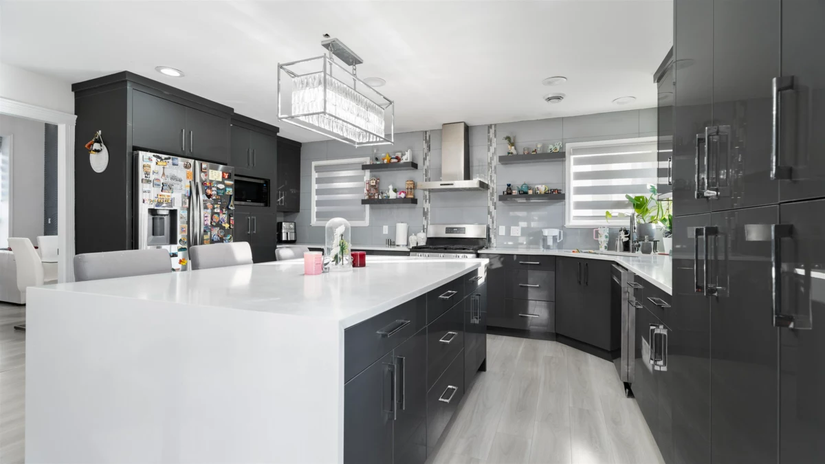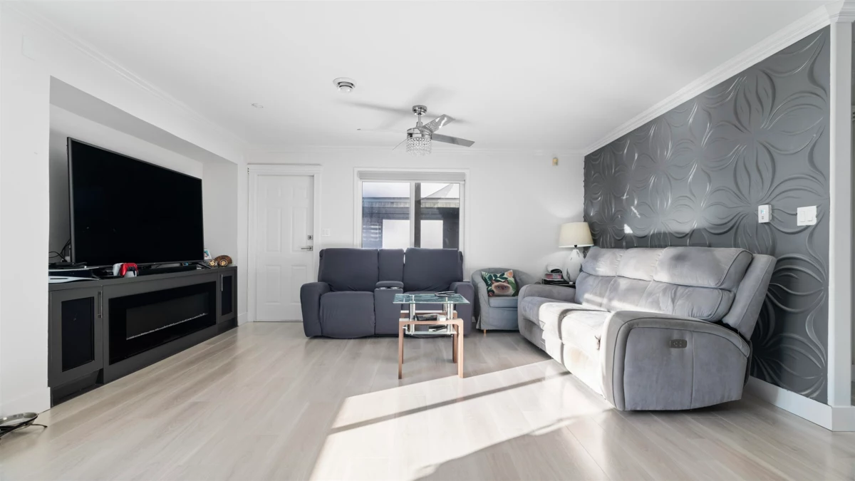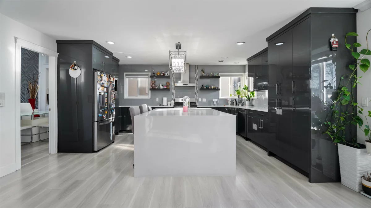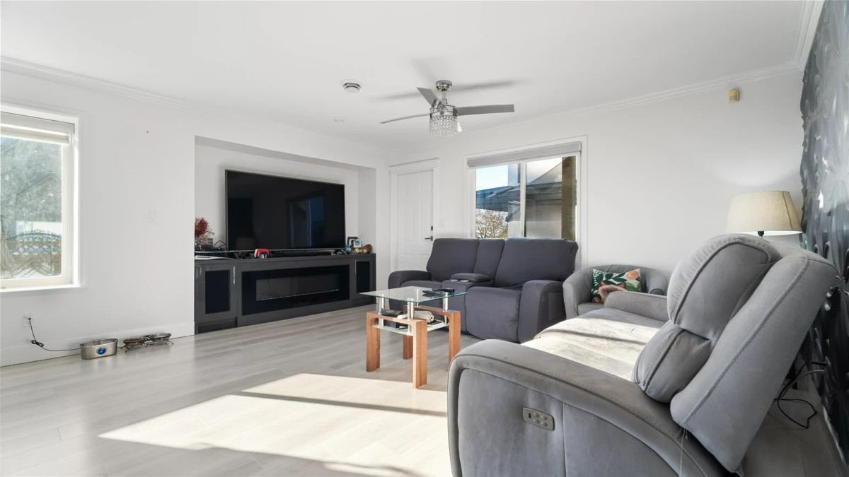 Gorgeous 3-level custom-built home in Panorama offering over 3,380 sq ft of living space on a 4,203 sq ft lot. The main house was fully renovated in 2022 and features high ceilings, a spacious living and dining area with a gas fireplace, and a modern kitchen with a large island, granite countertops, and stainless steel appliances. A generous family room with another fireplace, plus a main-floor bedroom with a full bathroom, adds excellent functionality. Upstairs offers four bedrooms with three ensuite bathrooms, including a large primary bedroom. The basement includes a 2-bedroom suite with separate entry and a large theatre room for the main house. Additional features include CENTRAL AC, rear lane access, walking distance to both levels of schools, and easy access to Highways 10 and 91.