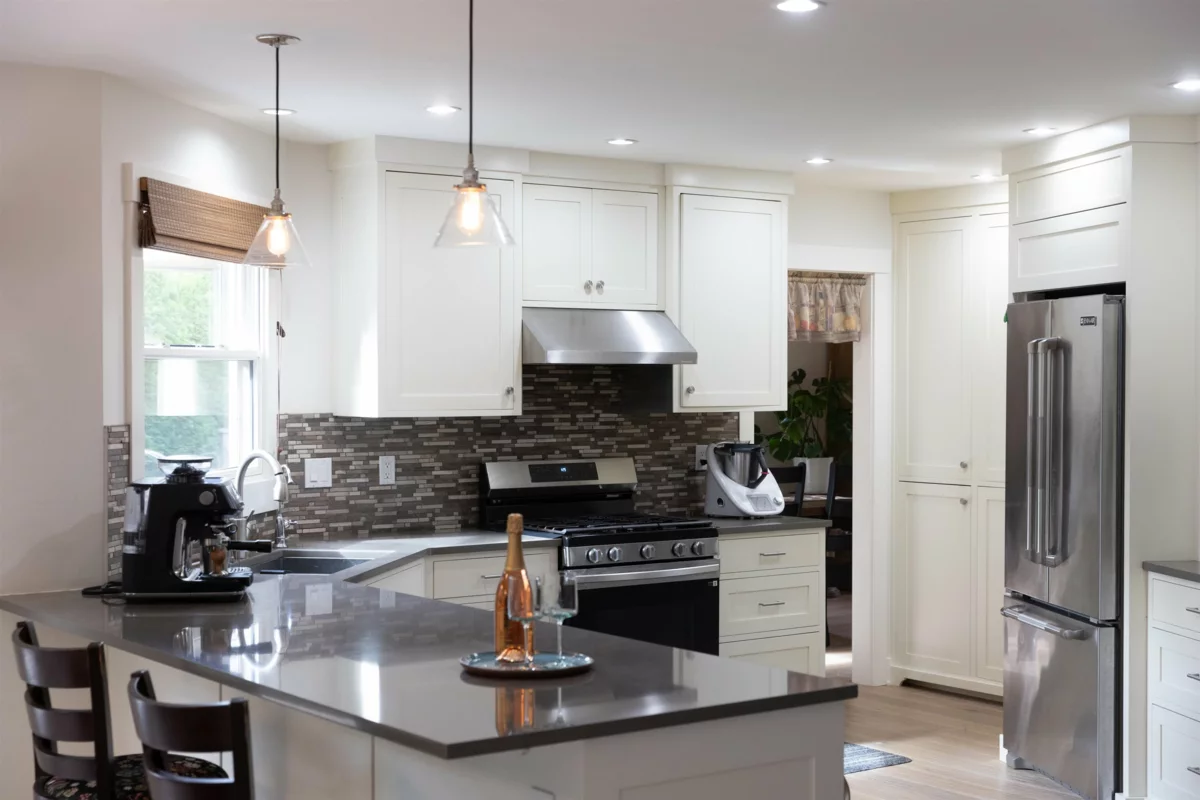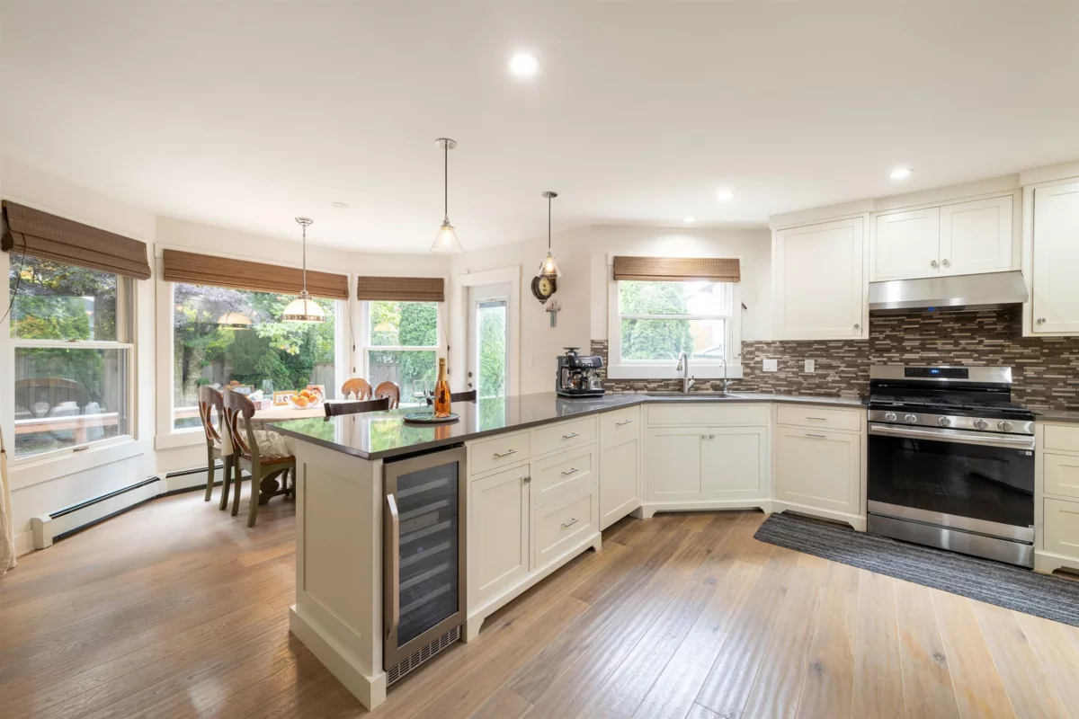 Completely renovated 3 bedrooms + Den elagant & cozy home! It has been done extremely well: Stunning cabinetry, all face framed furniture quality solid wood cabinets w/dove tailed drawers, high quality hardware, quartz counters and high-end appliances. Beautiful, handscraped driftwood oak wide plank flooring, designer lighting from Restoration Hardware and fabulous Eclipse folding doors that open onto sun drench south facing deck. Radiant flooring in two bathrooms upstairs. Racent renovations: deck(2018), fence & dishwasher(2024), water tank & oven(2025).If you are looking for an awesome house in an awesome area that needs nothing done, then this is the ONE!!