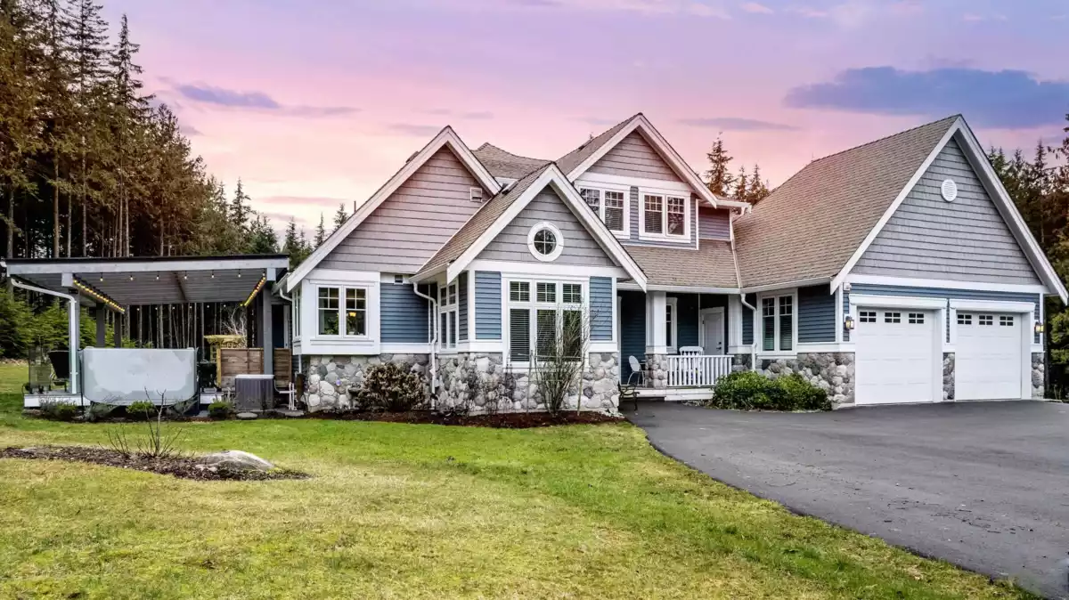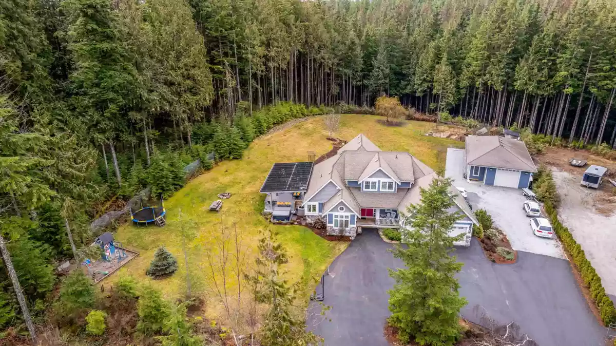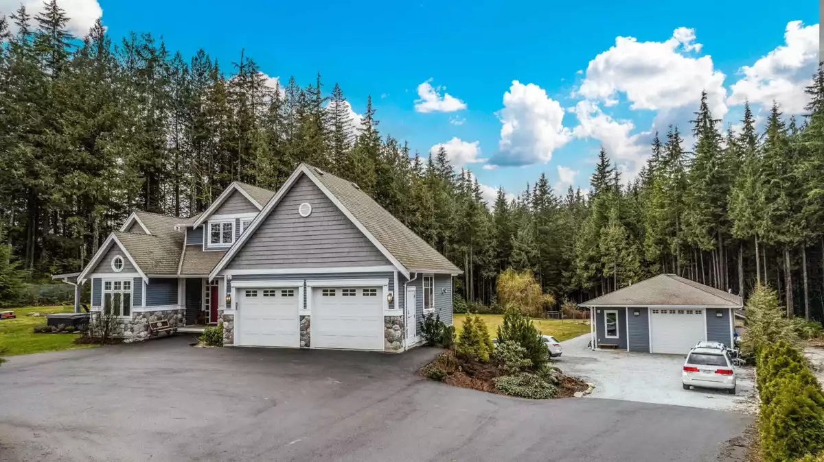 Experience the ultimate in country living with this stunning executive acreage in Stave Falls, Mission, BC. This 5-bed, 6-bath home has room for the extended family. Many new renovations, including the master ensuite, media room with surround sound & wine room. Stay comfortable year-round with a mix of in-floor & forced air heating & air conditioning throughout. The 1600 sq ft shop is a dream. Enjoy ample well water, RV parking & generator hook-up for peace of mind. The beautiful outdoor area with hot tub, frameless glass railings, and a pergola deck covering is perfect for entertaining. The 3.1-acre property comes with a custom-built coop for your egg-laying chickens and ducks. Don't miss this rare opportunity to escape to your own stunning Stave Falls paradise.
