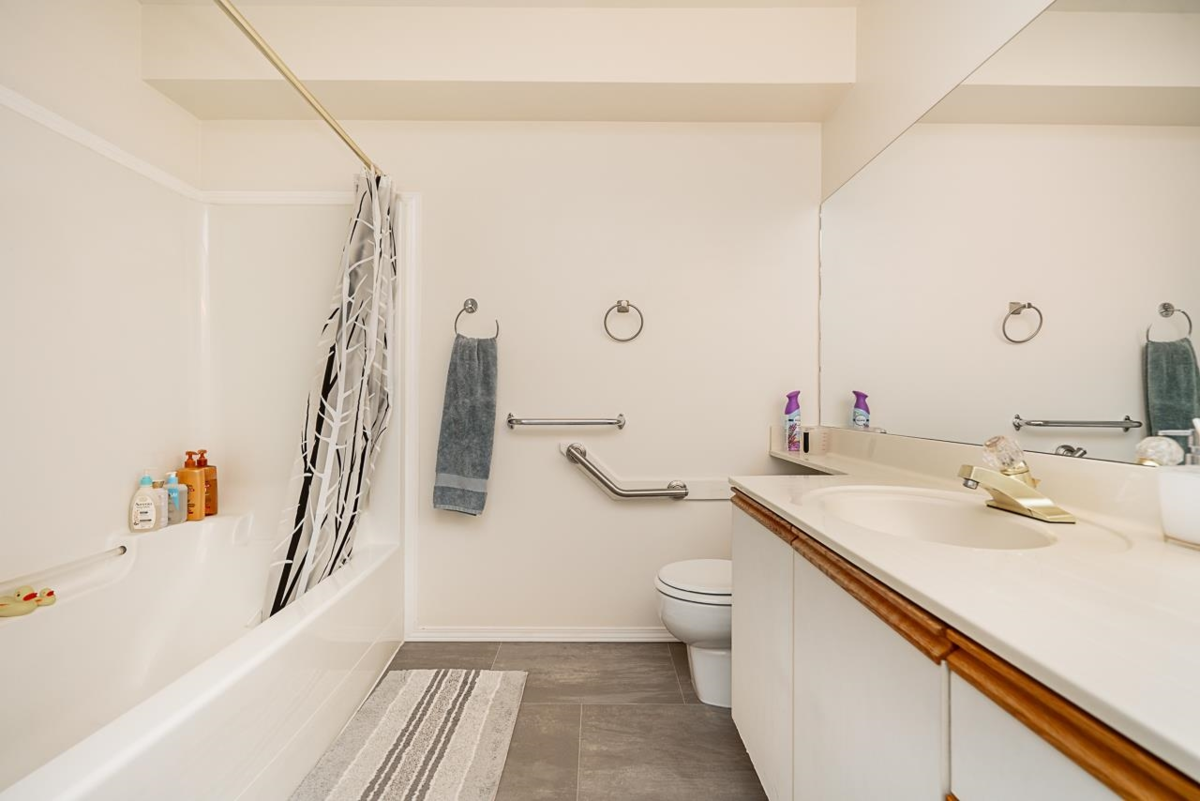 Welcome to the Mansions! VERY SPACIOUS 2-bedroom, 2 bath home on one level. End Unit that was very well cared for. NO STAIRS, wheelchair friendly. The complex is in great shape. Updates include a newer roof, gutters, decks, perimeter fence, etc. Healthy contingency fund and very LOW STRATA FEE. Gated community located close to Guildford Mall, T&T Market, and all the amenities. Unit is across the street from Green Timbers Park, which is great for walking. Great value, great complex, great location