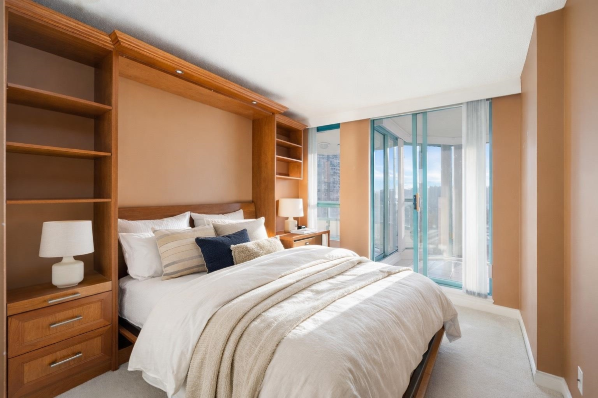 Beautiful 180° views from Mount Baker, the Lions Gate Bridge, Stanley park and the Gulf Islands in this coveted 12th-floor “C” Plan at The WestRoyal. This immaculate 1,334sq ft, 2-bedroom, 2-bath, south-facing home offers granite countertops, a custom Murphy bed with desk in the second bedroom, walk-in closet in the primary, in-suite laundry, and a gas fireplace. Two sun-filled balconies showcase sweeping ocean, city, park, and mountain vistas. Well-managed concrete building with indoor pool and spa, fitness centre, workshop, two parking stalls, and storage locker. Steps to Park Royal, Ambleside Beach, the Seawall, shops, restaurants, and transit. Small dog or cat welcome.