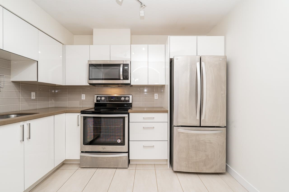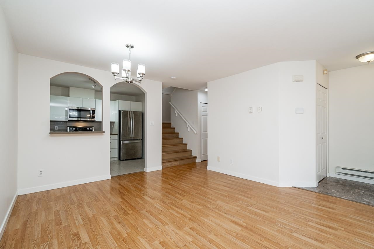 Tucked away in a quiet, well-kept complex! This bright 3 bed, 2.5 bath townhome offers 1,375 sqft across 3 levels—perfect for young families. The top floor is a private primary retreat with walk-in closet, ensuite, and covered balcony. Two bedrooms, full bath, and laundry on the second floor. The main level features a separate kitchen and sunlit living room with gas fireplace, opening to a South-facing fenced private Patio. Quiet, well-maintained complex just 2 blocks from Edmonds Skytrain, and minutes to schools, parks, and shopping. Includes 1 parking and 1 storage locker. A rare opportunity in a family-friendly community!