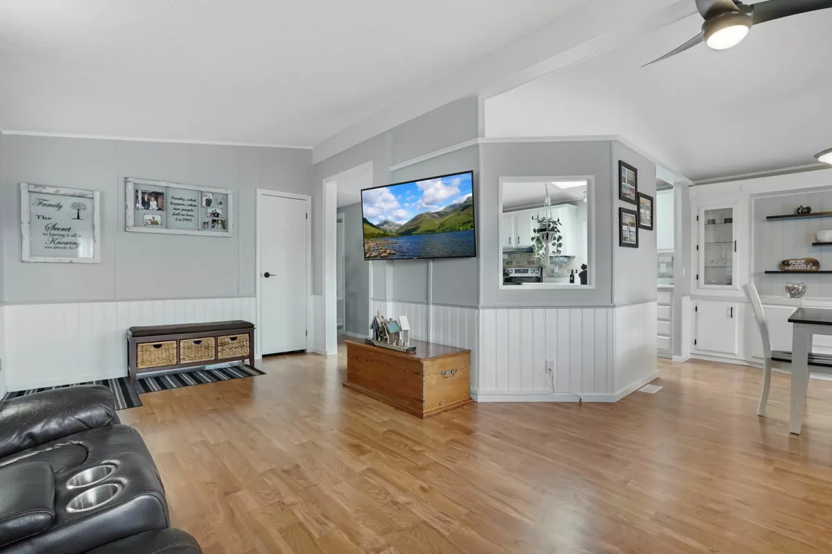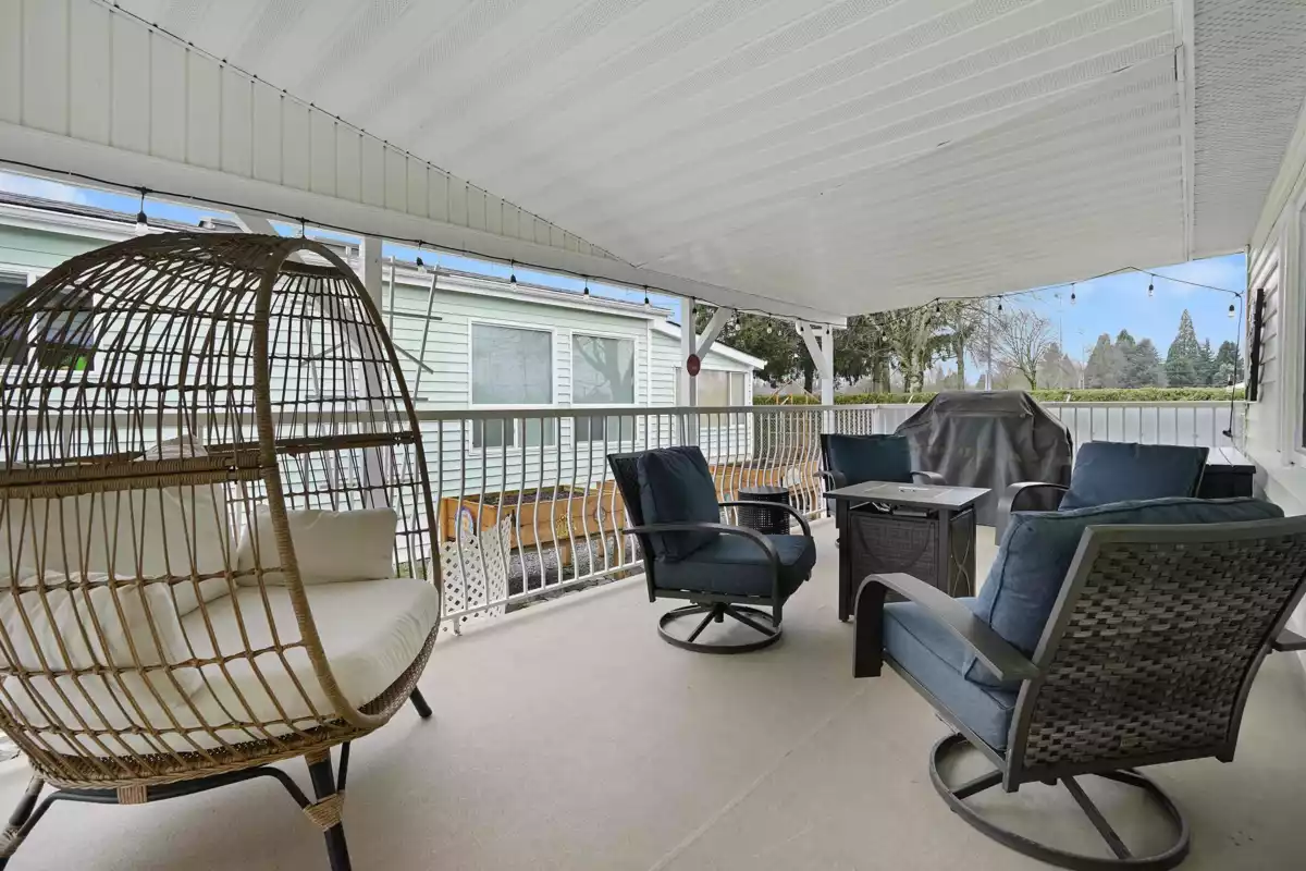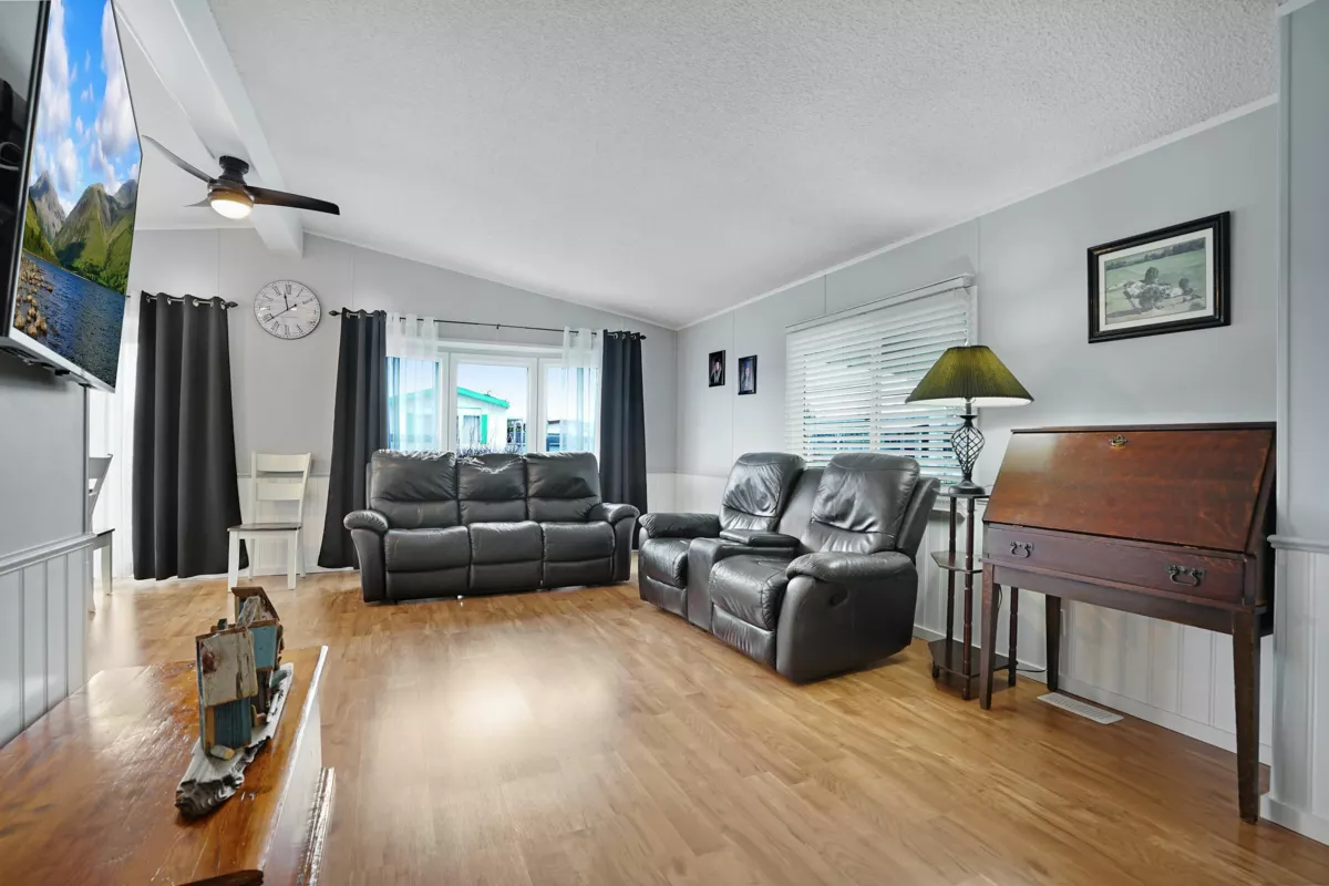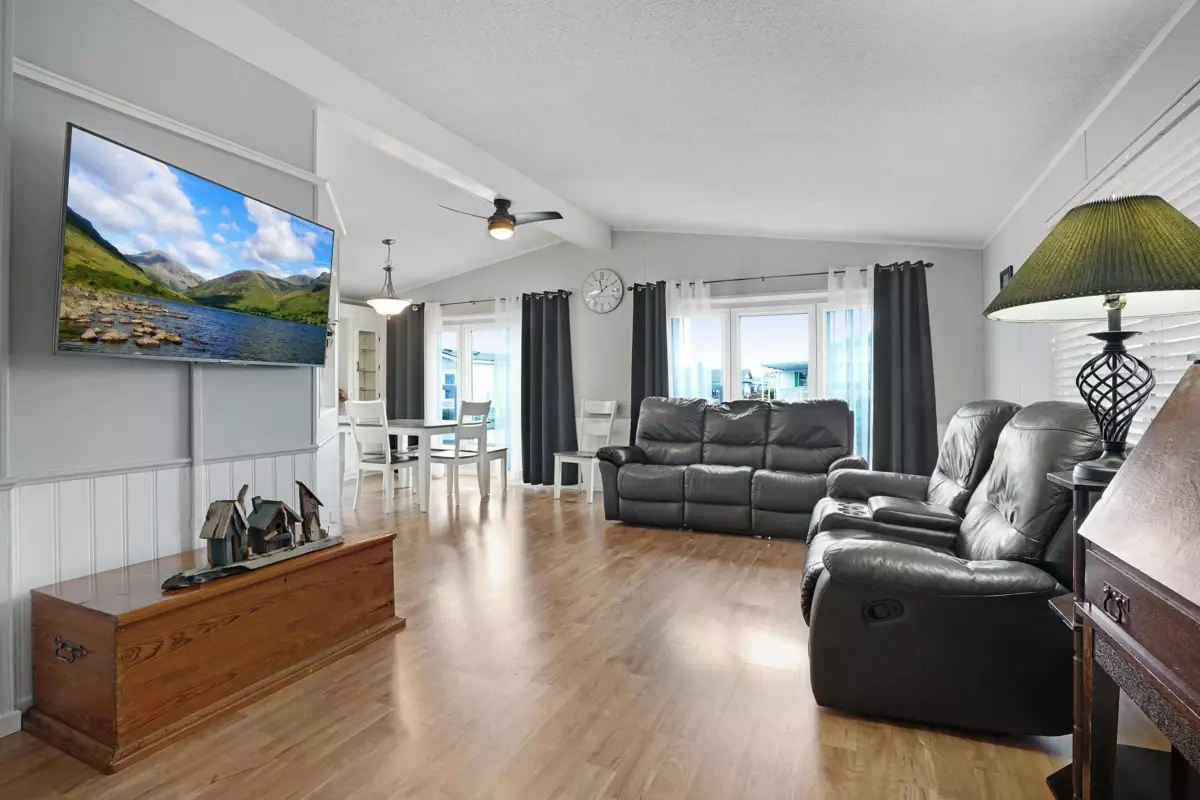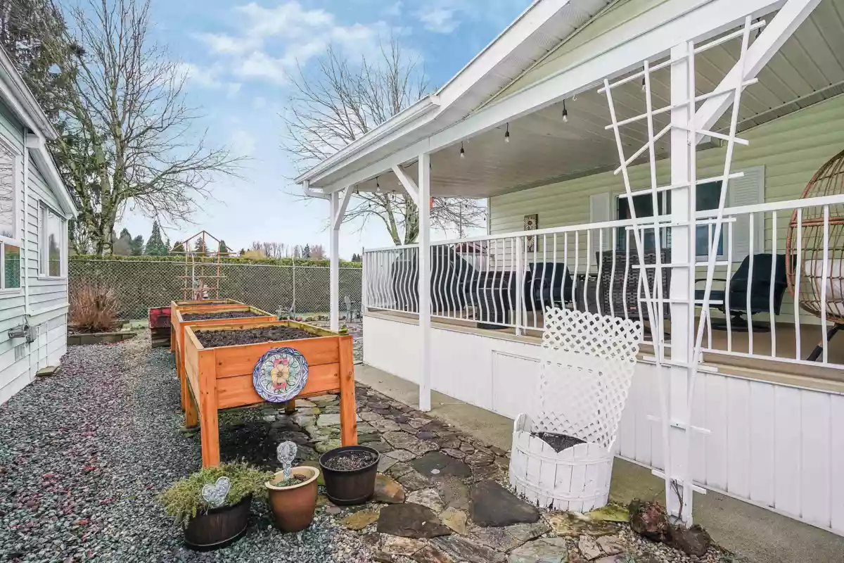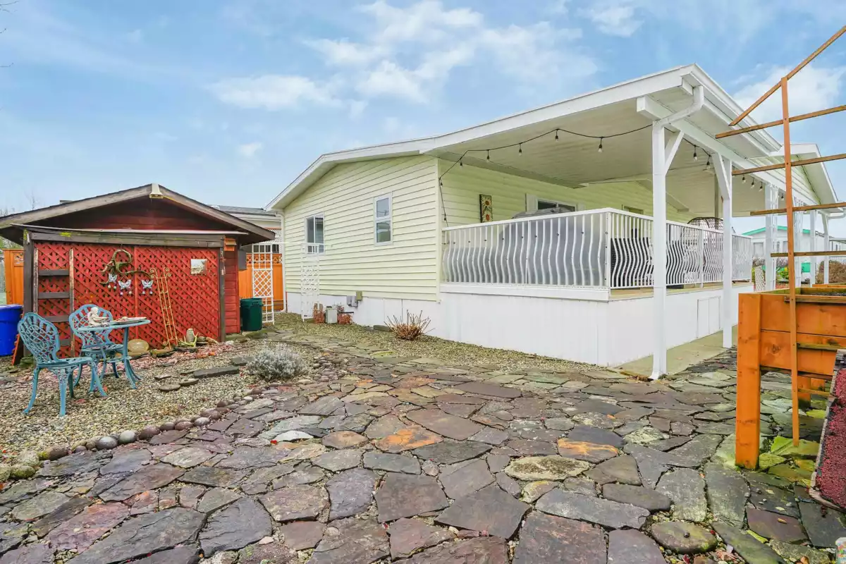 Lots of upgrades in this 2 bedroom 2 bathroom home in Rainbow Estates! New front door as you enter into this open concept large living and dining area with built in cabinets, vaulted ceilings, laminate flooring, and lots of windows to allow the sun in. New windows throughout with new pex water lines. Kitchen has new appliances, skylight, lighting and built in eating area. Bathrooms updated, tankless hot water tank and new furnace. New switches, plugs, lighting, and paint. Roof is approx.7 yrs old, central air-conditioning. Large covered deck for entertaining and a new backdoor which leads to a separate workshop with power. Backing Townsend Park and just a short distance to Eagles Landing for shopping, movies, pet store, gas stations, transit, restaurants, and the hospital. Move in ready!!