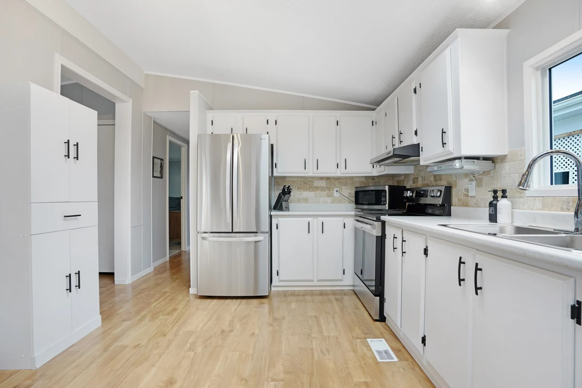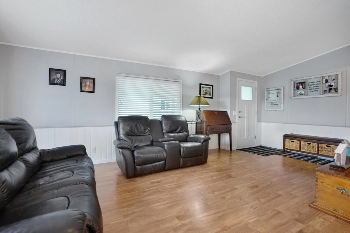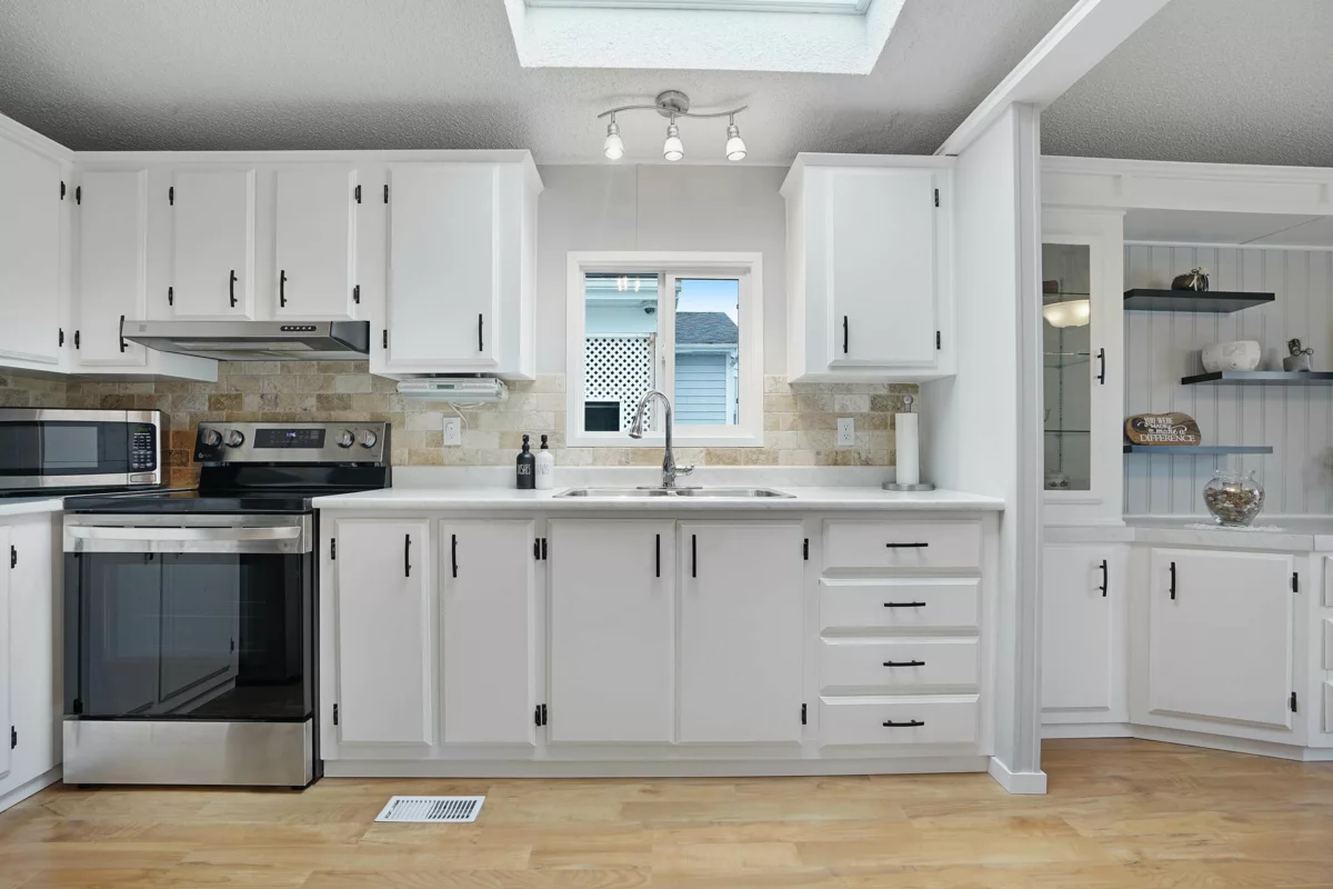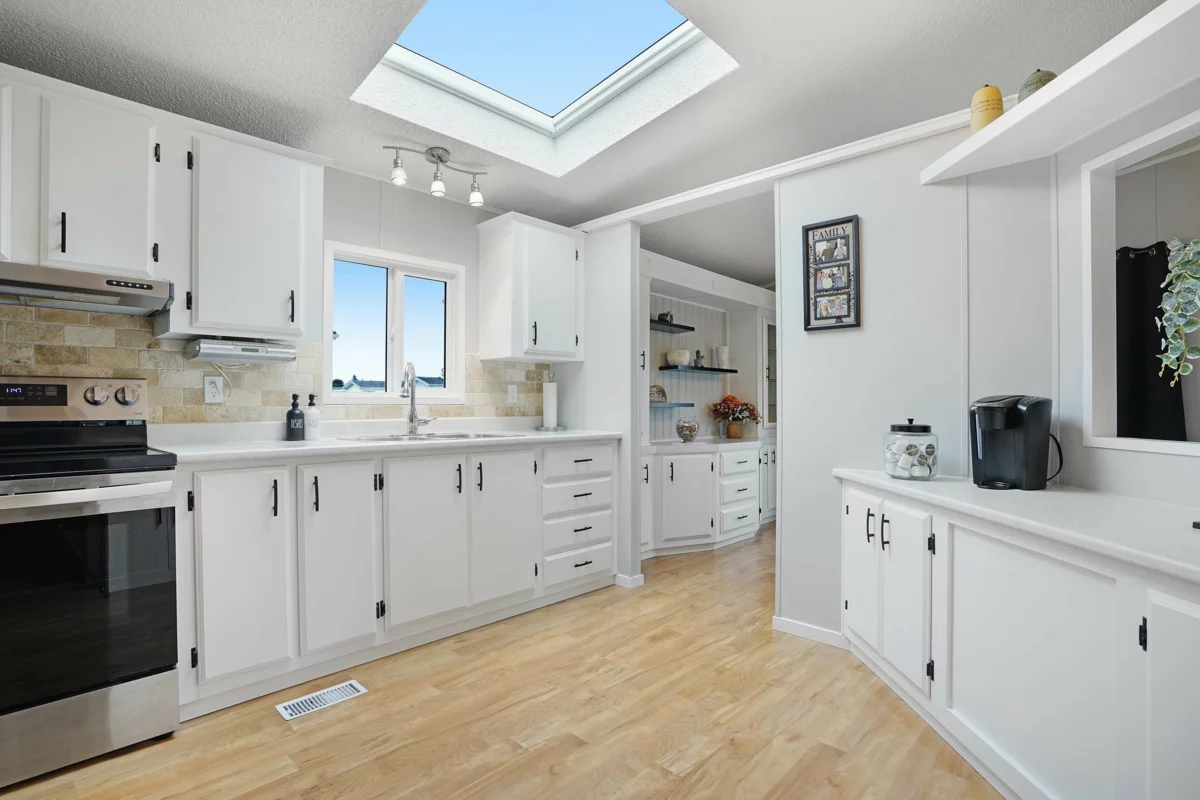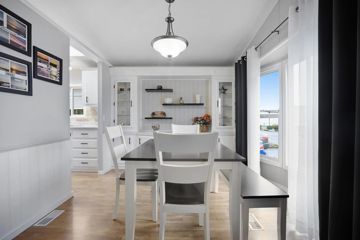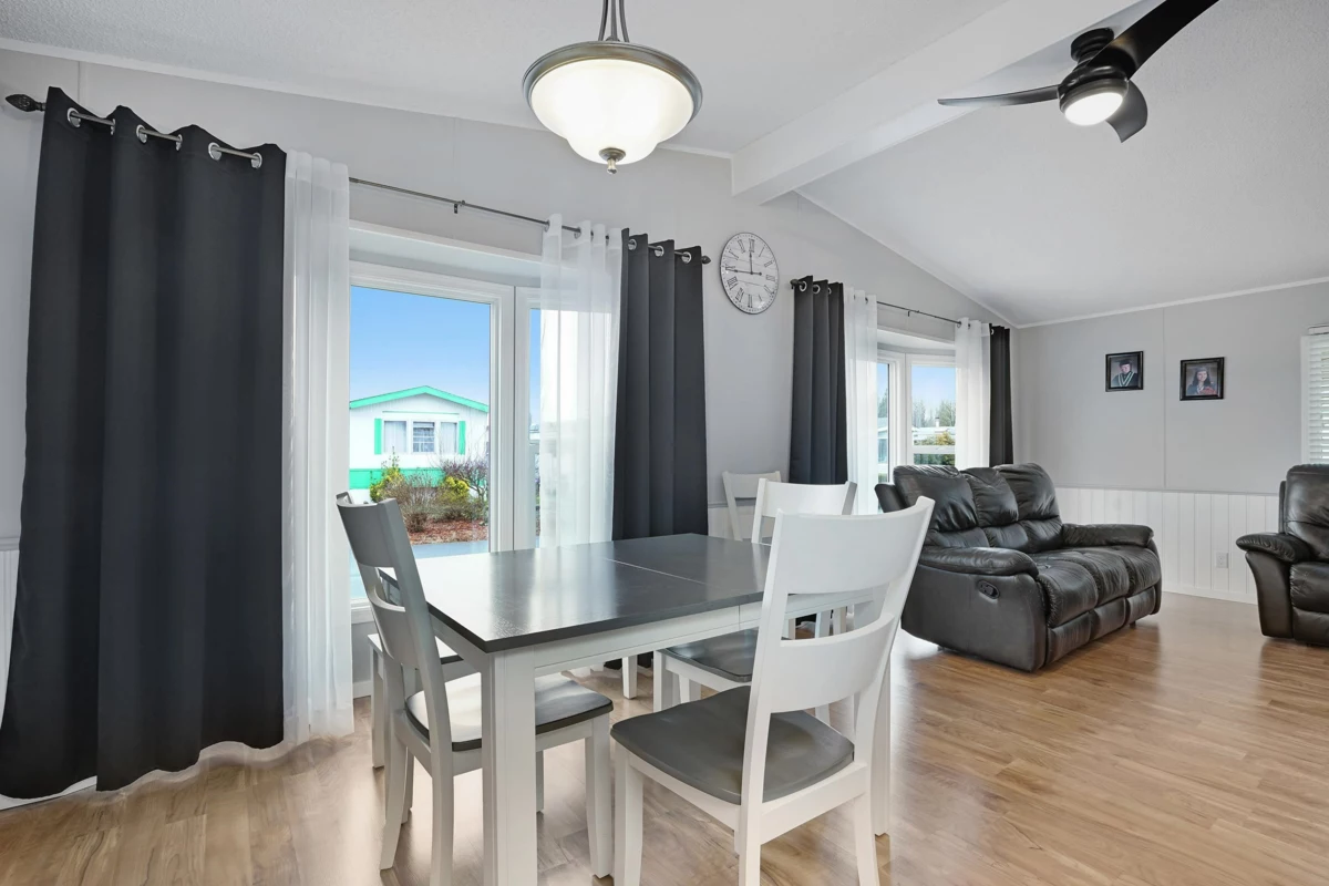 Lots of upgrades in this 2 bedroom 2 bathroom home in Rainbow Estates! New front door as you enter into this open concept large living and dining area with built in cabinets, vaulted ceilings, laminate flooring, and lots of windows to allow the sun in. New windows throughout with new pex water lines. Kitchen has new appliances, skylight, lighting and built in eating area. Bathrooms updated, tankless hot water tank and new furnace. New switches, plugs, lighting, and paint. Roof is approx.7 yrs old, central air-conditioning. Large covered deck for entertaining and a new backdoor which leads to a separate workshop with power. Backing Townsend Park and just a short distance to Eagles Landing for shopping, movies, pet store, gas stations, transit, restaurants, and the hospital. Move in ready!!