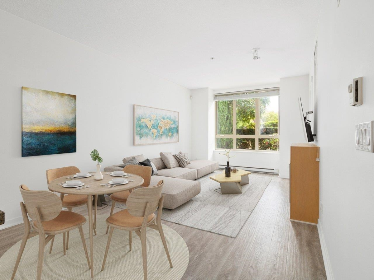 Welcome to The Morgan, in the heart of Grandview Corners, South Surrey. This GROUND FLOOR 1-BEDROOM + DEN condo offers spacious living. Enjoy the open layout with 9-ft ceilings, and ample natural light. The kitchen boasts granite counters and stainless-steel appliances, including a gas range. Step onto your PRIVATE south-facing patio overlooking a peaceful courtyard, away from street noise. The Morgan features a clubhouse with an outdoor pool, fitness center, theater, and lounge. Walk to shops, groceries, restaurants, schools, and Morgan Creek Golf Course. PETS and RENTALS are welcome, and you'll have 1 PARKING spot and a LOCKER. Experience comfort and convenience at The Morgan.