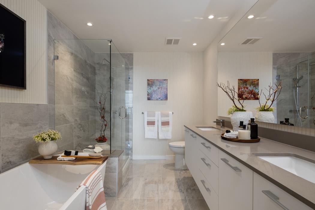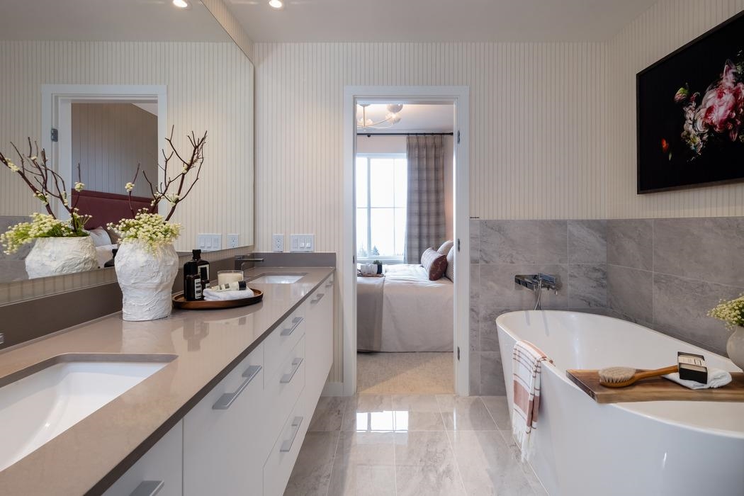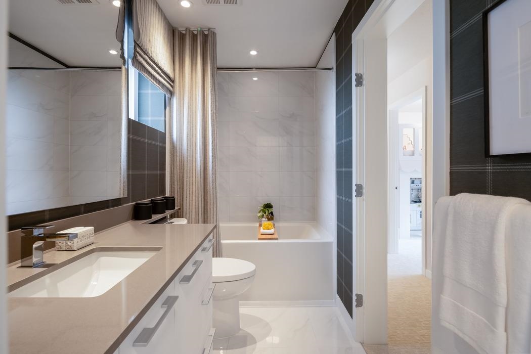 This bright 2,357 sq. ft. 4 bed 3.5 bath townhome at Polygon's Ridgewood boasts an open layout with overheight ceilings, laminate wood flooring, and a spacious deck. The gourmet kitchen features custom cabinetry with extra wall pantry storage, sleek appliances, engineered stone countertops, and a central island. The main ensuite features a luxurious soaker tub as well as a spa shower with bench. Plus, enjoy a separate laundry room with built-in shelving upstairs, main floor powder room, the convenience of a family room downstairs, a double car garage off the main entrance, and a heat pump air conditioning system. Visit our sales office and display homes at 3637 Sheffield Avenue, Coquitlam, open noon - 6pm daily (except Friday), to learn more.