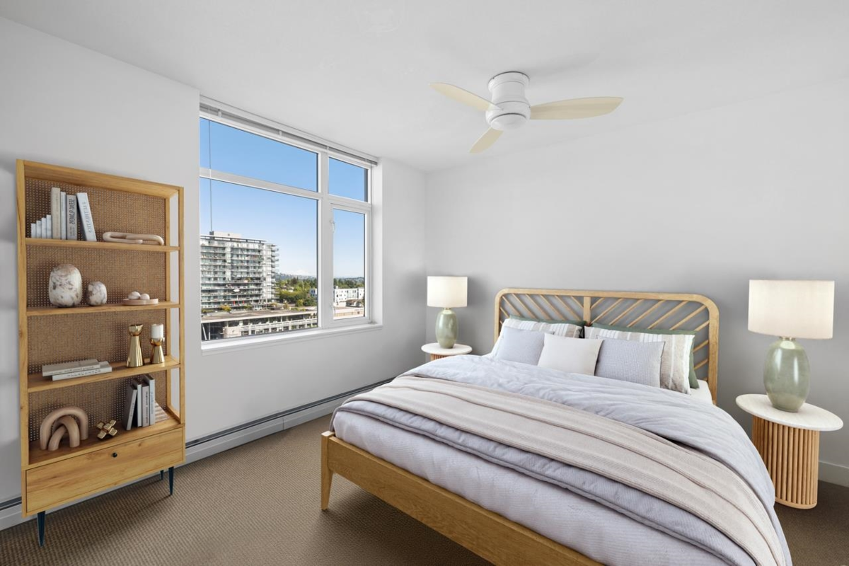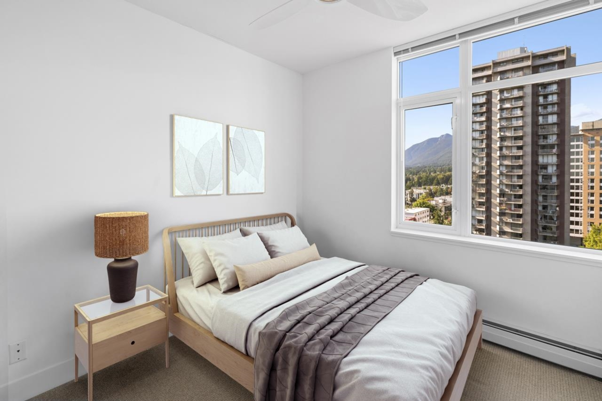 Bright + freshly painted 2-bedroom, 2-bath CORNER with 2 PARKING + large STORAGE locker, at sought after Vista Place. Great layout, private exposure, stunning mountain + city views. Featuring newer hard surface flooring, quartz counters, stainless appliances, cozy fireplace + in-suite laundry. Large windows fill the space with natural light throughout the day. Enjoy your morning coffee or yoga a sun-drenched, oversized balcony. Pet and rental friendly. Proactive strata, onsite building manager, ~1.6m in CRF. This LEED Silver certified building offers top-tier amenities including fitness centre, guest suite, party room + bike storage. Best location in the heart of Central Lonsdale, just steps to WholeFoods, amazing restaurants, shops, parks, transit + top schools.