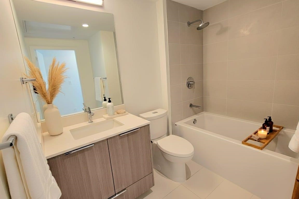 COURT ORDERED SALE This beautifully designed 2-bedroom, 2-bathroom home offers 802 sq ft of modern living plus a spacious 120 sq ft balcony with unobstructed city views. Thoughtfully equipped with air conditioning, this home ensures comfort year-round. Ideally located just steps from Bridgman Park, the brand-new Lynn Creek Community Centre, and Phibbs Exchange, you’ll enjoy unmatched convenience, nature, and connectivity. The building features a full suite of amenities, including a state-of-the-art fitness centre, wellness centre, steam & sauna rooms, private courtyards, and a social lounge—everything you need for an elevated lifestyle. Perfect for first-time buyers, downsizers, or investors alike. Includes one parking stall and storage locker.