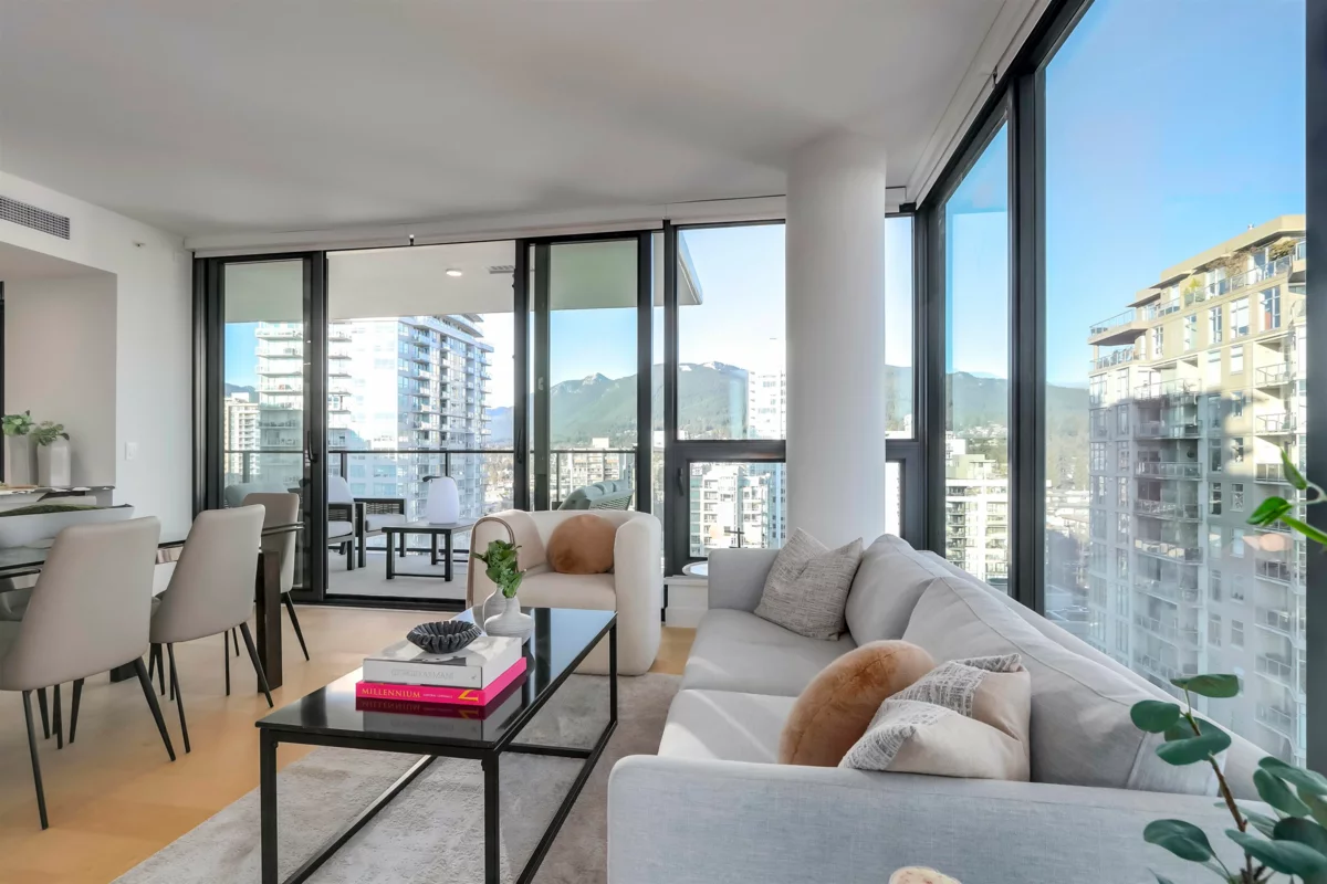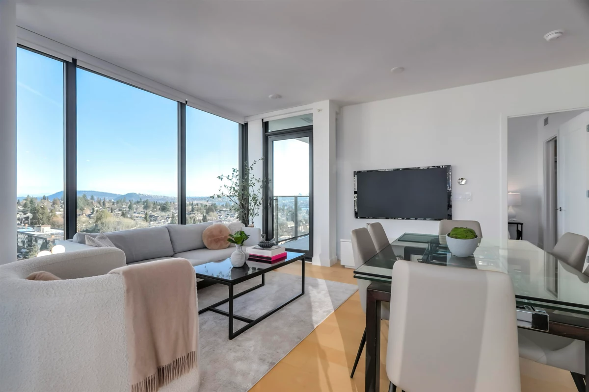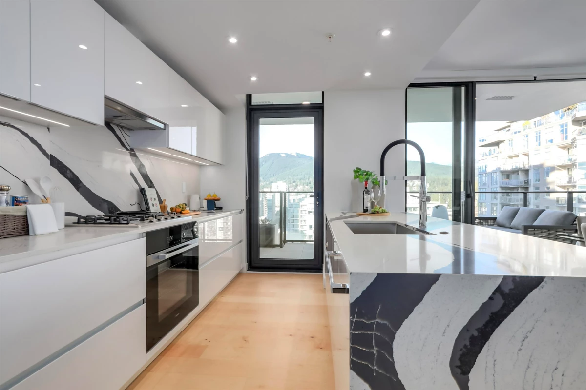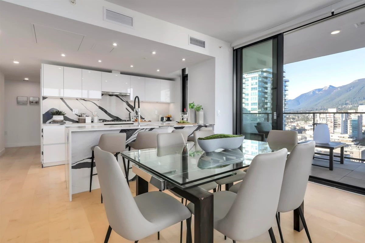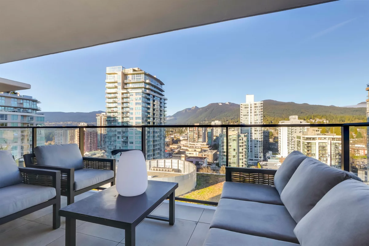 GST ALREADY PAID! Welcome to Millennium Central Lonsdale, North Vancouver’s premier luxury residence offering resort-style amenities including an outdoor pool, fully equipped gym, guest suites, lounge and more. This bright 990 sq.ft. corner unit features 2 bedrooms, 2 bathrooms, and 220 sq.ft. of balconies with breathtaking 270° mountain and water views. The home showcases high-end upgrades such as automated roller blinds, premium in-cabinet lighting, air conditioning, and spa-inspired bathrooms, along with a gourmet kitchen featuring Miele appliances, marble-inspired quartz countertops, and elegant European cabinetry.EV Charging Station parking is included, and the prime location places shopping and dining just steps away.delivering an exceptional blend of luxury, comfort, and lifestyle.