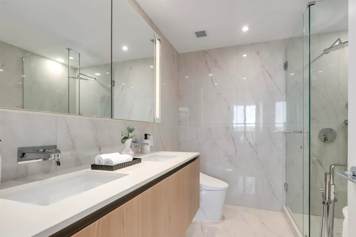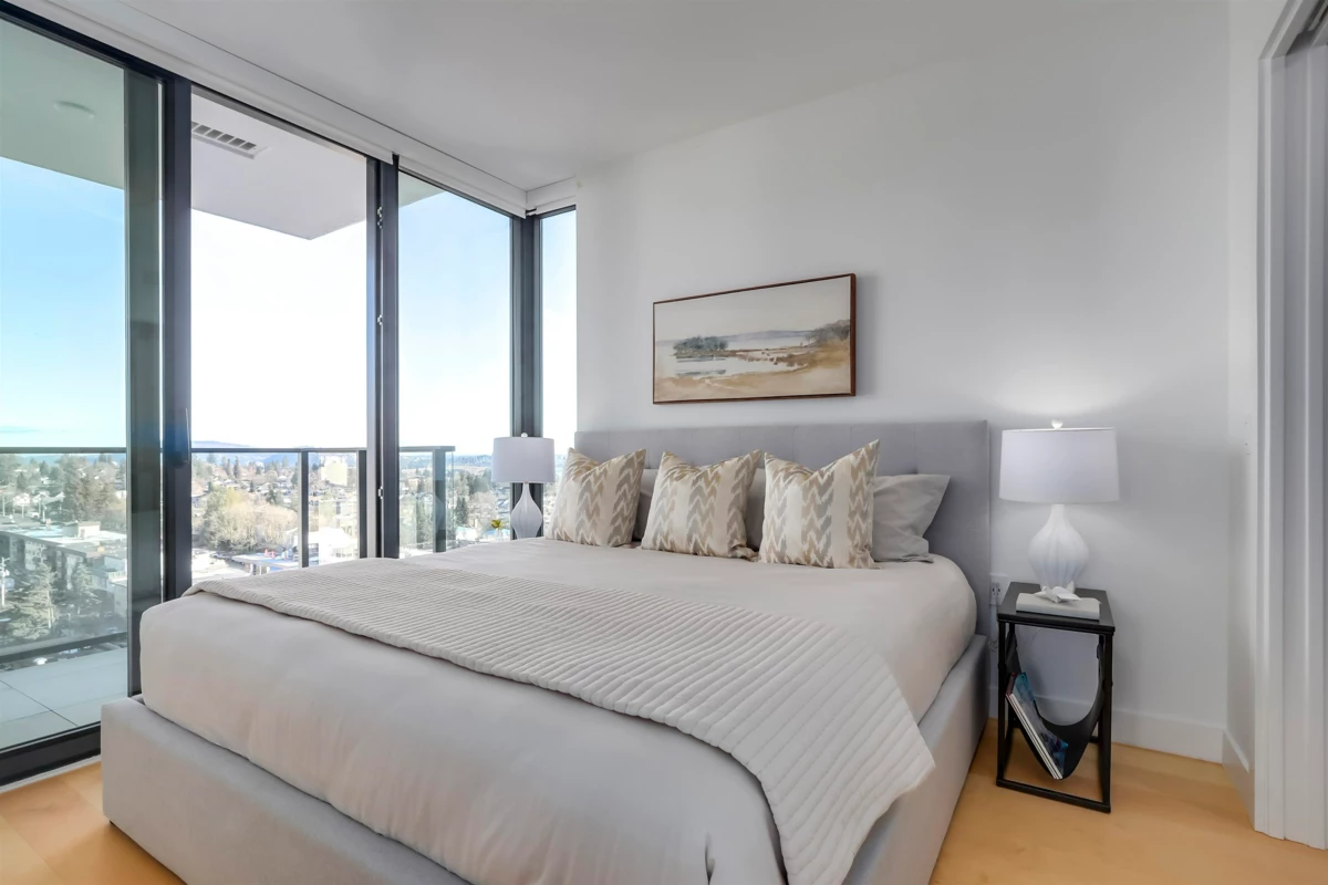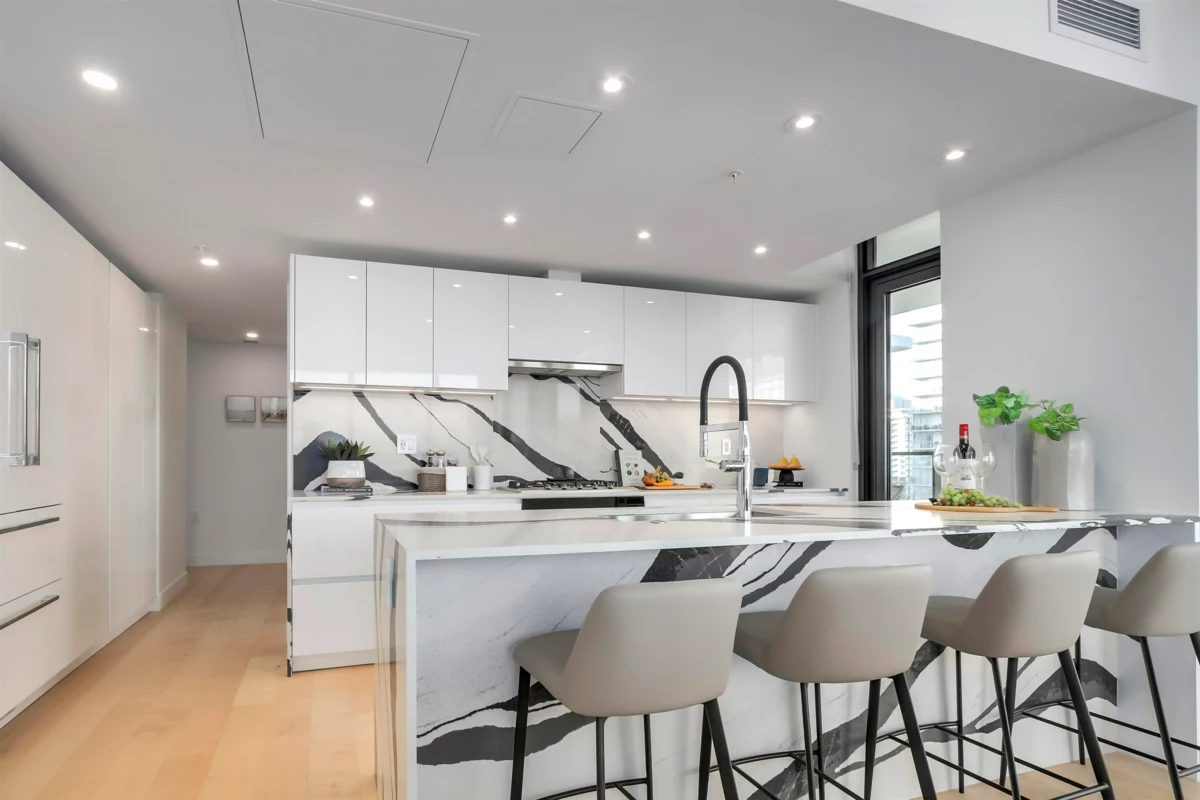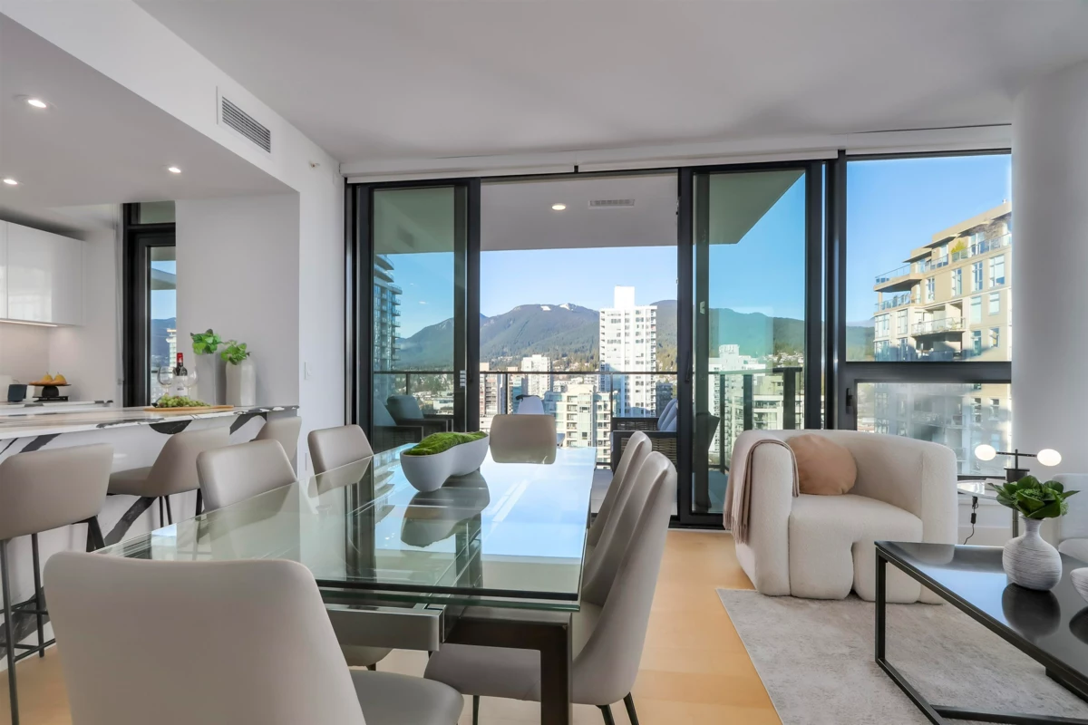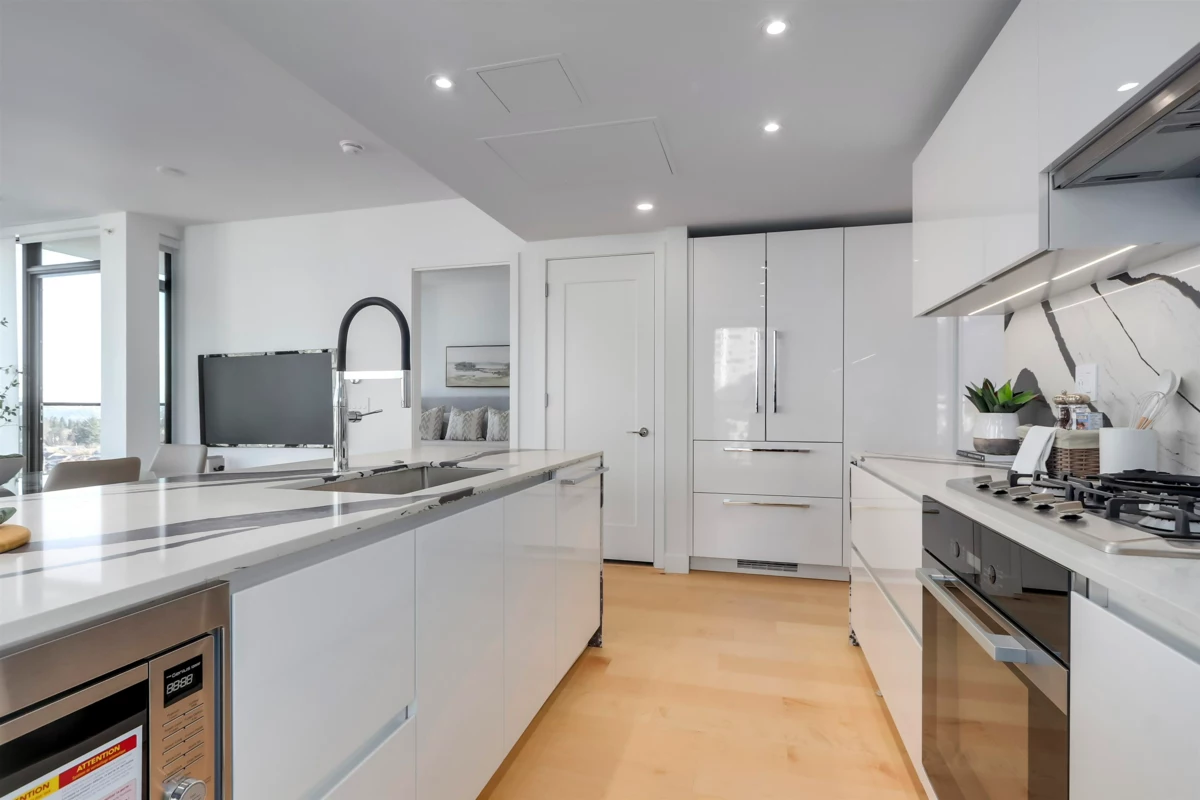 GST ALREADY PAID! Welcome to Millennium Central Lonsdale, North Vancouver’s premier luxury residence offering resort-style amenities including an outdoor pool, fully equipped gym, guest suites, lounge and more. This bright 990 sq.ft. corner unit features 2 bedrooms, 2 bathrooms, and 220 sq.ft. of balconies with breathtaking 270° mountain and water views. The home showcases high-end upgrades such as automated roller blinds, premium in-cabinet lighting, air conditioning, and spa-inspired bathrooms, along with a gourmet kitchen featuring Miele appliances, marble-inspired quartz countertops, and elegant European cabinetry.EV Charging Station parking is included, and the prime location places shopping and dining just steps away.delivering an exceptional blend of luxury, comfort, and lifestyle.