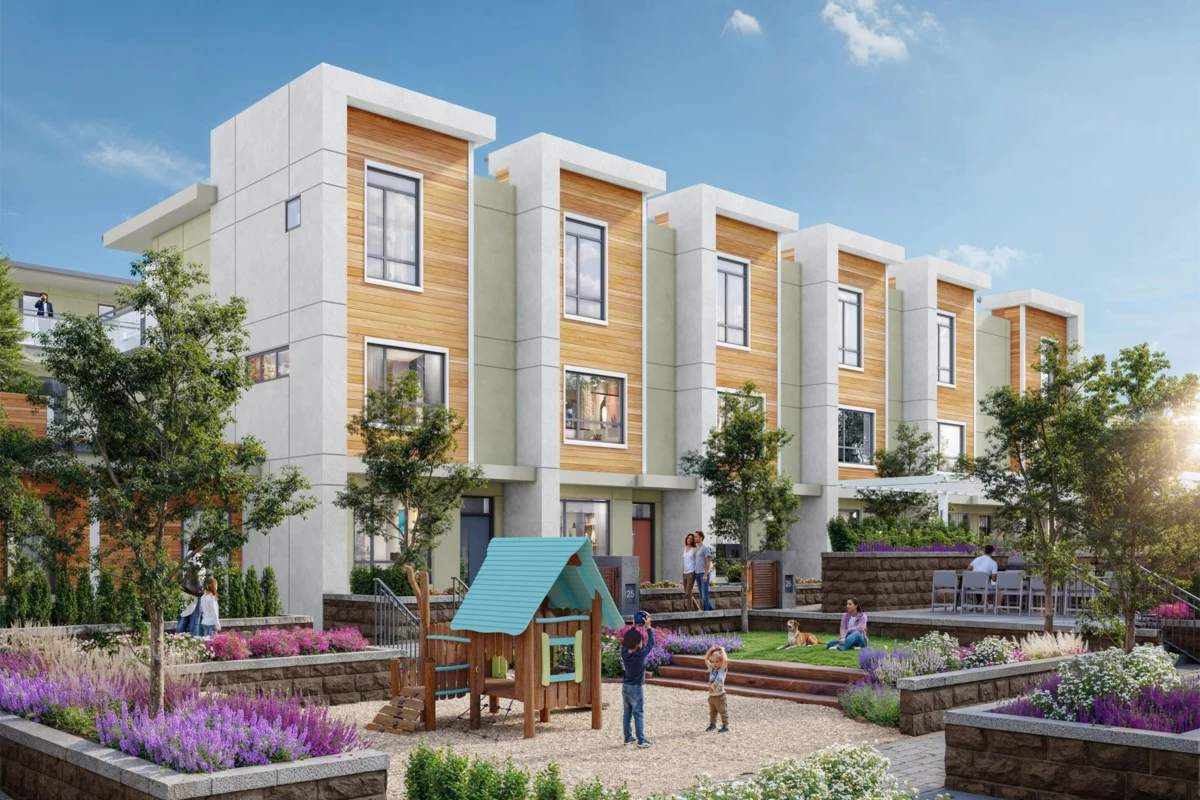 Welcome to THE GROVE, a collection of 49 contemporary townhomes coming to the ever-expanding Burquitlam neighbourhood. Inspired by the tradition of single-family living, homes are custom designed to feature open-concept interiors that look out onto lush outdoor courtyards. This Garden A plan offers 2 bedrooms with a convenient den. Enjoy the convenience of a secured underground parking and urban amenities at your fingertips. Ready Summer 2026, The Grove is the perfect place to call home. Our Presentation Centre is open by Appointment at Unit 200 - 3355 North Road, Burnaby.