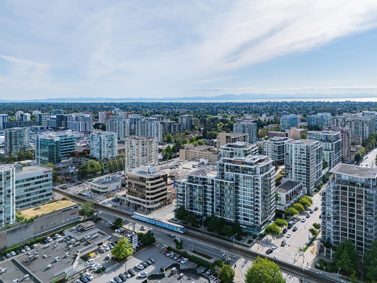Concrete high-rise in central Richmond offering 955 sq ft, 2 bedrooms, 2 bathrooms, and stunning south-east city and mountain views. This bright corner unit features brand new hardwood flooring,air-conditioning, and an open layout perfect for comfortable living. Enjoy top-tier amenities: indoor pool, gym, sauna, yoga room, garden with water features, and a grand high-ceiling lobby. Located stepsfrom shopping, restaurants, bus, and SkyTrain. Includes 1 covered parking stall. A stylish, move-in-ready home in a prime location!