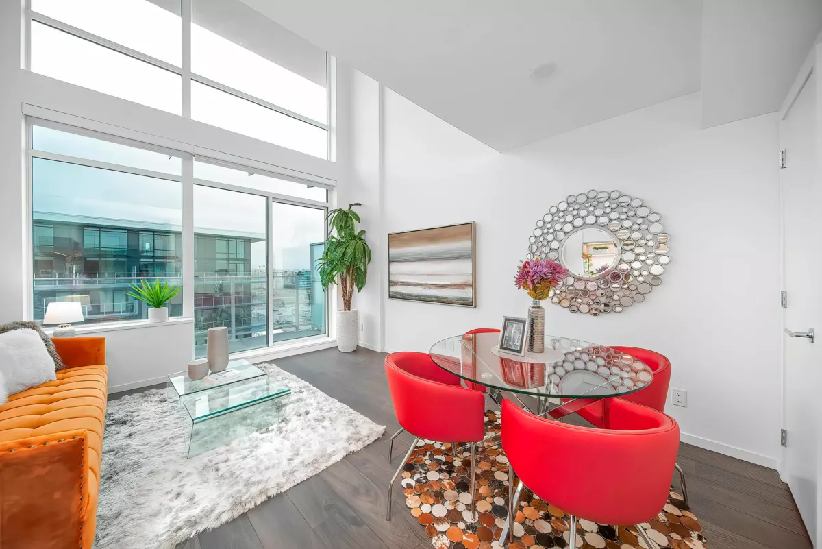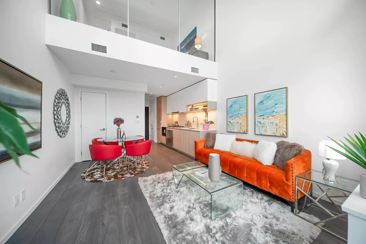 Unique Penthouse Collection home at Richmond Centre; brought to you by Cadillac Fairview & SHAPE. This one-bed + storage, 2-level home features soaring 18-ft ceilings, an expansive private terrace, and stunning views. The luxury kitchen boasts Italian cabinetry, Gaggenau appliances. Enjoy motorized blinds, Nu heat flooring in the bathroom, EV parking stall. Access 73,000 SF of private amenities, including Sky Gardens, entertainment lounges, fitness facility, co-working spaces, and guest suites. Steps to SkyTrain, Minoru Aquatic Centre, and CF Richmond Centre for world-class dining, and shopping. Huge Terrace over 300SF; Open house Sat & /Sun Jan 31 & Feb 1 from 1:30 to 4:30PM; Feb 7 from 1:30 to 4:00; Feb 15 from 2:00 to 4:00;