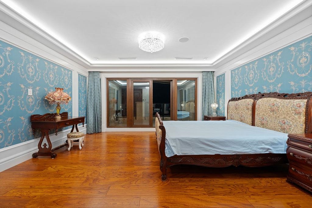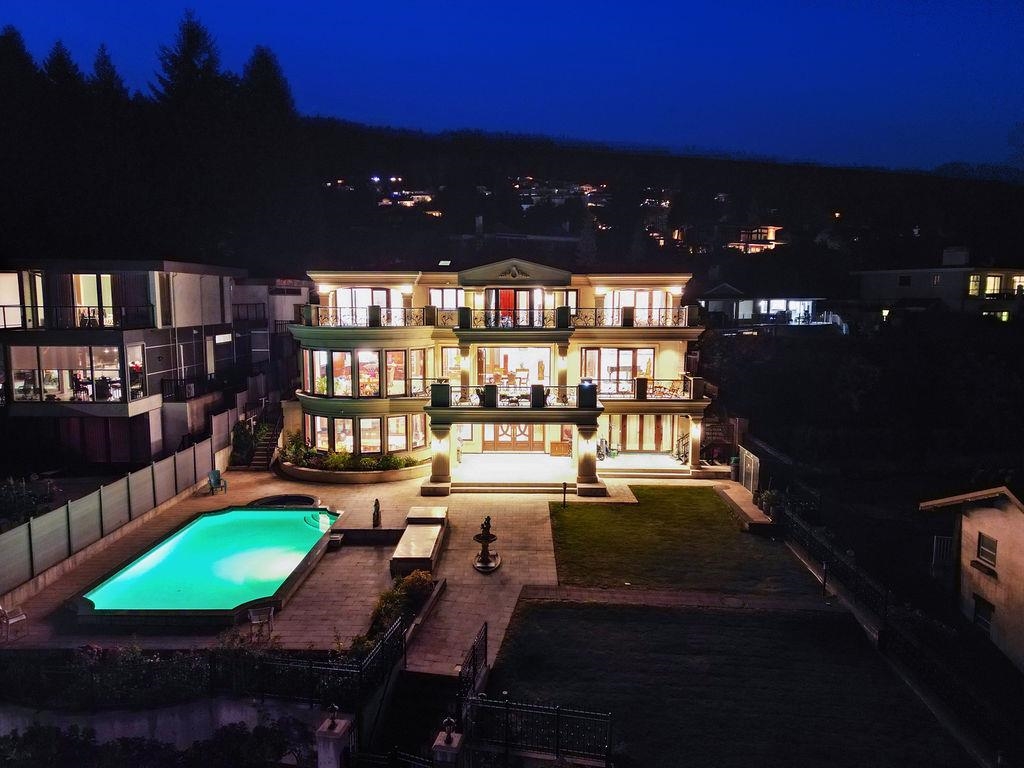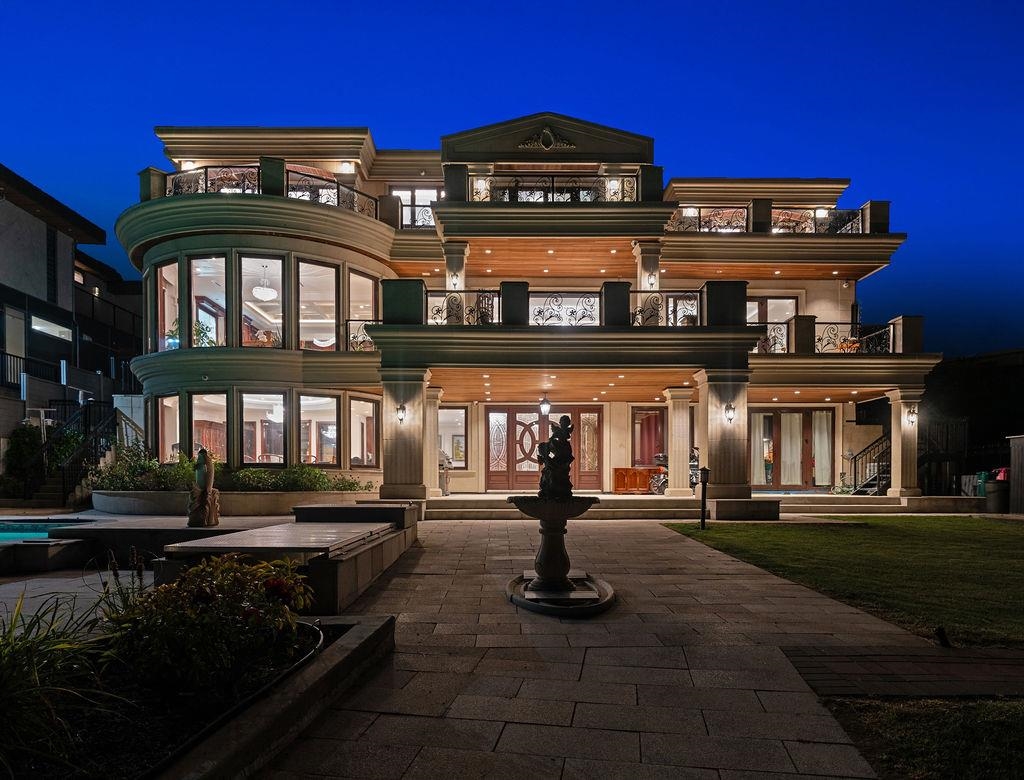 This extraordinary 7,654 sq.ft. Chartwell residence, set on a 15,562 sq.ft. lot, offers 6-bedroom, 7-bath, with spectacular 270° views of the ocean, Lions Gate Bridge, and city skyline. Distinguished by rare dual entrances from both north and south Chartwell Street, The exterior is clad entirely in unique Karamaili gold marble, while interiors are marble floors, hand-carved from Indonesian mahogany by master artisans. Italian ruby marble countertops highlight the kitchen and bar, complemented by a natural marble mural and an exquisite jade-carved fireplace from Afghanistan. Japanese embroid silk wall paper. Wine bar and home theatre outdoor pool and inlaw suite. Steps from Chartwell Elementary/Sentinel Secondary, the location is unmatched.