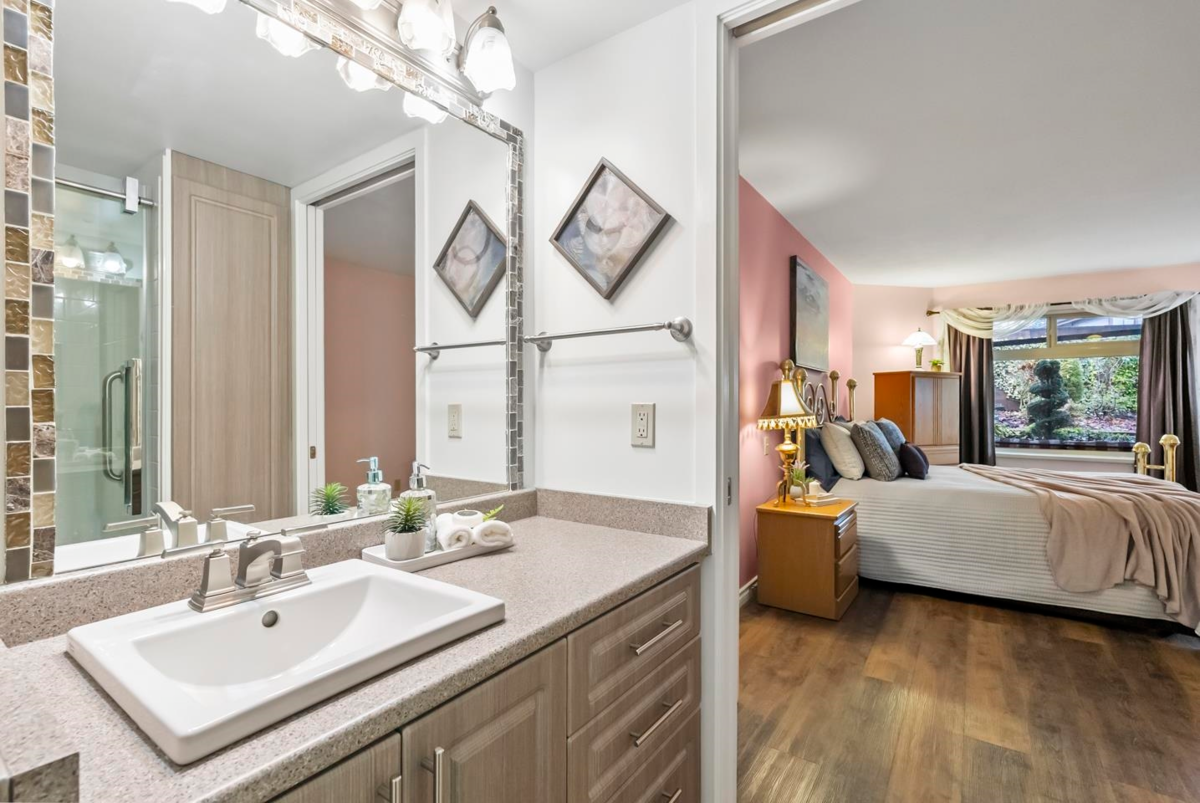 Tucked into a quiet pocket of Guildford, this spacious 1,633 sq.ft. ground level townhome is one of the largest units in the complex, boasting one of its biggest backyards. The inviting 2-bed, 2-bath layout blends house-like comfort with convenience, offering generous living areas and warm natural light. Enjoy privacy and green surroundings steps from Bonaccord Park and quick dining options, with Guildford Town Centre just minutes away. Families appreciate top nearby schools like Bonaccord Elementary and Johnston Heights Secondary. Commuters enjoy bus access under a 3-minute walk away connecting to major Surrey routes. Experience a lifestyle of space, calm, and everyday ease in a central, walkable community.