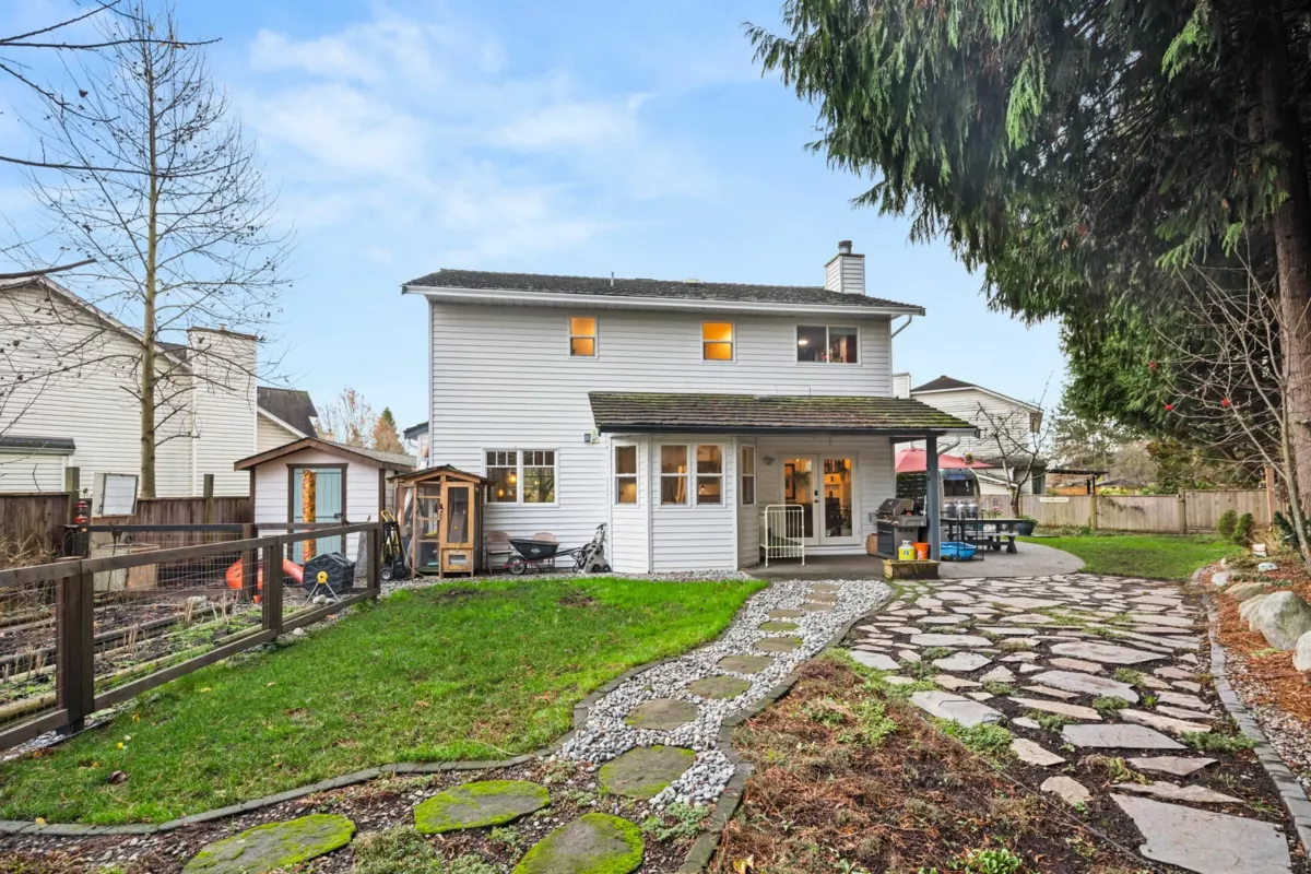 Immaculate South Meridian family home tucked away on a quiet cul-de-sac, close to schools, parks, transit and just minutes to Hwy 99. Set on a private 8,510 sq. ft. parklike lot with RV parking, perennial gardens, fruit trees and thriving veggie beds, this truly feels like a “cottage in the city.” Thoughtfully designed with no wasted space, the home is full of character, featuring fir shiplap ceilings, craftsman trim, recycled fir kitchen island, gas cooktop, built-in oven and a bright family room off the kitchen. Three bedrooms up including a generous primary with ensuite. Enjoy a cedar front porch, detached workout studio, large storage shed, outdoor gas hookup, hot/cold taps, 50-year Penfolds cedar roof and updated vinyl windows. A warm, welcoming home that shows beautifully.