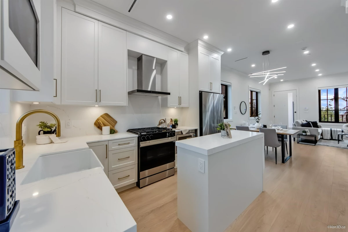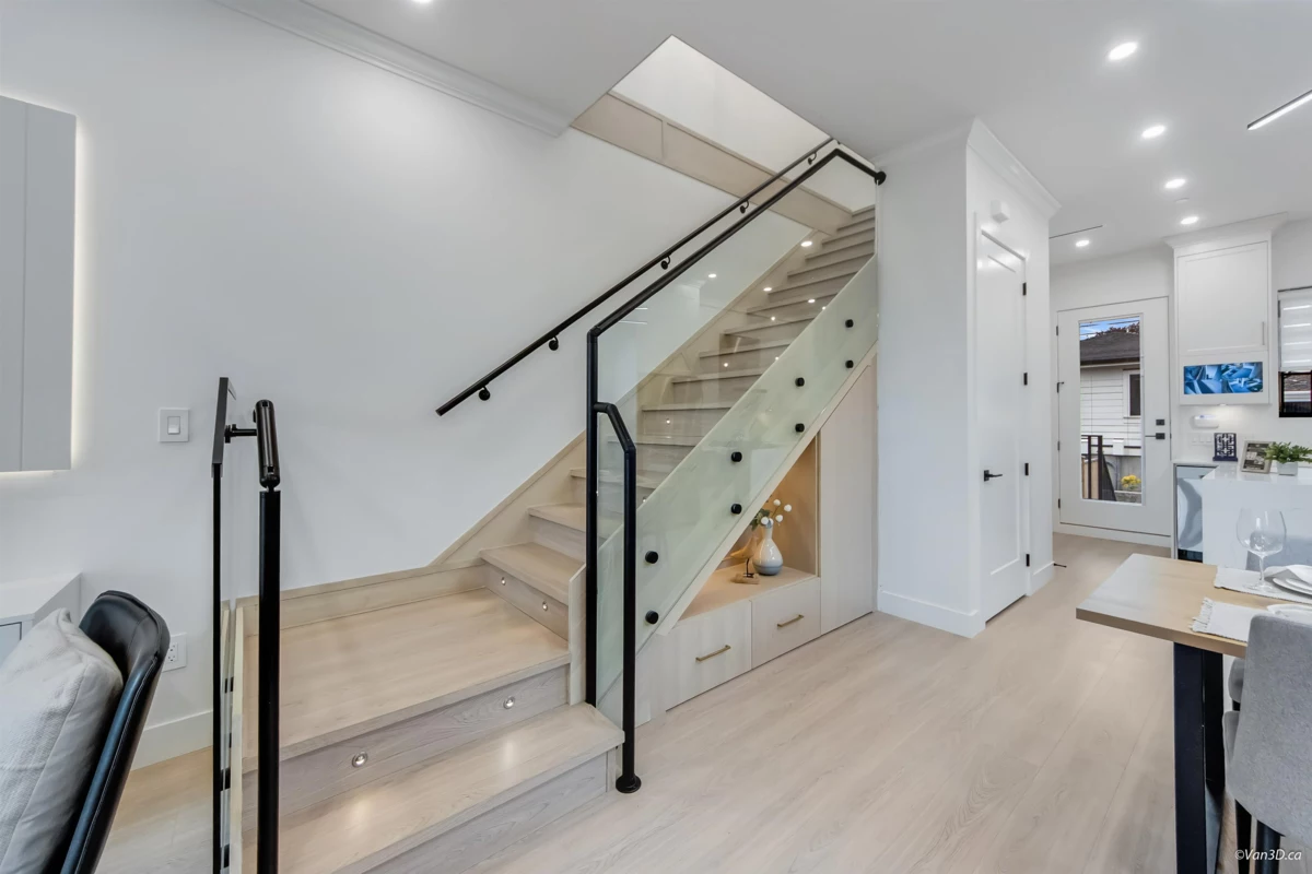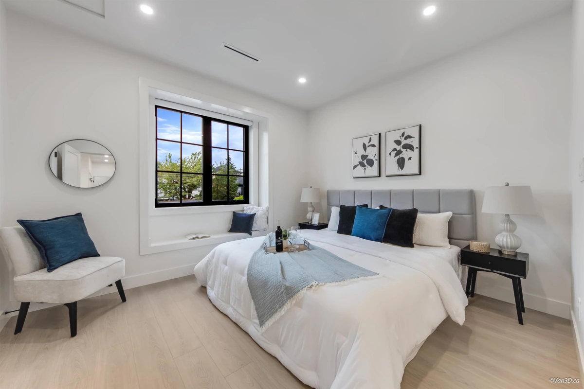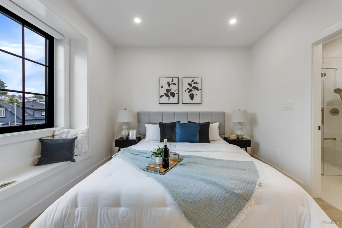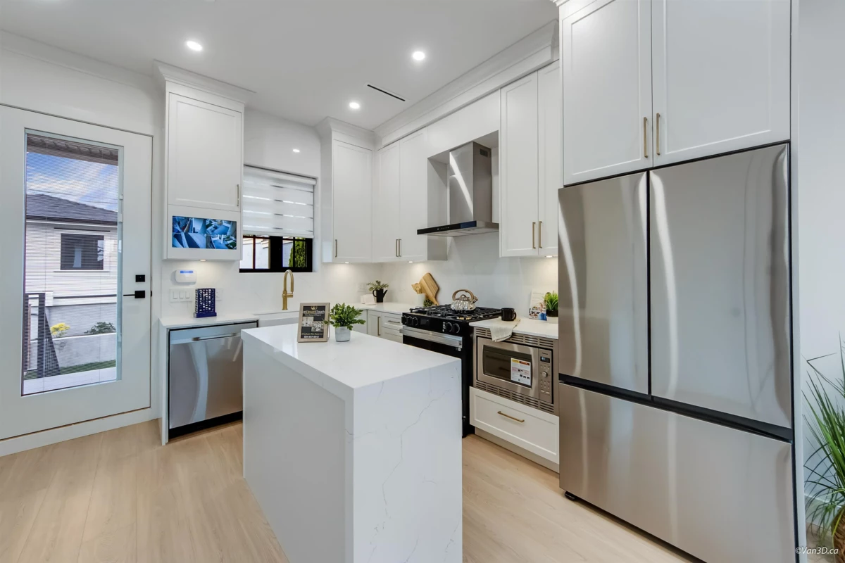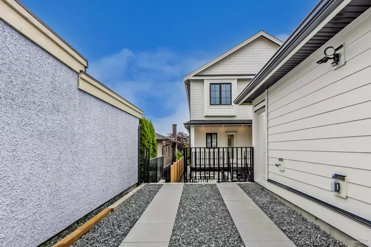 Discover modern luxury in this brand-new side-by-side duplex, tucked away on a quiet cul-de-sac in the heart of South Vancouver. Thoughtfully built with quality craftsmanship, this home offers 5 bedrooms, including a private 2-bedroom suite, ideal for a mortgage helper or extended family. Enjoy year round comfort with radiant in-floor heating, air conditioning, and premium finishes throughout. The open concept living space features a gourmet kitchen with custom cabinetry and high-end appliances. Upstairs boasts bright, spacious bedrooms with ample storage. A private backyard provides the perfect space for entertaining, relaxing, or family enjoyment.