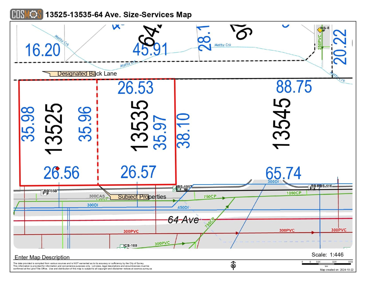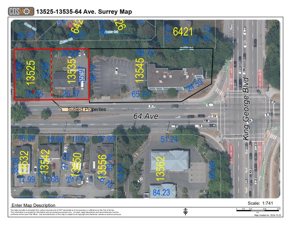 The property offers strong rental income and a well-maintained 8-bed, 5-bath home with granite countertops. Excellent opportunity to build your dream duplex on this 87+ ft. wide ¼-acre lot or develop multifamily under the approved Newton–King George Boulevard Plan. Ideally located just one lot west of King George Blvd & 64 Ave, with the adjacent ¼-acre parcel (13525 64 Ave, SEE MLS #R3072403) also available—creating nearly ½ acre with 174+ ft. of frontage for an ideal land assembly. Trans-Link’s 2025 plan adds 12 new stations along King George Blvd., including one at 64 Ave. Bus Stop out front with quick access to King George Blvd., Sky-Train, and Surrey City Centre. OFFERS!