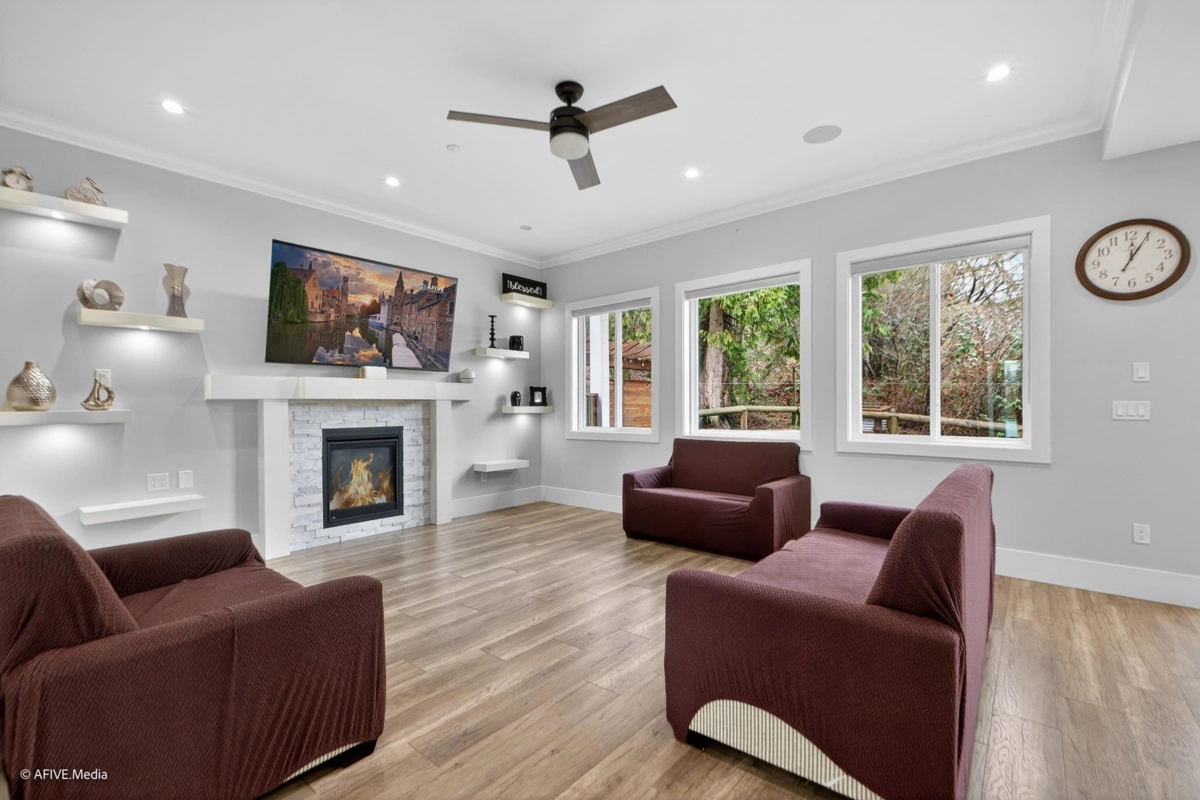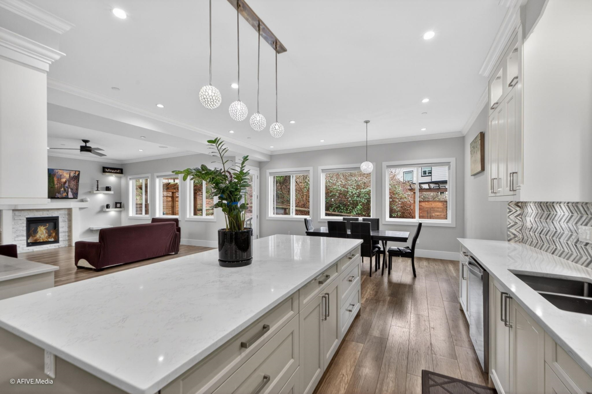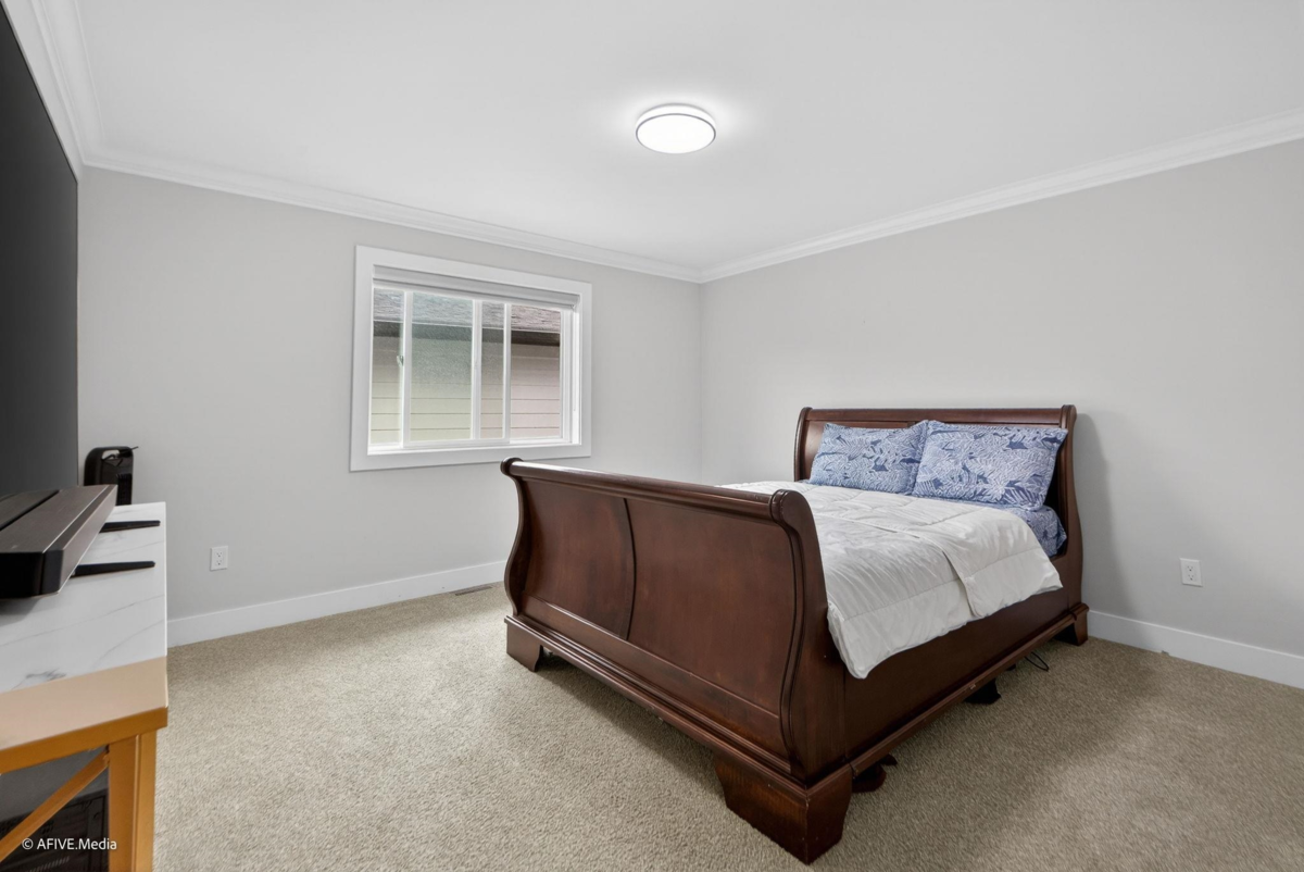 Gorgeous custom home offered at an exceptional value. What truly sets this property apart is its rare greenbelt exposure on a side and at the back, providing privacy and a spacious feel rarely found in today’s developments. This former show home features an open-concept great room with 10-ft ceilings, engineered hardwood flooring, and an abundance of windows. The modern kitchen offers a large island, ample storage, and opens to the dining area with access to a covered deck. Upstairs includes laundry, two primary bedrooms, a spa-inspired ensuite, two additional bedrooms with a Jack & Jill bath. The basement offers a large rec room and a legal one-bedroom suite with separate laundry. Double garage and driveway provide excellent parking and storage.