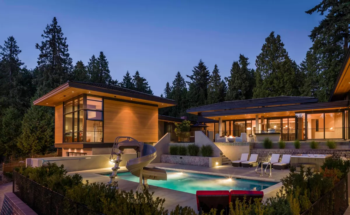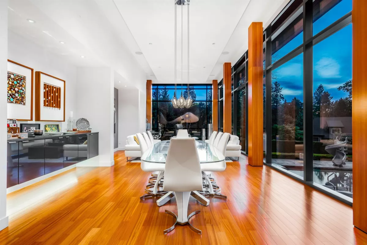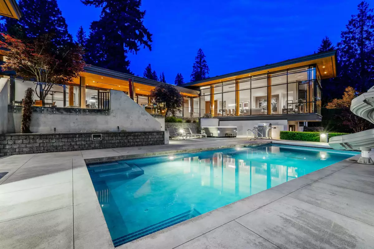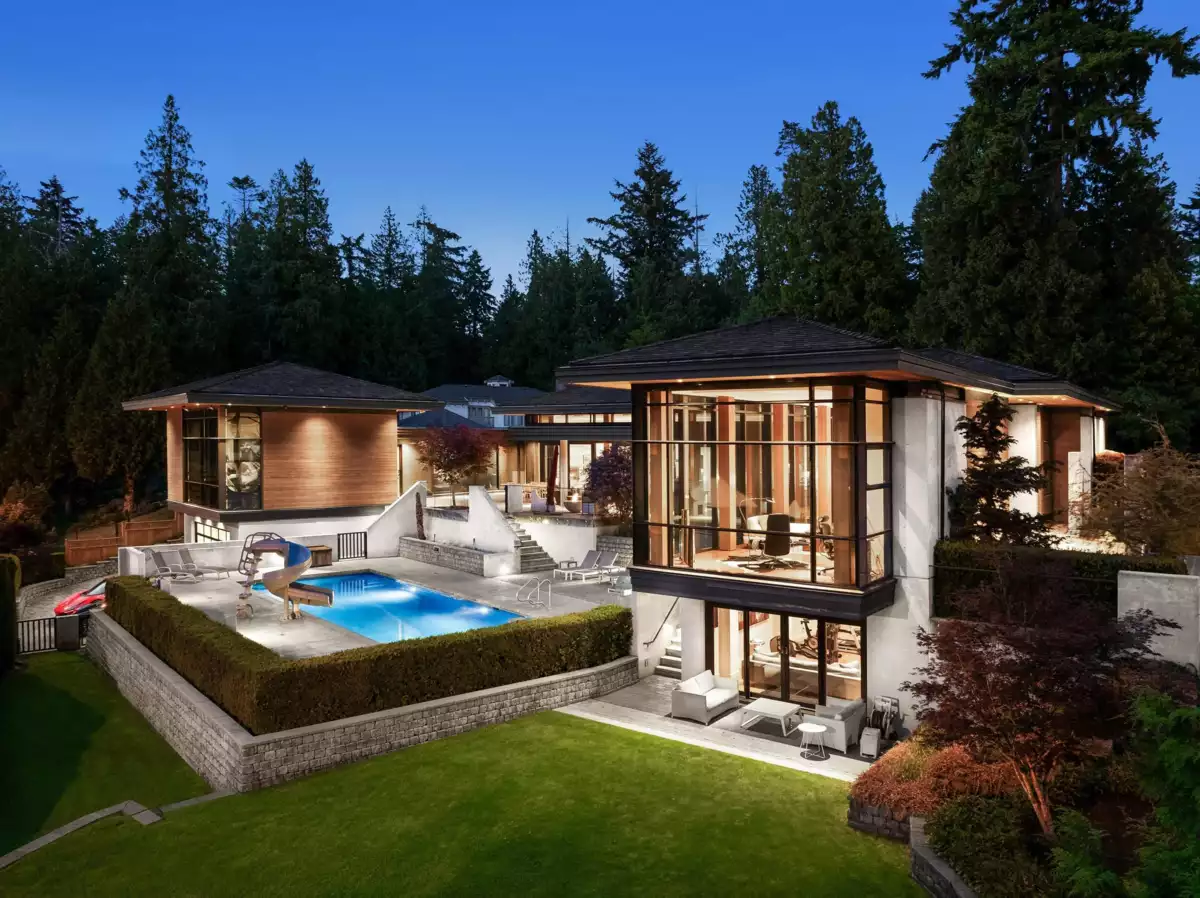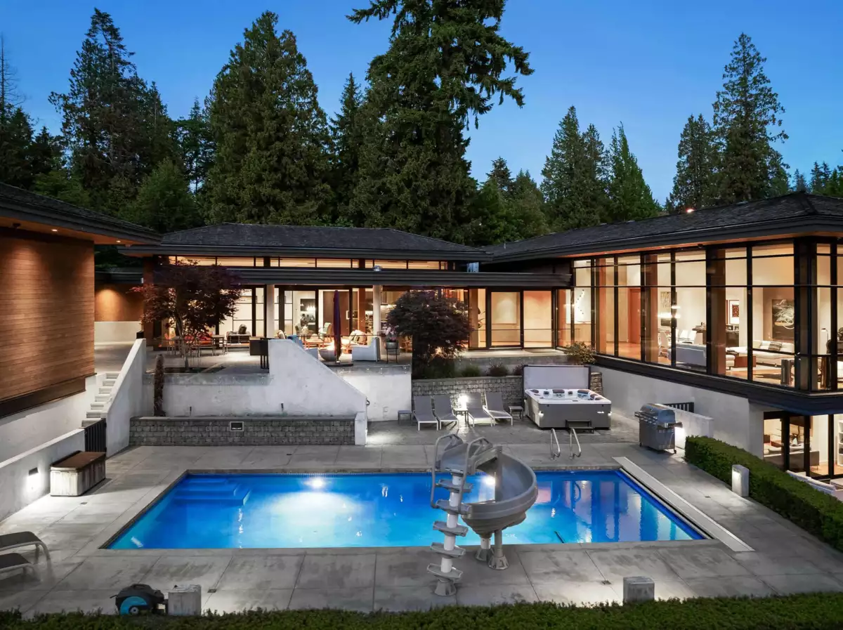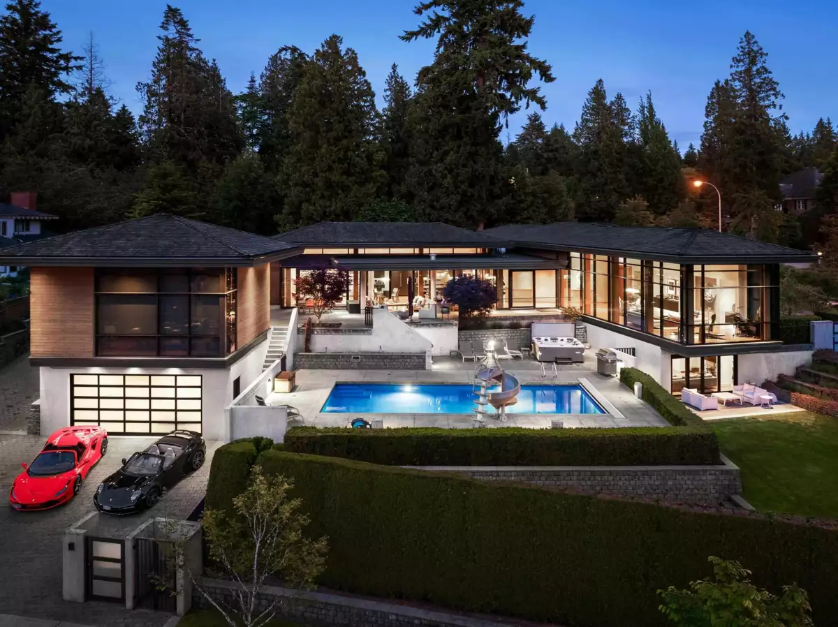Located in this most coveted Elgin Chantrel neighborhood this brilliantly designed Modern Masterpiece by renowned architect Robert Ciccozzi is a rare example of high performance construction masterfully designed and situated on one of the most beautifully landscaped properties in South Surrey. Extensive concrete, steel and timber construction define this 6 bedroom 6 bathroom family home. Experience an expansive open floor plan with entertainment size principal rooms providing a sensational indoor outdoor lifestyle with walk-out covered terrace with swimming pool, hot tub and fireside entertainment area with built in BBQ. The home features, exercise room, wet bar and home theatre together with Lutron and Savant home automation, air conditioning and garage parking for up to 5 vehicles.