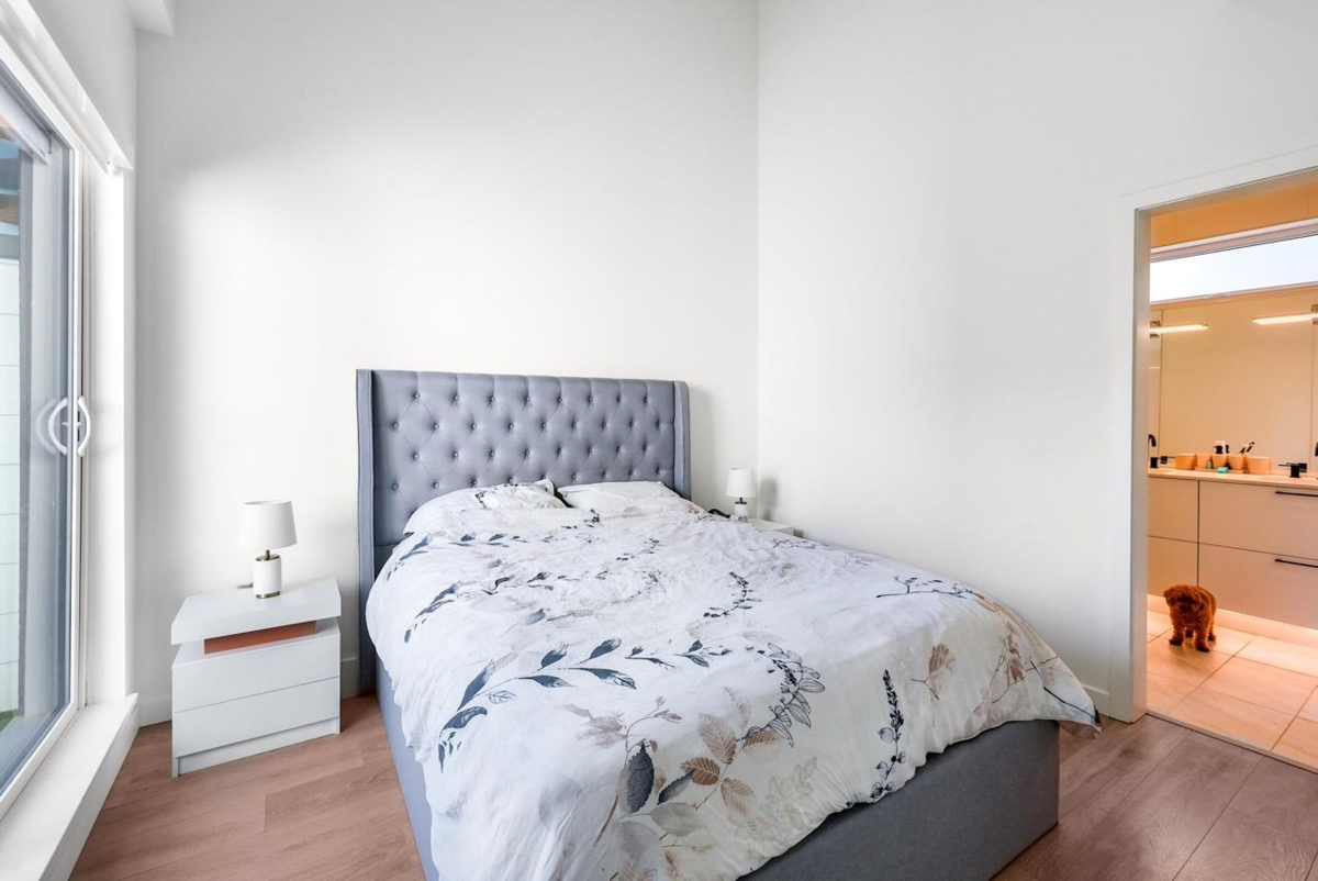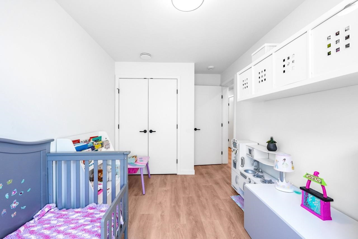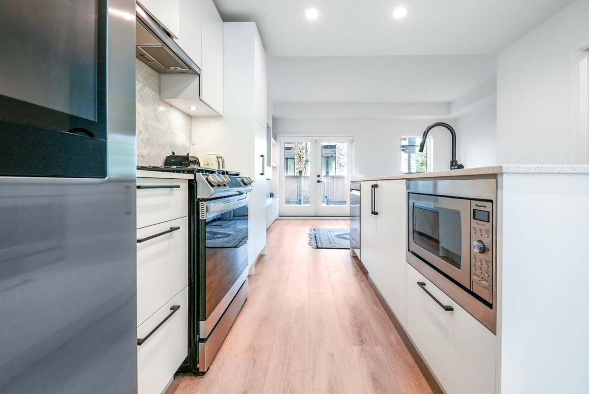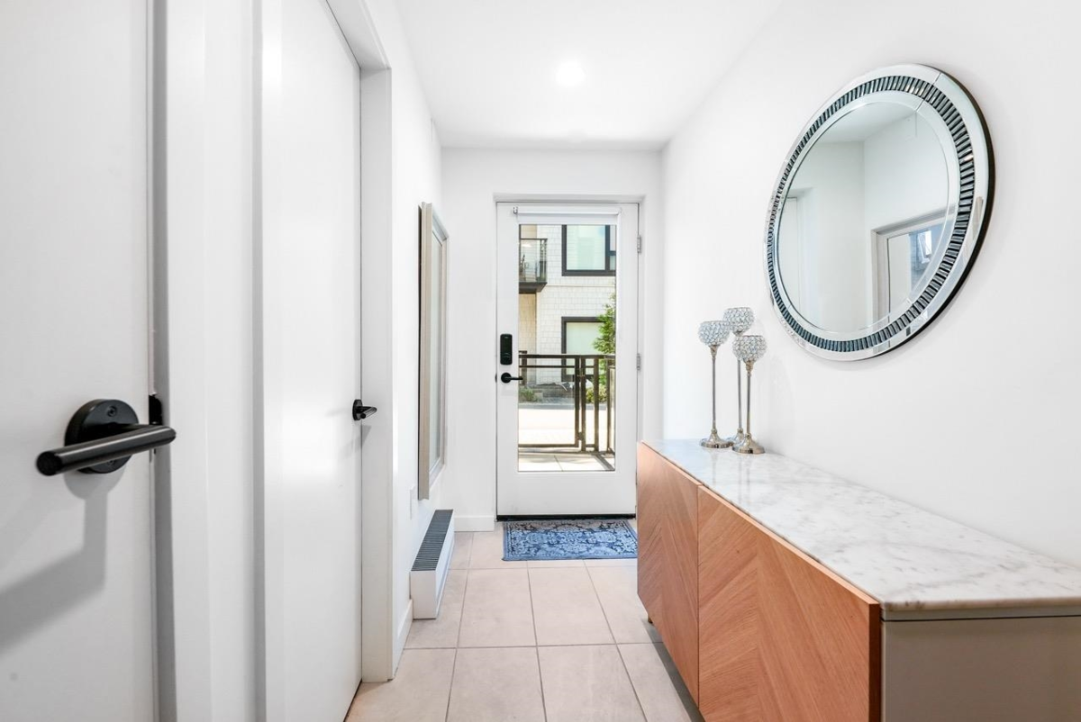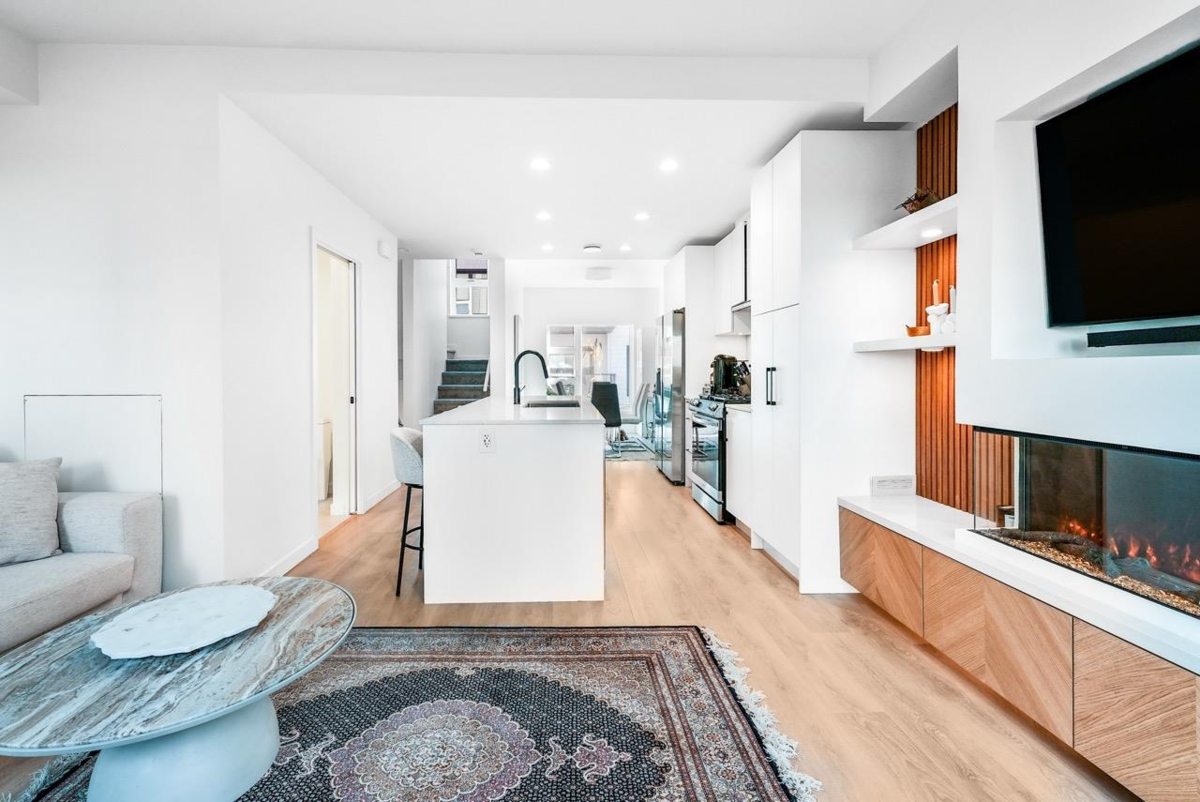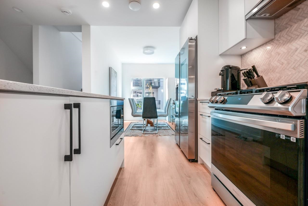 Bonus: No GST + two parking with EV charger installed! This one-year-old, beautifully maintained 4 bedroom townhome ( 4th bedroom doesn't have closet) at The Trails in North Vancouver’s vibrant Moodyville community features custom millwork, radiant in-floor heating, and premium Samsung Smart Hub appliances. The bright den with a window is perfect for a home office or playroom, while the open layout fills with natural light and offers a partial water view. Upstairs, a spacious private roof deck provides a perfect spot to relax or entertain. Secure underground parking and a storage locker are conveniently located right beside the entrance. All just minutes from Lonsdale Quay, shops, trails, and the waterfront.