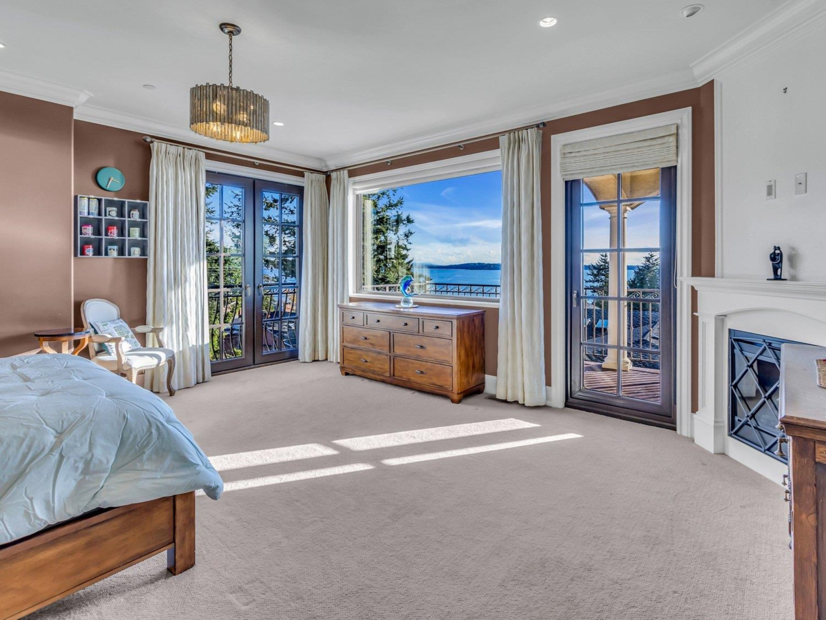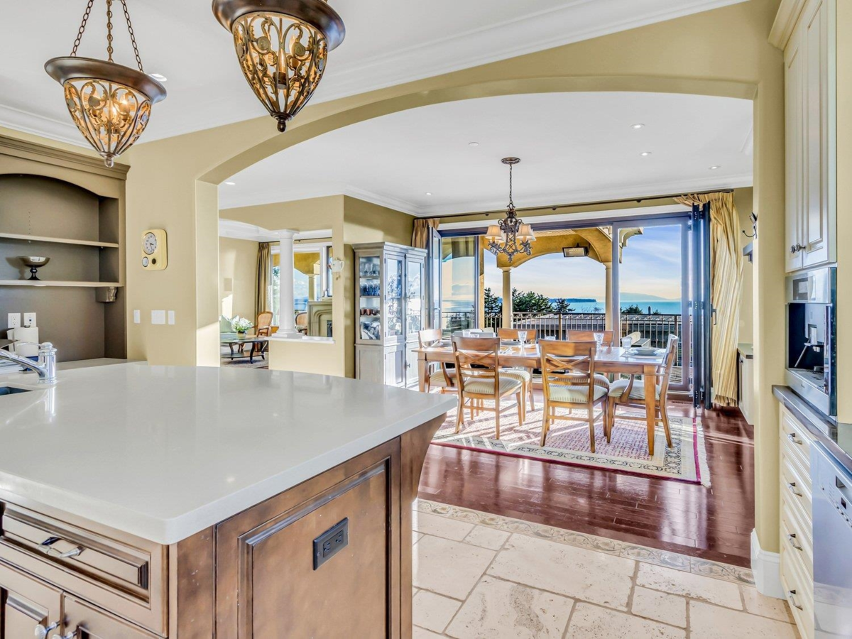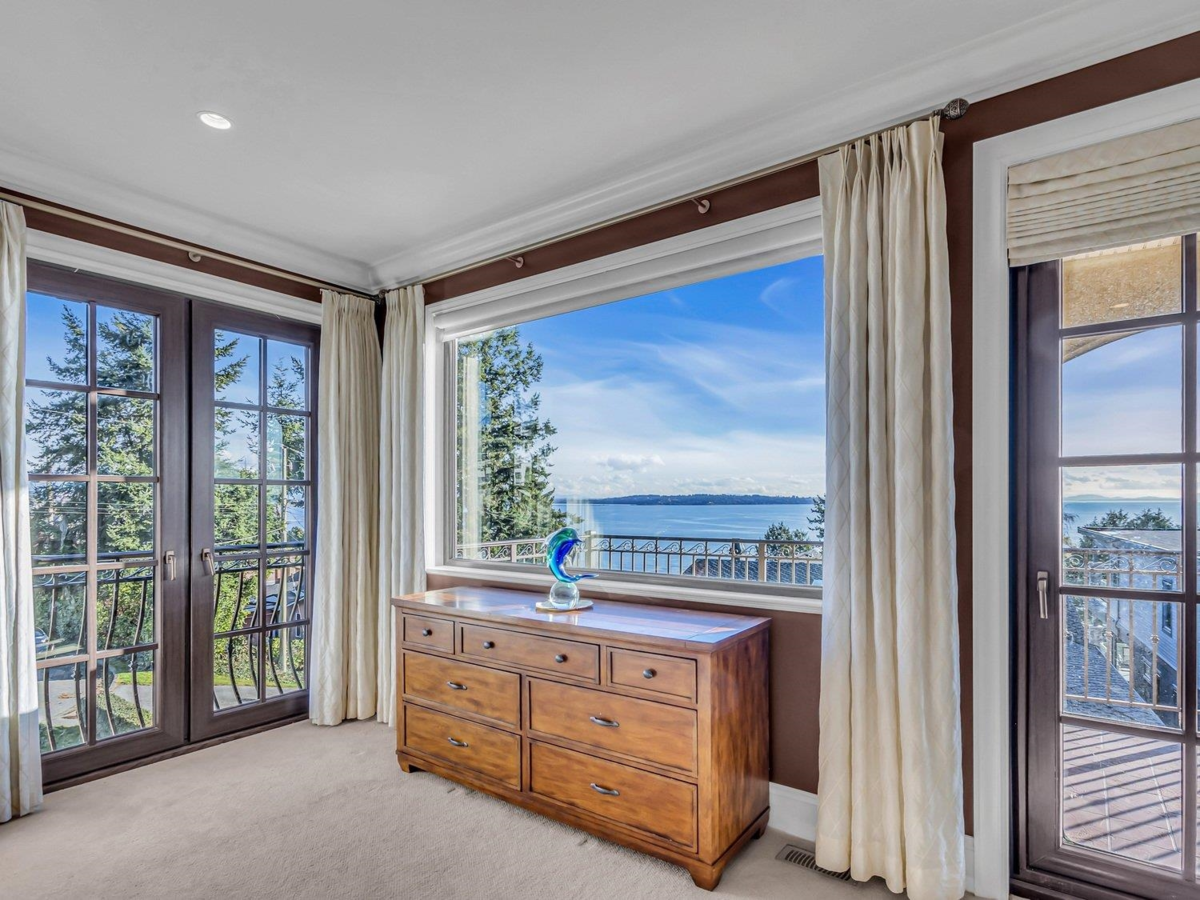 Gorgeous, OCEAN VIEW Mediterranean home built to the finest standards. This timeless custom-built home has luxurious finishes throughout with exceptional quality & the finest workmanship. Air conditioned, 4,300 sq. ft. LUXURY living space, plus wrap-around deck and patios with ocean views for outdoor entertainment. Top Floor boasts superb panoramic ocean view throughout, a comfortable living room and dining room perfect for entertaining, a master chef's Kitchen with Miele/Subzero appliances, and a truly spectacular Master Bedroom with ocean view! 3 Additional spacious bedrooms on the main level along with a den & family room. Lower level offers a gym, sauna, games room and wet bar. School: Bayridge Elementary & Semiahmoo Secondary Schools.