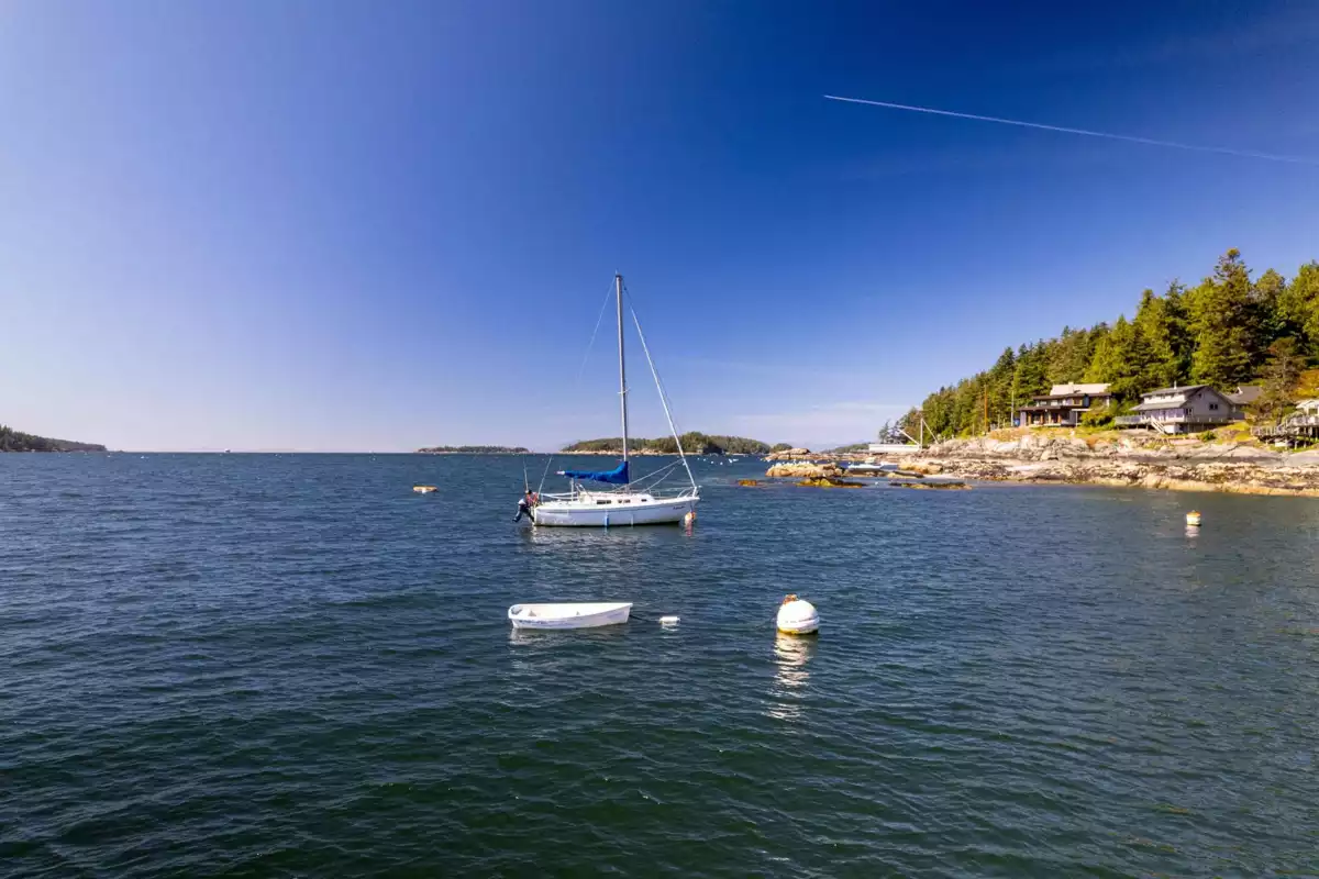 Charming, renovated 2-bed cabin on Keats Island! The perfect turn-key vacation home. Just a 2-minute walk to Eastbourne dock & Maple Beach. This accessible, single-level home comes fully furnished and move-in ready—includes a golf cart & a private mooring buoy if you have a boat! Sleeps 7 comfortably with a built-in Murphy bed for maximum use of space. Enjoy the quintessential island life: morning coffee on the covered 30'x7' porch, and afternoon sun and BBQs on the spacious backyard sundeck. The flat grassy front yard is ideal for summer lawn games! Keats Island offers great cell service, fast internet, and community drinking water. All this is just a quick water taxi ride away, making for a 30-minute commute to Horseshoe Bay. Call for a tour today!