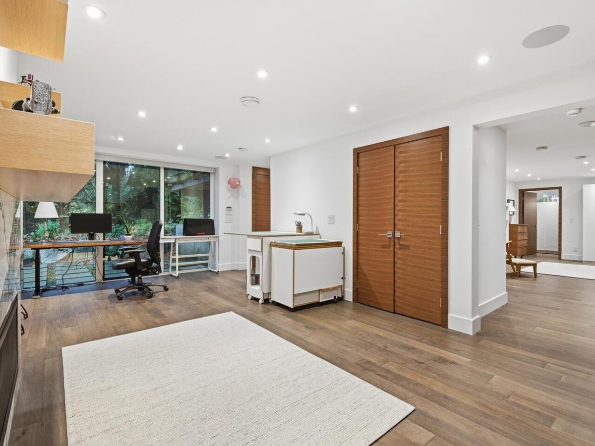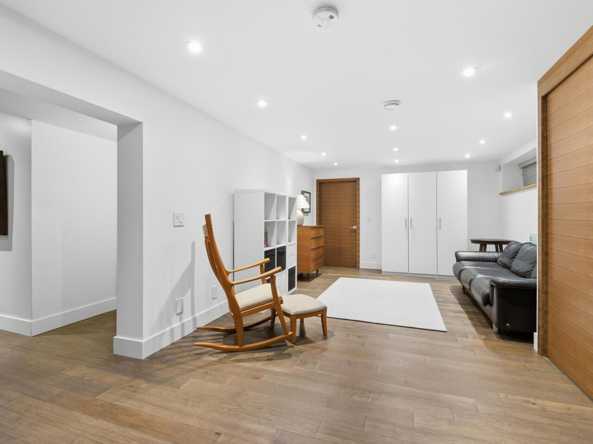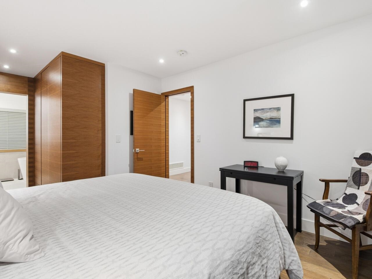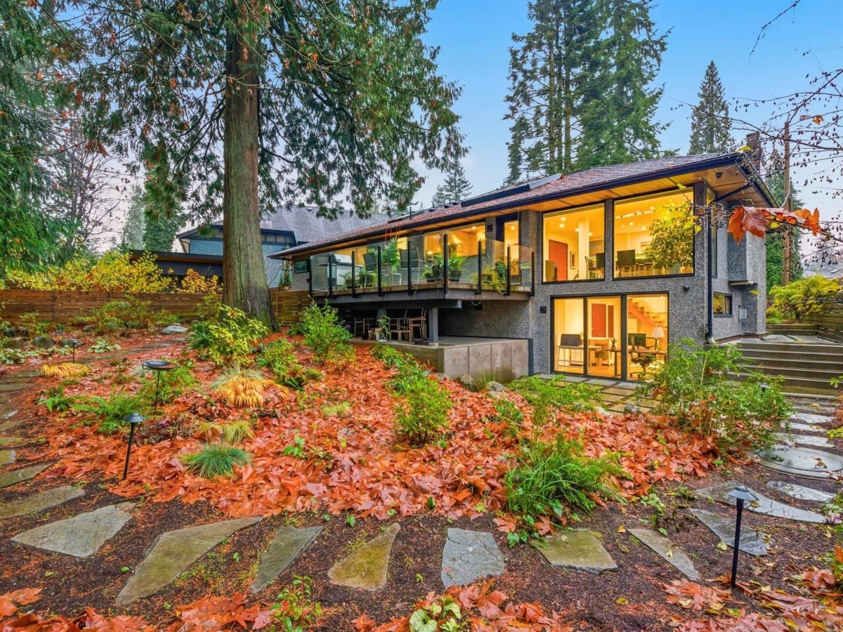 Welcome to your "new" home!'New' also means stripped to the studs and rebuilt from the ground up, leaving no stones unturned. This home offers a warm feel from the time you open the door, with engineered hardwood floors to rich oak doors and cabinetry throughout. Glazing stretched from floors to ceiling - taking in the greenbelt, natural light. Primary bdrm, walk through oak closet to a huge ensuite bathroom. Secondary bedroom on main for small ones or an office. Lower level offers future potential for a one bedroom suit or keep to yourself, all fully finished. New heating, electrical, plumbing drywall,perimeter drains, rain screened stucco, roof, A/C! on and on it goes. Wolf, Sub Zero Appliances, Navien on demand Ht/Wt, 2 new gas F/P's. This is a must see to explore all the/your options.