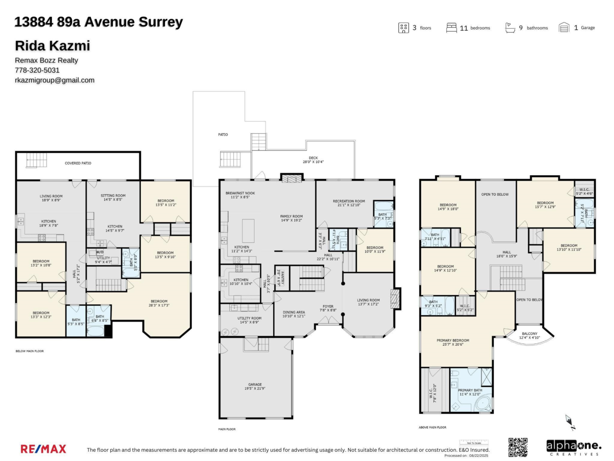 *Perfect Family Home with Mortgage Helpers!* Welcome to this stunning custom-built residence, ideally located between Bear Creek Park and Green Timbers Park. Walking distance to schools and the future Skytrain, with Surrey Central just minutes away, this home blends modern luxury with everyday convenience. Inside, you'll find an open-concept design with soaring ceilings, oversized windows, elegant hardwood floors and custom millwork- bright, stylish and built for comfort. The fully finished basement offers two self-contained suites (3-bed+2-bed, both rented), plus a provision for a 1-bed suite on the main floor- giving you up to three mortgage helpers! An unbeatable opportunity in a prime location- this home truly has it all. Don't Miss Out- Book a Viewing.
