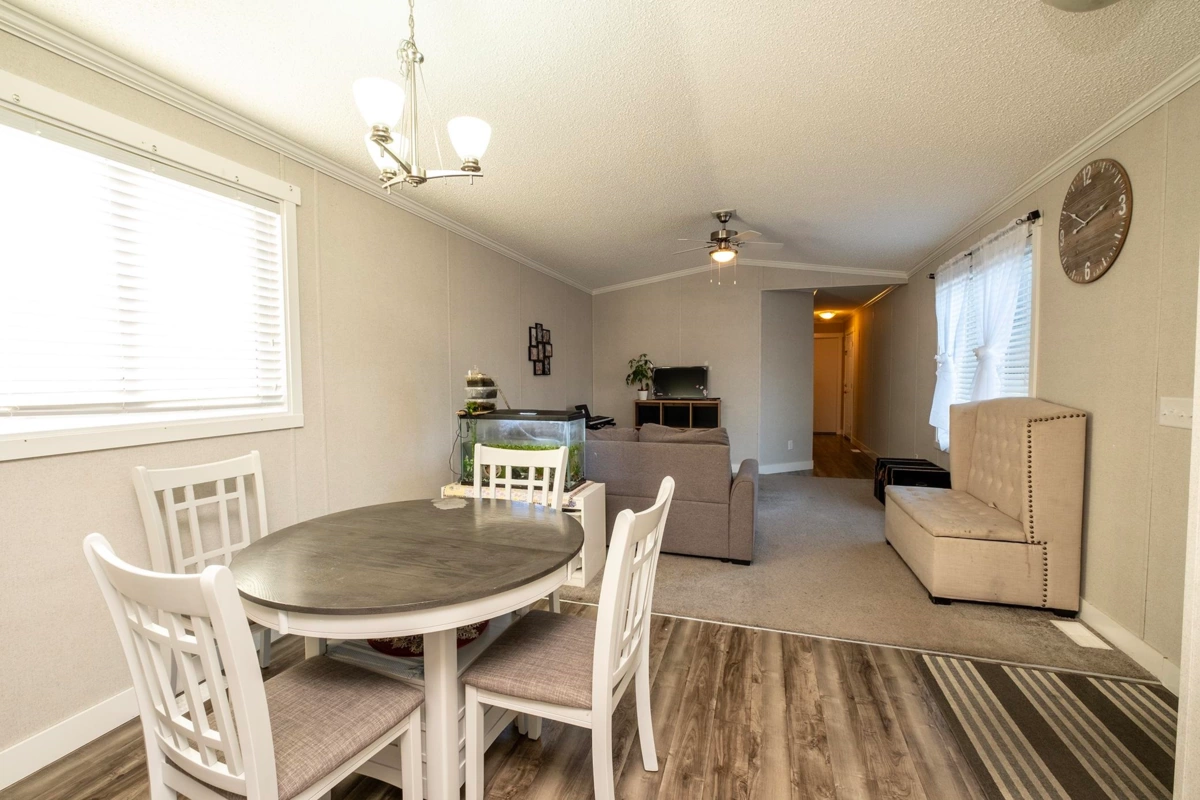 Modern comfort meets affordability in this nearly new 2020 2 bed, 2 bath, manufactured home in highly sought-after Poplars Estates mobile home park! Fantastic open plan, kitchen, dining and living room in this well kept home. The primary suite includes a large walk-in closet and private en-suite. There's a separate laundry room/pantry adjacent to the kitchen. The home is set in the centre of the park away from any highway noise .Enjoy ample parking and a community-focused setting in this nearly new home.The property is bright and sunny, perfect for veggie growing. Fresh and clean with an ideal location in Gibsons being right on the bus route and close to all the amenities of Gibsons including shops, schools and the local trails and beaches. Hurry this one won't last!