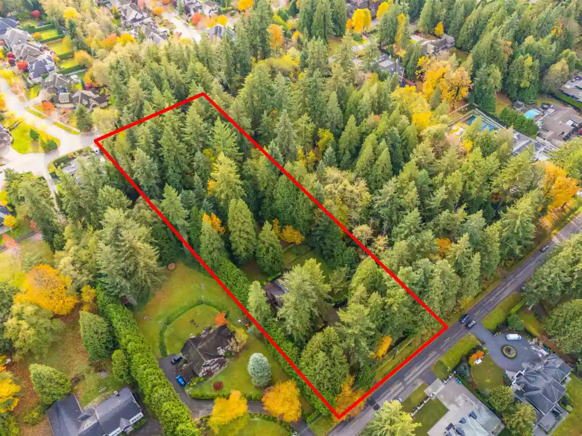 Prime Elgin Chantrell Parkside trophy ESTATE LOT, 2.34 acres, 157 x 647 rectangular. Double fronting on 27th and 28th Ave. Currently with well kept split level with hardwood floors plus a 24 x 32 outbuilding, live comfortably while you plan. First option: build a significant single family estate or a multi home family compound under RA. Or subdivide to two or potentially four lot configurations. Buyers to confirm options with the City. In Chantrell Creek Elementary and Elgin Park Secondary catchments. Quiet, private, near South Surrey White Rock amenities.