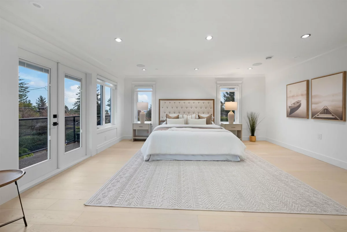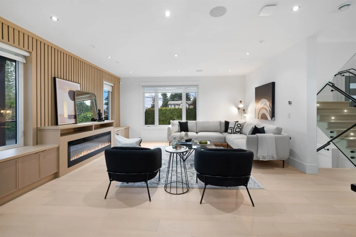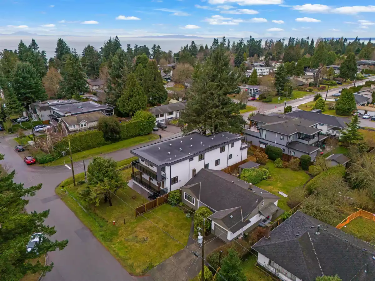 A striking brand-new luxury modern home on a quiet corner lot in one of White Rock’s most prestigious neighbourhoods. Situated on an expansive 8,188 sqft lot, this residence offers approximately 6,208 sqft of thoughtfully designed living space, ideal for multi-generational living. Featuring 8 bedrooms + Office and 8 bathrooms, a legal 2-bedroom basement suite with private access perfect for extended family or a mortgage helper. The chef’s kitchen is equipped with premium JennAir appliances, real wood cabinetry, quartz stone countertops, and a fully equipped spice kitchen. Open-concept living areas showcase engineered hardwood flooring, oversized windows, and custom millwork throughout. Complete with Control4 automation, security system, air conditioning, and hide-a-hose vacuum & much more!