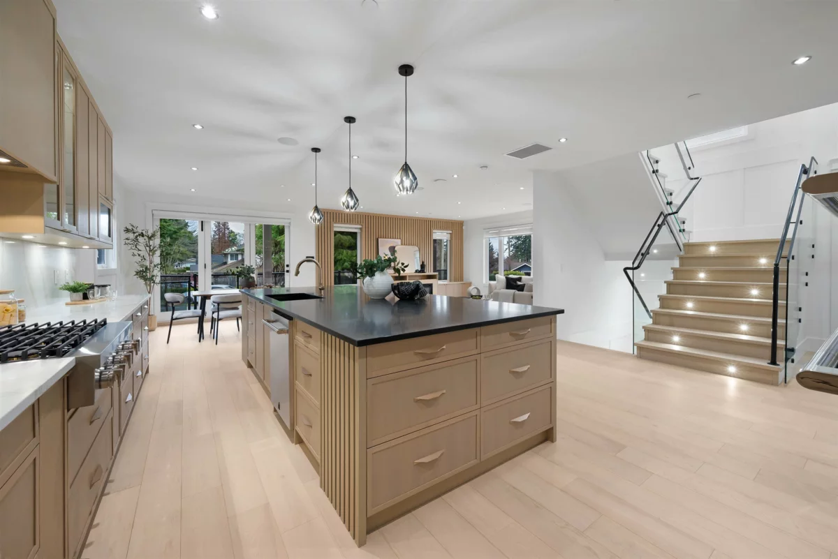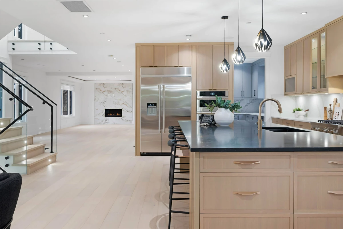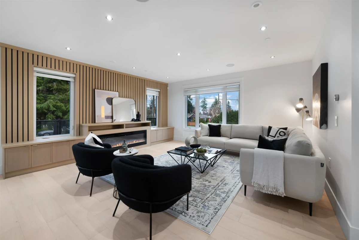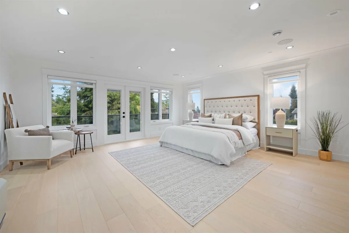 A striking brand-new luxury modern home on a quiet corner lot in one of White Rock’s most prestigious neighbourhoods. Situated on an expansive 8,188 sqft lot, this residence offers approximately 6,208 sqft of thoughtfully designed living space, ideal for multi-generational living. Featuring 8 bedrooms + Office and 8 bathrooms, a legal 2-bedroom basement suite with private access perfect for extended family or a mortgage helper. The chef’s kitchen is equipped with premium JennAir appliances, real wood cabinetry, quartz stone countertops, and a fully equipped spice kitchen. Open-concept living areas showcase engineered hardwood flooring, oversized windows, and custom millwork throughout. Complete with Control4 automation, security system, air conditioning, and hide-a-hose vacuum & much more!
