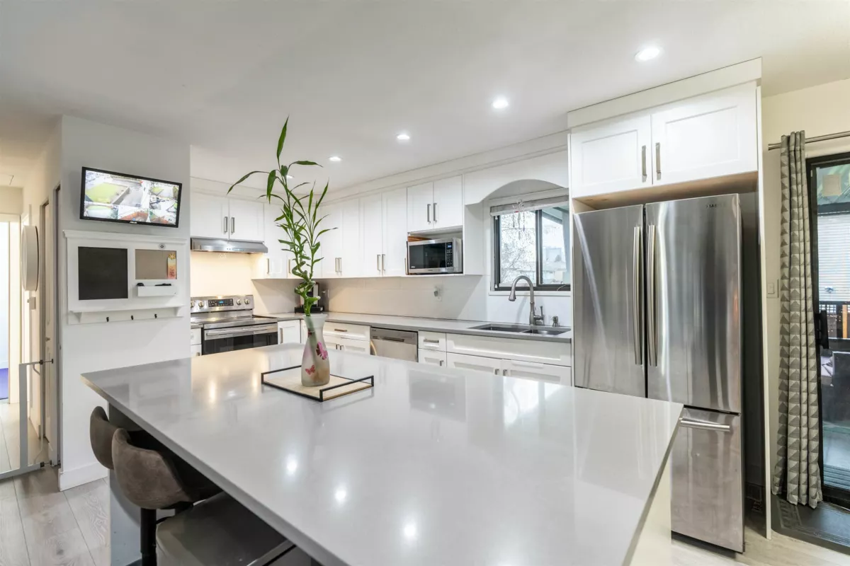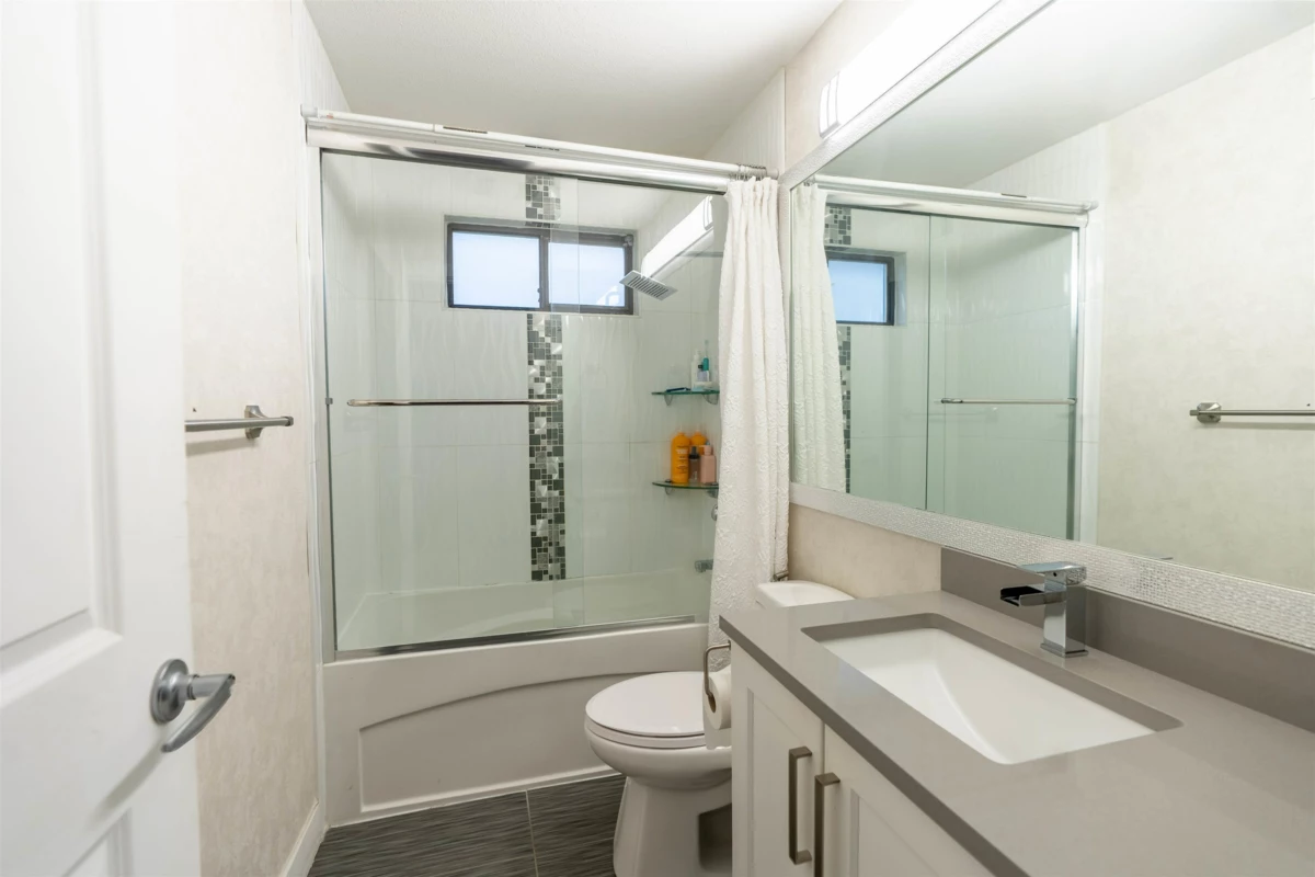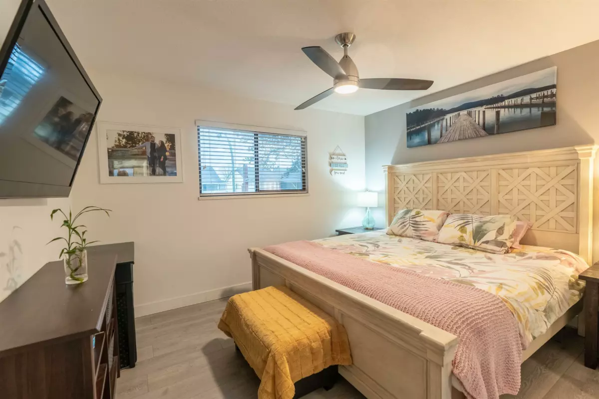 Beautifully updated 4-bed home in desirable Bear Creek Green Timbers! 1,700+ sq ft on a 6,081 sq ft lot, steps to Bear Creek Park and half a block to elementary & pre-school—perfect for families. Fully renovated interior featuring open-concept new kitchen & new bathroom, updated flooring (tile, laminate & carpet), pot lights, ceiling fans, baseboards, doors, closet organizers, paint, stainless stair rail, blinds/drapes, CCTV & security system. Appliances & hot water tank (2020). 1-bed basement suite rented at $1,300 + 40% utilities. Exterior renos (2024): new fence, front & back balconies with metal railings & awnings, gutters, fascia, paint & sensor lighting. Quiet street with ample parking—move-in ready!