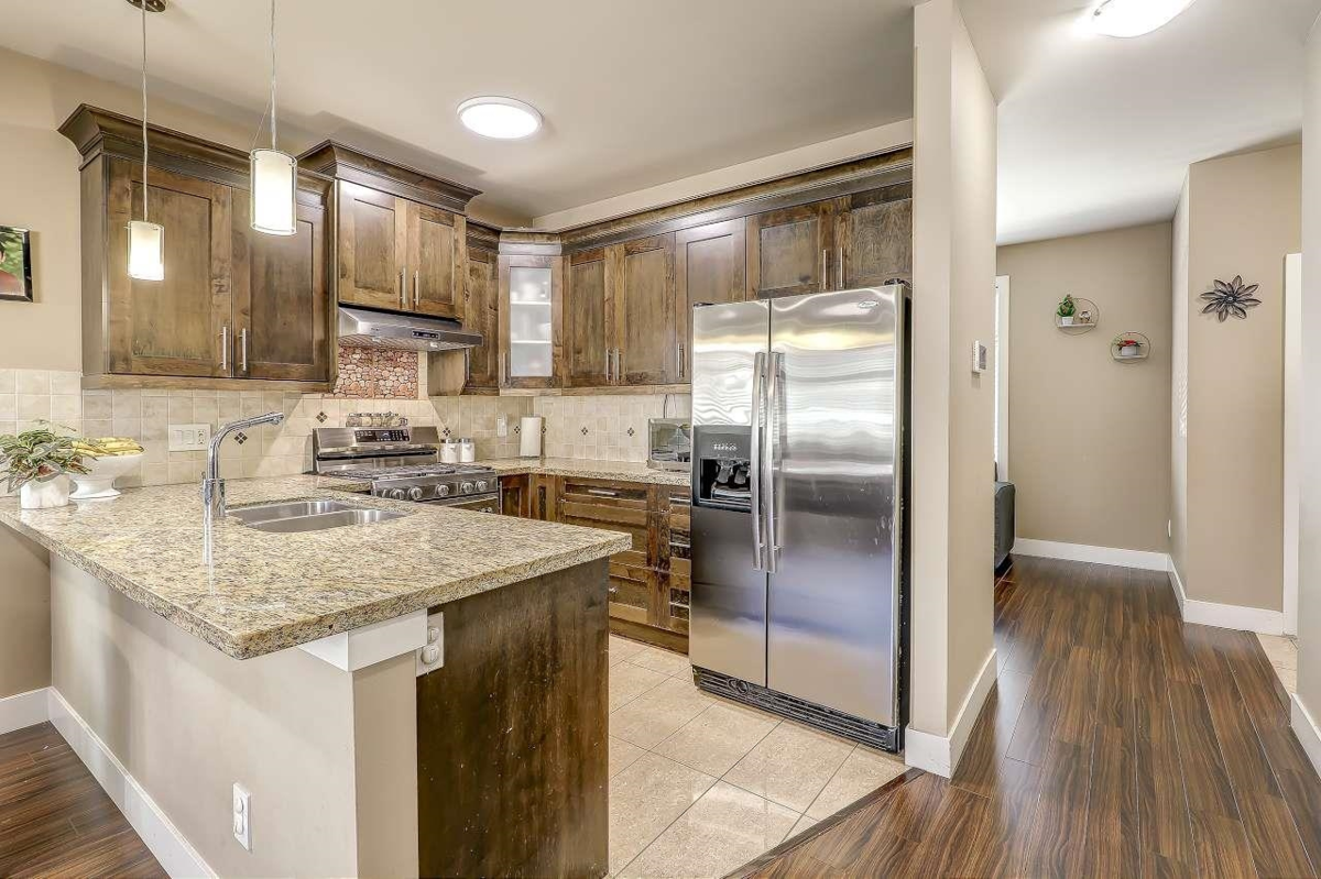 GREAT FAMILY home. This half duplex is NON STRATA with NO STRATA fees. The home has a total of 5 bedrooms, 4 bathrooms, open floor plan on the main floor, which includes a large family room, dining room, kitchen and separate living room. Features include: stainless steal appliances, new gas stove in the main kitchen, radiant in floor heating on main & upper floor, granite counter tops throughout, custom built-in in master bedroom, updated laminate flooring throughout with a 2 bedroom registered suite for mortgage helper. Steps to transit and one block to elementary school. 1 car garage and with a covered carport for 2 extra parking. Book your private viewing today.
