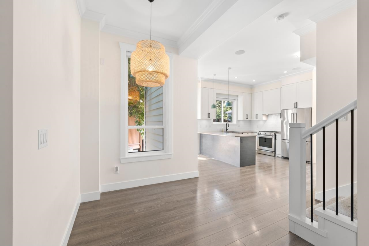 Welcome to Marca - an exclusive enclave of MEGA SIZED townhomes in the heart of South Surrey, where timeless architecture meets modern coastal elegance. This rare END unit & former SHOWHOME offers over 2,800 sq. ft. of thoughtfully designed living space in the most private location within the community. Featuring 4 spacious bedrooms-including a vaulted-ceiling primary retreat-a fully finished bsmnt w/ custom bar & a light-filled open-concept great room, this home is perfect for both entertaining and quiet moments. Enjoy a walk-out yard, upstairs patios, CENTRAL HEATING & A/C, a chefs kitchen w/ premium SS gas appliances, & a double side-by-side garage. Minutes to White Rock Beach, top schools, parks, shopping & transit-this MOVE-IN READY home combines privacy, sophistication & convenience.