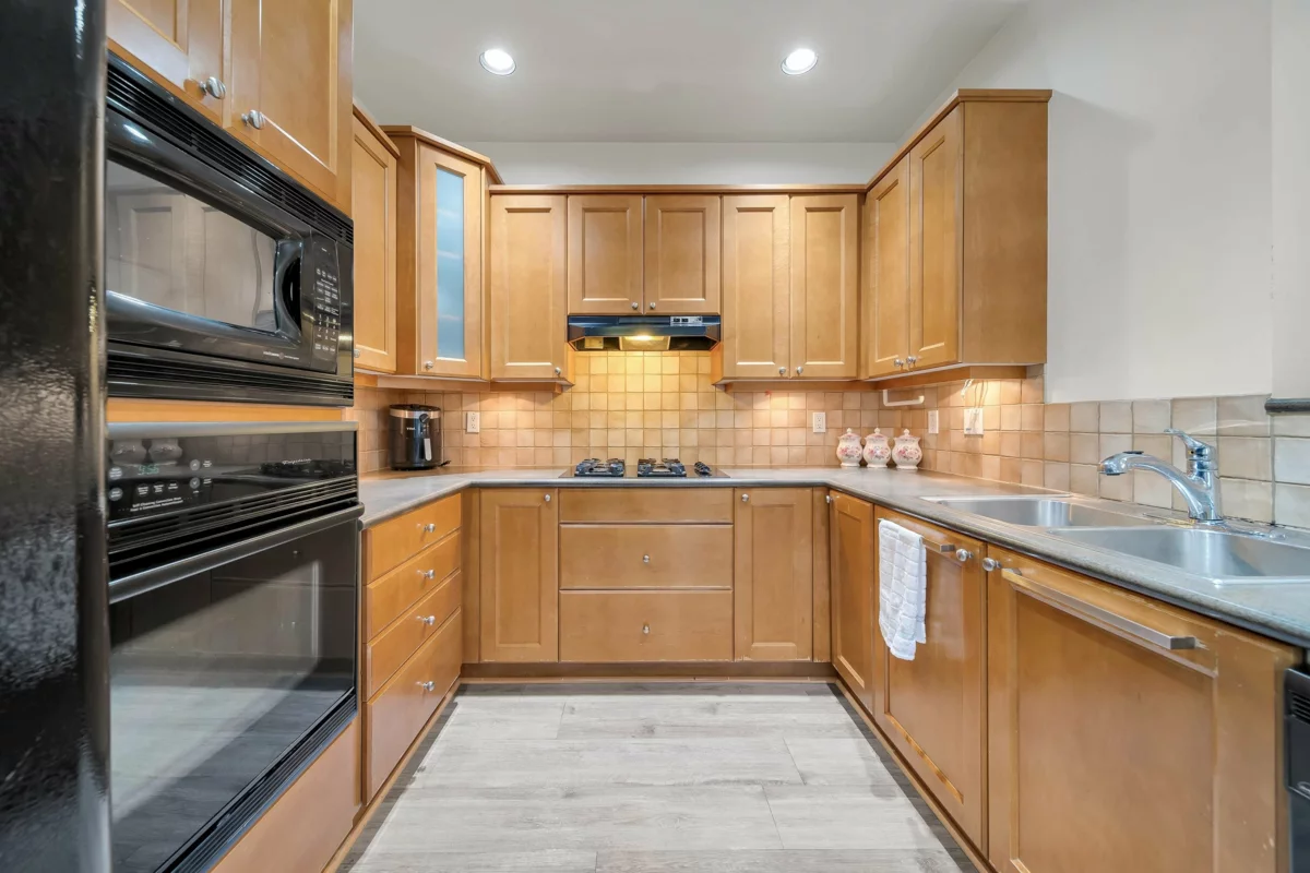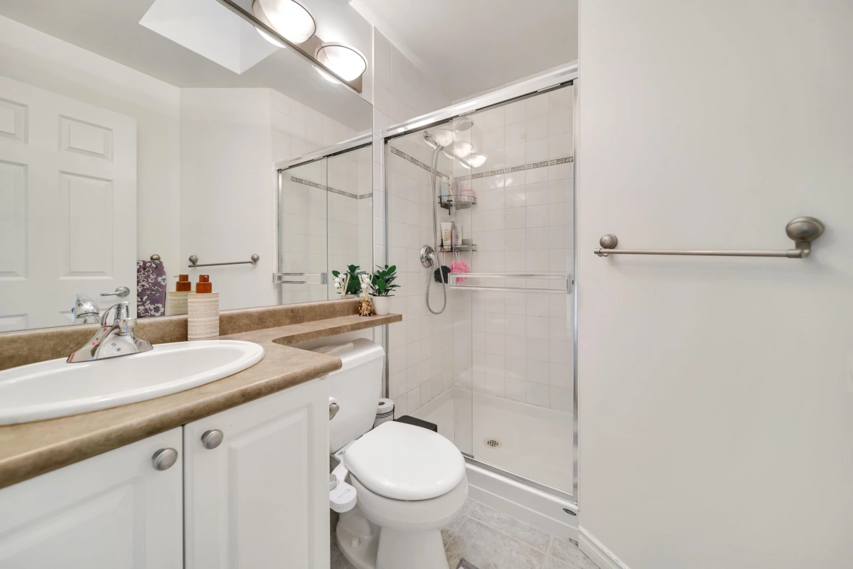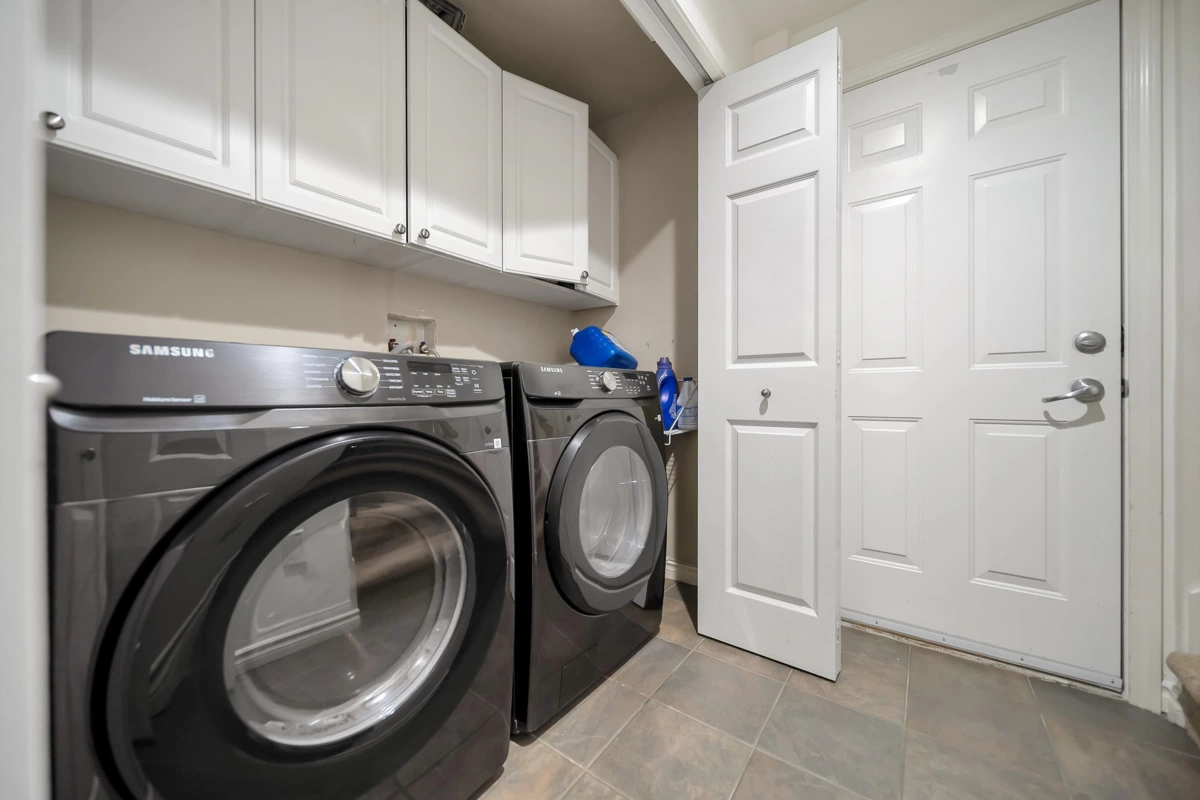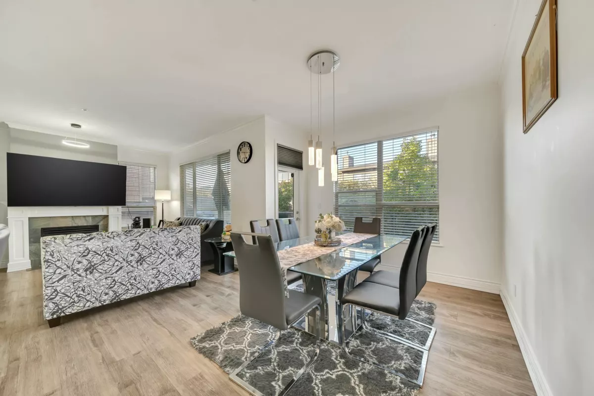 Welcome to Ridgewoods- a beautifully maintained air-conditioned end-unit townhouse offering nearly 2,200 sqft of elegant living in a highly desirable Cloverdale location. The bright, open-concept main floor features large windows, skylights, a cozy gas fireplace, spacious dining area, and a sunny deck. The modern kitchen offers abundant cabinetry and workspace, perfect for entertaining. Upstairs awaits a luxurious primary suite with fireplace, private balcony, walk-in closet, and spa-style ensuite with heated floors. Two additional bedrooms plus a full basement with recreation and games rooms add flexibility for family living. Double side-by-side garage, updated roof (2021), and resort-style amenities- clubhouse, guest suites, and fitness centre. Steps to Northview Golf Club.