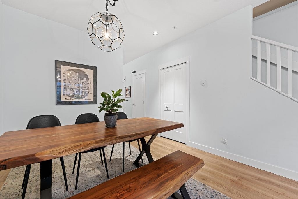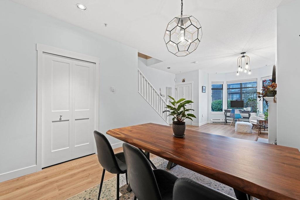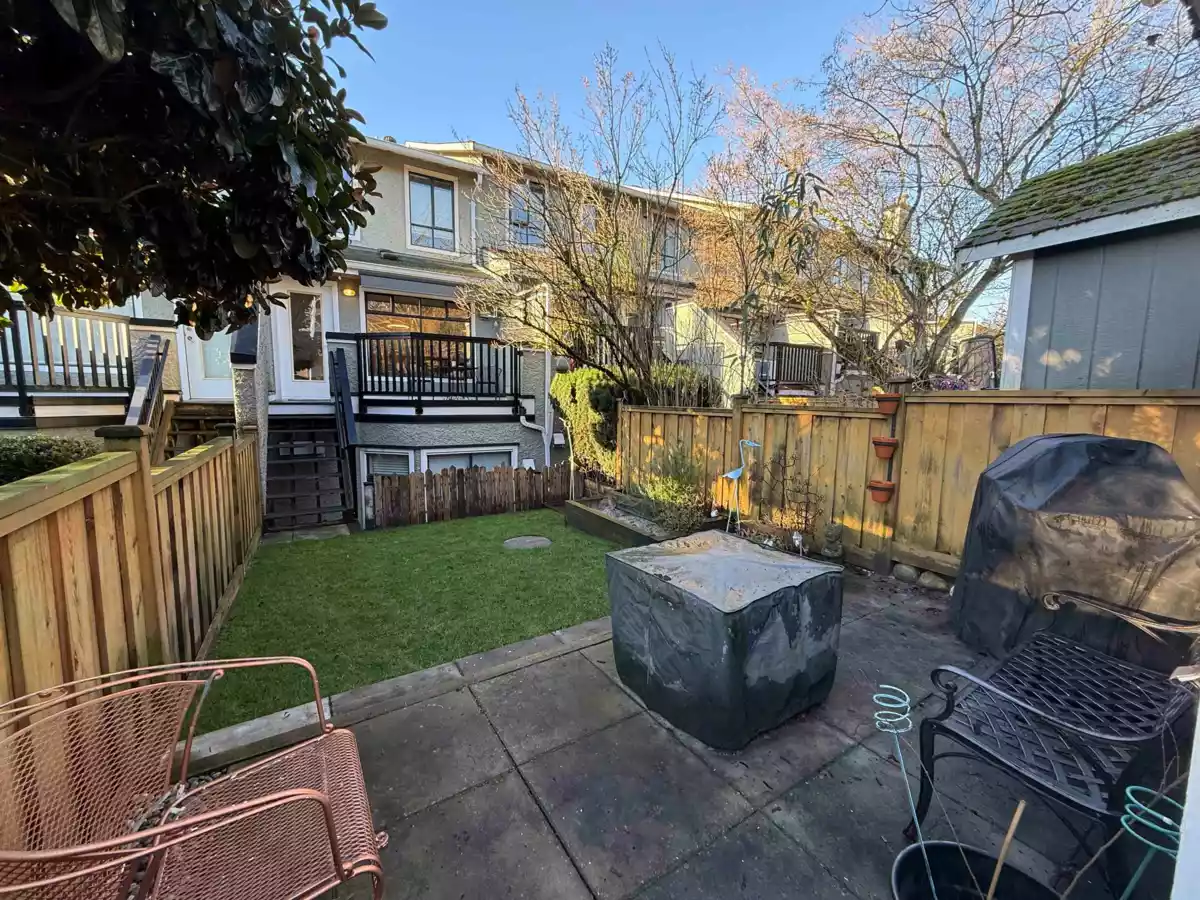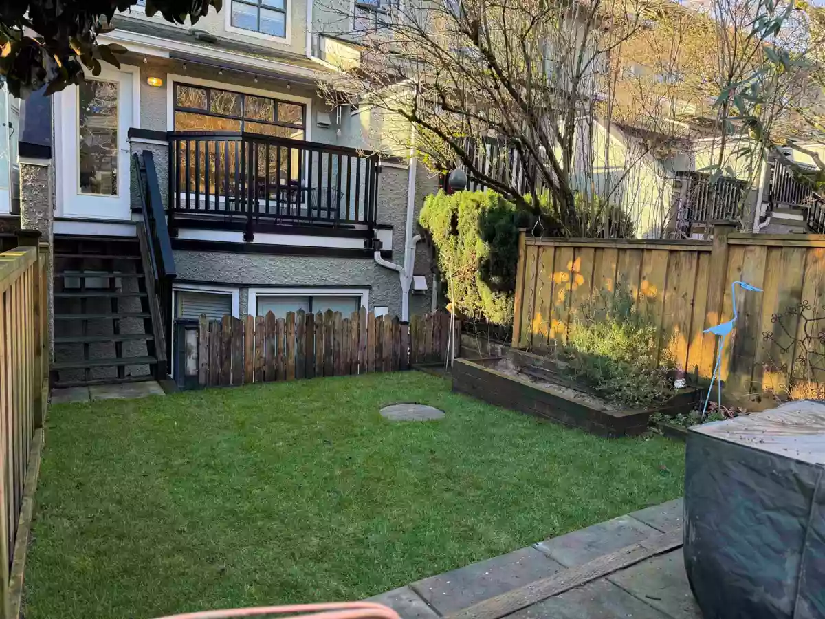 Unique 2-level townhome in a boutique English-style complex on a peaceful no-through street. This home stands out for its rare large backyard directly off the main level, superb walkability and privacy. Strata Fees include HEAT, HOT WATER and GAS! Inside: 9 ft ceilings, new flooring, bright family room with walkout access to a private patio and fenced yard, ideal for kids, pets, gardening, or morning coffee and evening wine. Cozy living room with gas fireplace and dedicated dining area add great usability. Upstairs are 2 bedrooms + skylit den perfect as an office, nursery, or 3rd room. Large attic allows for additional storage. Features include 2 secure underground parking stalls, front and lane access, and recent building repiping. Location: skytrain, parks, schools, cafes, shopping!