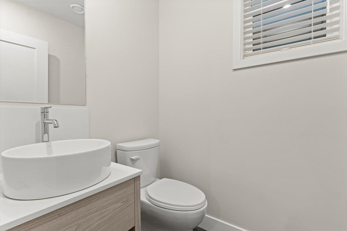 Welcome to Acadia at Garrison Campus! A modern 4 bed, 4 bath townhome in a prime Sardis location. Steps from Garrison Crossing, the Vedder River Trail, parks, cafés, UFV, and Stitó:s Lá:lém K-8, this home offers the perfect blend of lifestyle and convenience. Enjoy a bright layout with a chef-inspired kitchen, oversized island, open living room with electric fireplace, and large covered patio. Upstairs features 3 bedrooms and a stylish laundry room, while the lower level provides a flexible bedroom with full bath - ideal for guests, teens, or a home office. Complete with a double garage and room for parking, this is modern living in one of Chilliwack’s best walkable communities.
