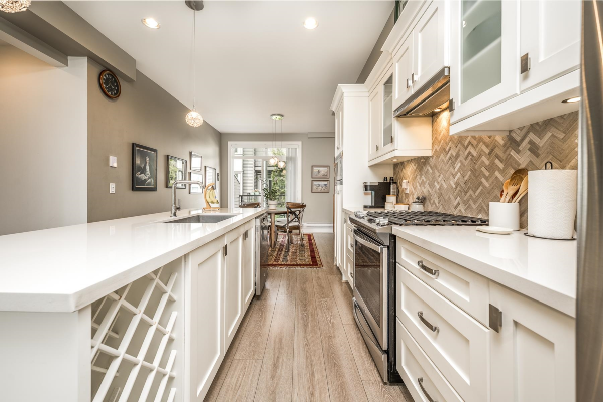 Top quality townhome! Seldom do we see Kohler bathroom fixtures, solid core doors and transom lights above doors with 9' ceilings. Beautiful, bright 3 bedroom and den home in choice location minutes from town center and the waterfront. Great room concept with large island anchoring the space. Kitchen boasts white shaker cabinets, quartz counters, stainless steel appliances & gas range. Deck off dining room to barbecue with gas hook-up and lounge. Lavish Master Suite with his/her sinks, spacious glass shower and walk-in closet. Nice neutral color scheme in move-in condition.