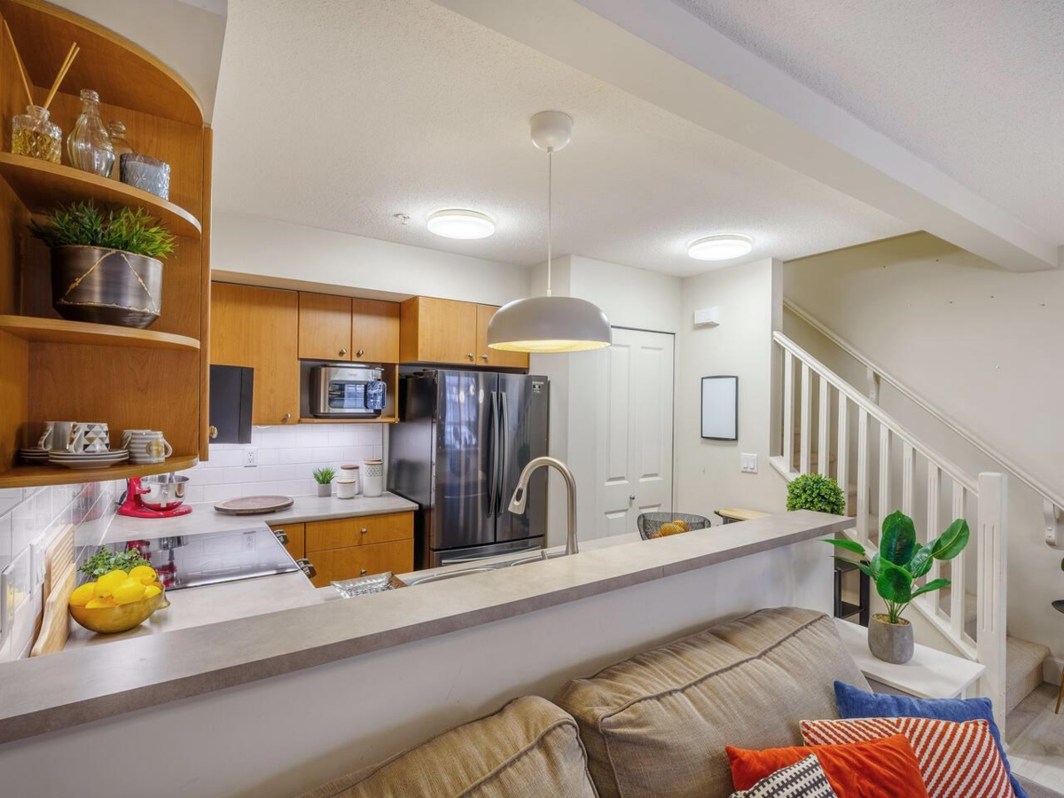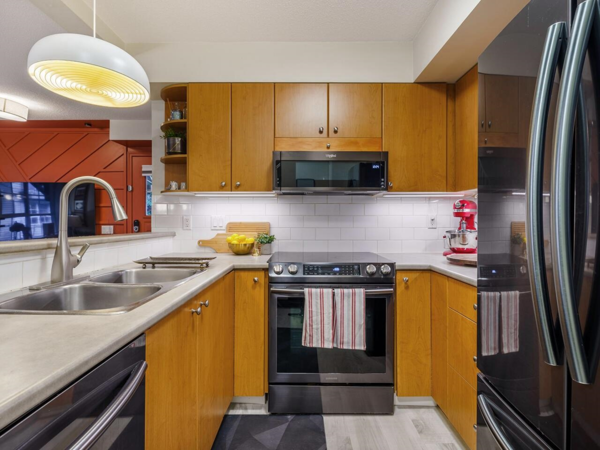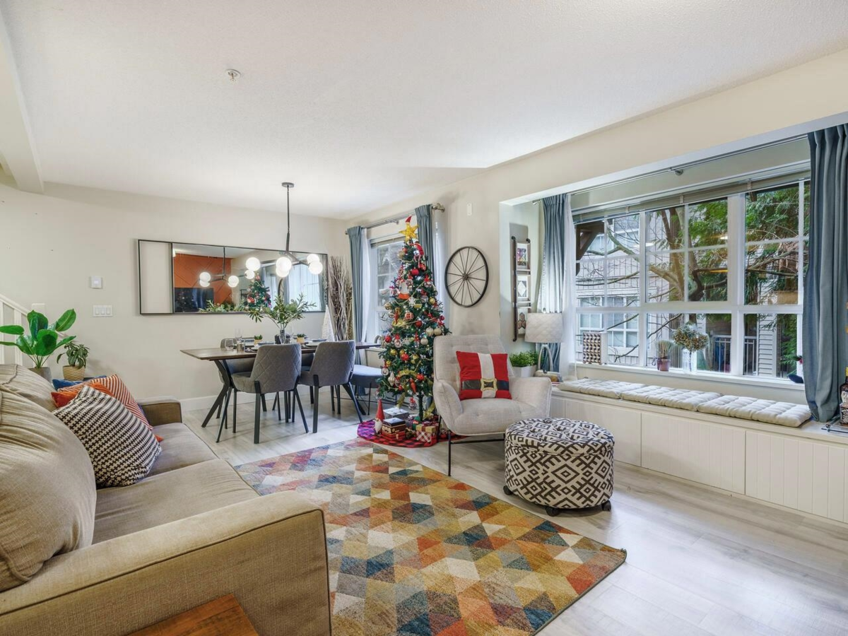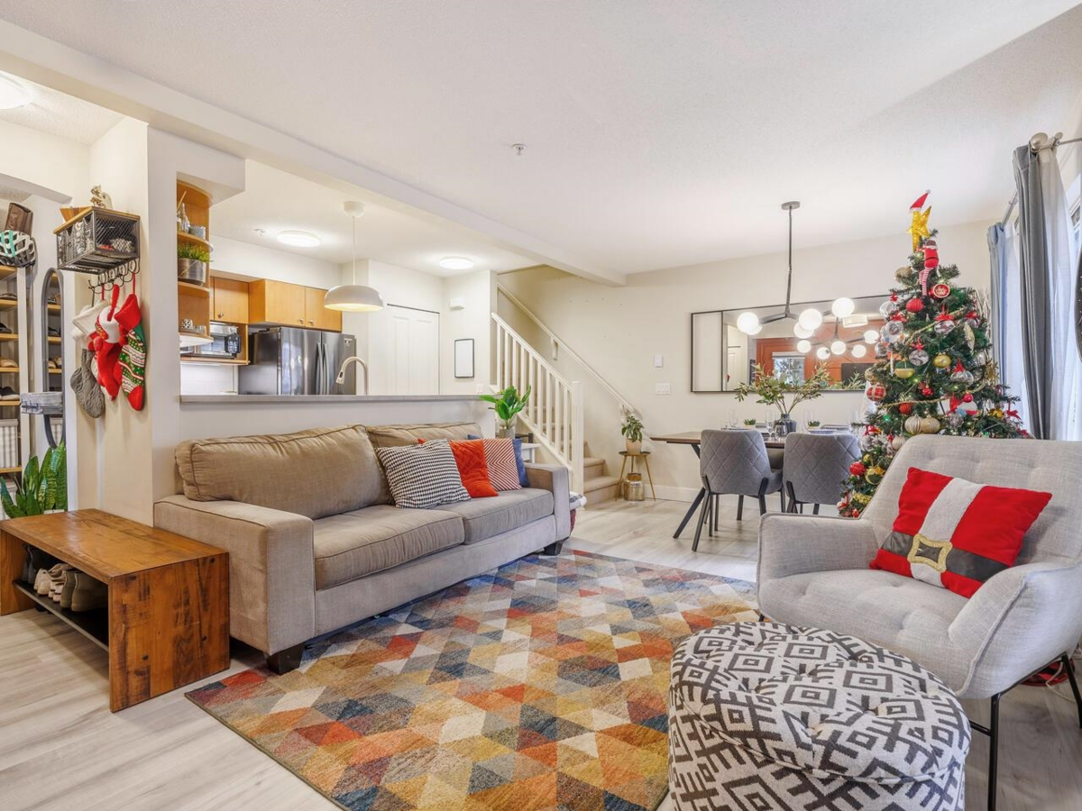 Welcome to the SOUTHBOROUGH complex in Burnaby East! Located in a quiet, family-friendly neighbourhood just a 5-min walk to Edmonds SkyTrain, this corner townhouse features 3 spacious bedrooms plus a versatile den and 2 full baths. The modern open-concept layout seamlessly connects the living, dining, and kitchen areas, with abundant storage throughout, including built-in wardrobes and cabinetry, plus high-end black stainless steel appliances. Surrounded by centennial trees, enjoy exceptional privacy on an easy-care front garden or on the spacious covered patio, perfect for year-round entertaining. Schools, parks, shopping, community centre, and transit are all within walking distance. A rare opportunity in one of Burnaby East’s most desirable communities. OPEN HOUSE SAT, JAN 3 FROM 2-4PM!