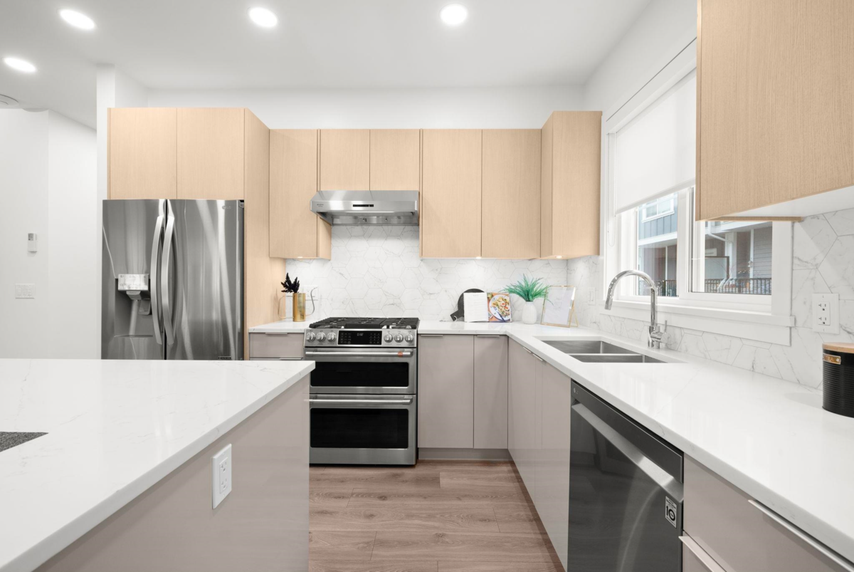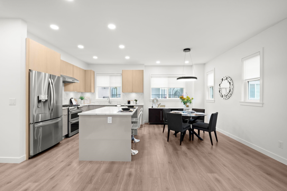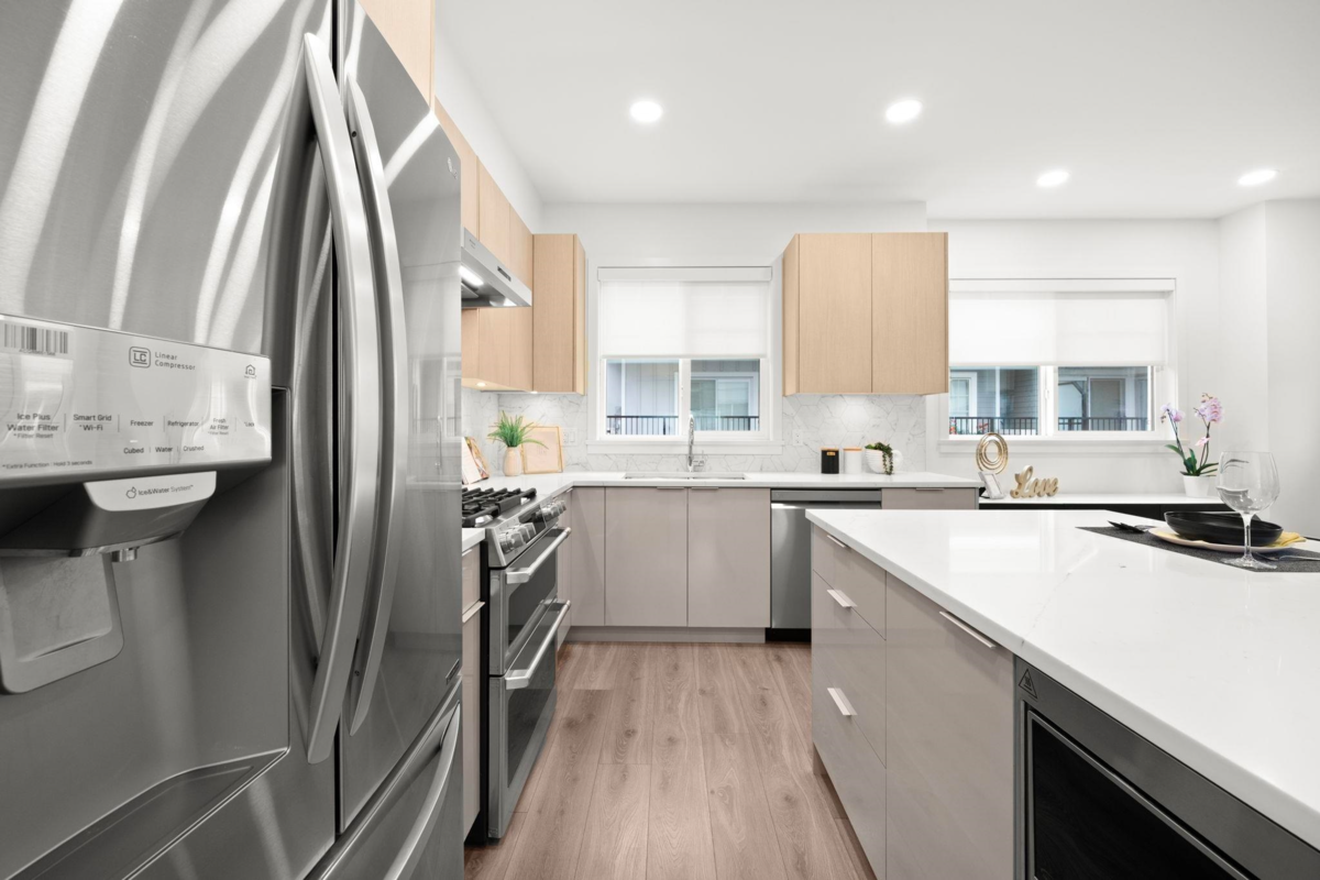 This 6-year-new fully detached townhouse offers the privacy of a single home with nearly 2,000 SF and no shared walls, while strata handles exterior maintenance. A side-by-side garage with EV charging adds convenience. The bright main level features 9-foot ceilings and an open-concept living and kitchen area with a large island, Café six-burner gas range with dual ovens, tile backsplash, and LG French-door fridge. The lower level provides flexible space for a media room, playroom, or in-law suite. Upstairs are four bedrooms including a primary with spa-style ensuite. A fenced backyard and central Richmond location near schools, parks, Garden City Plaza, and transit complete this home. Book your private showing today. [OPEN HOUSE 1/31 (SAT) 2-4PM]