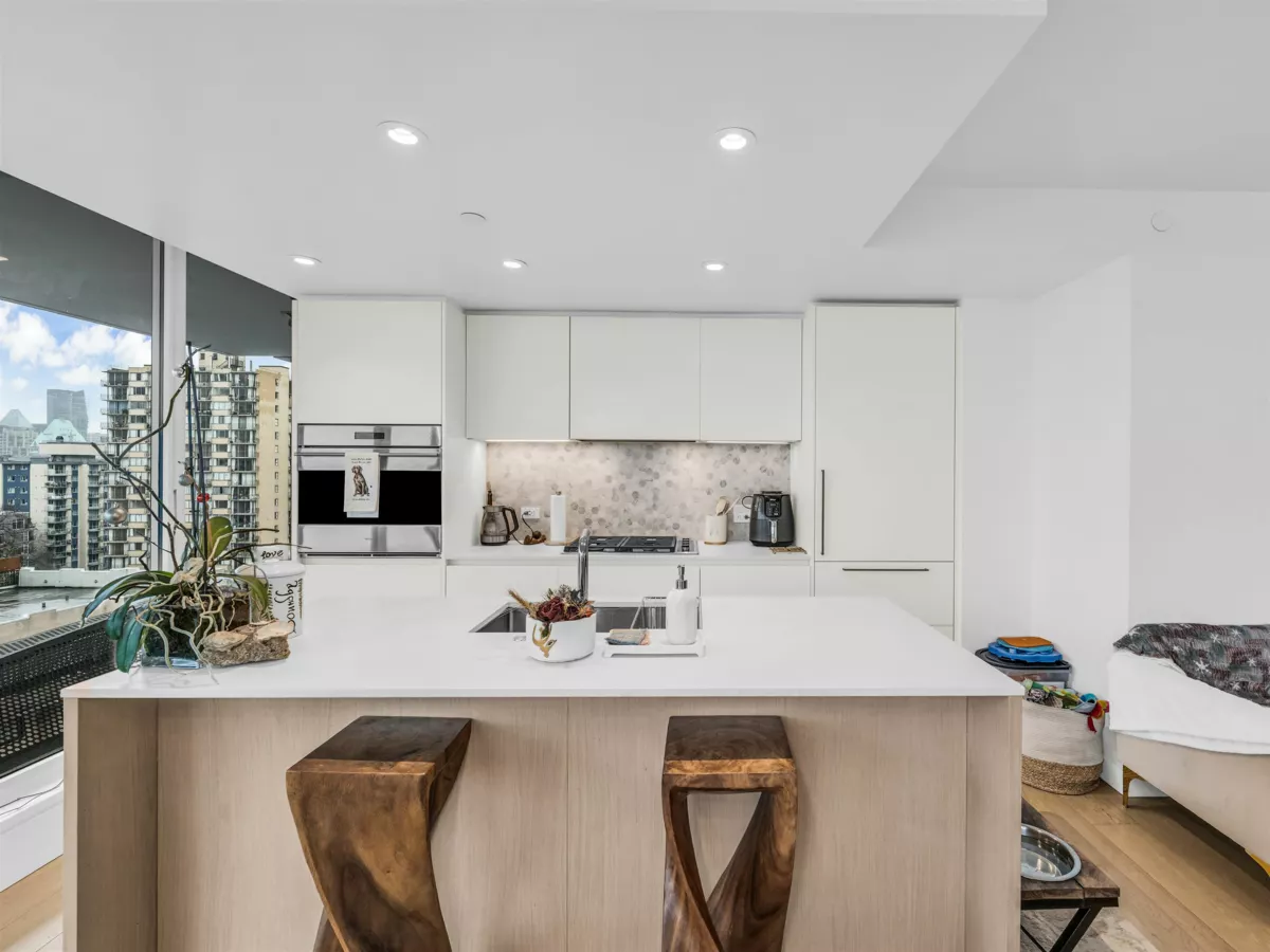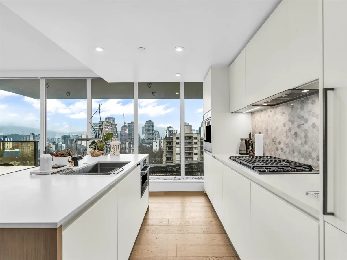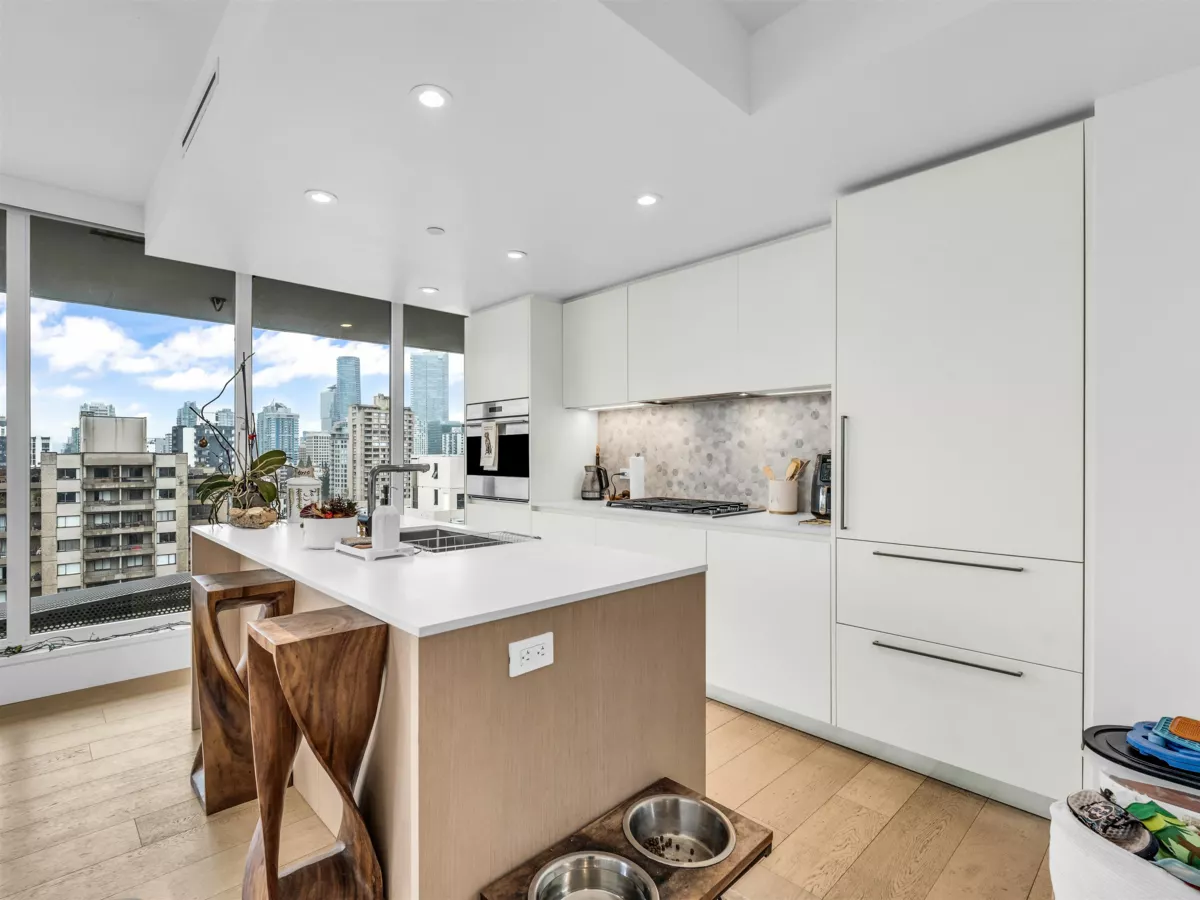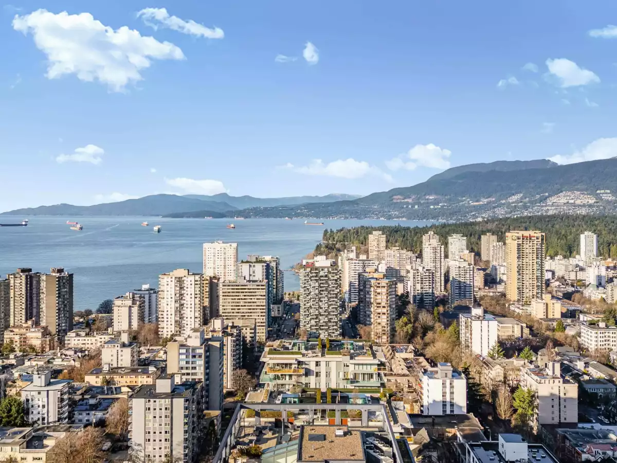 High above the West End, this two-bedroom, two-bathroom home invites you to enjoy endless city and ocean views with a thoughtful layout in one of Vancouver’s most vibrant neighbourhoods. Each bedroom has its own ensuite, offering comfort and privacy, while a spacious covered balcony extends the living space outdoors. The open-concept living and dining areas are filled with natural light and showcase sweeping views. Just minutes from beaches, the seawall, and countless restaurants and cafes, this condo expertly blends comfort with the best of city living.