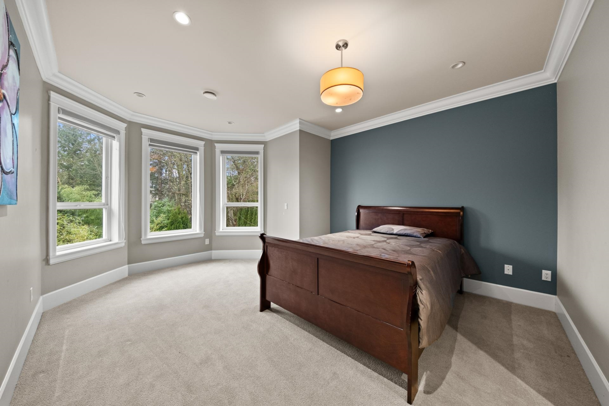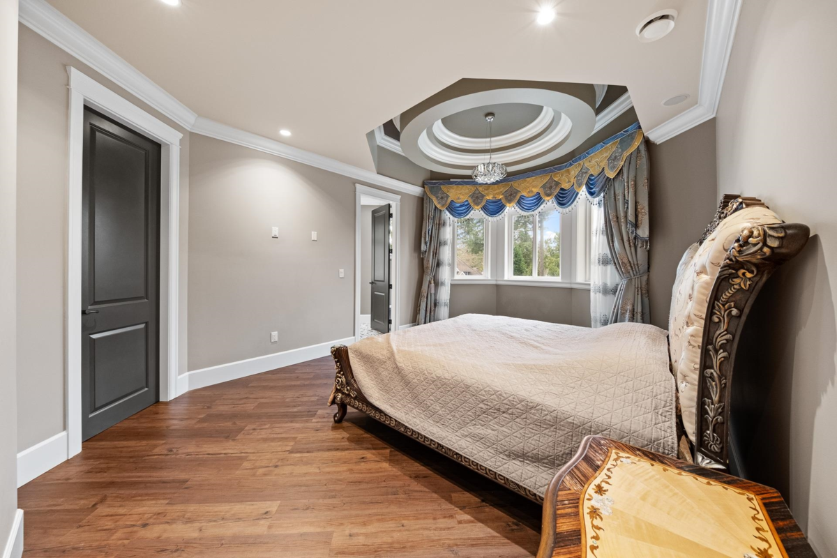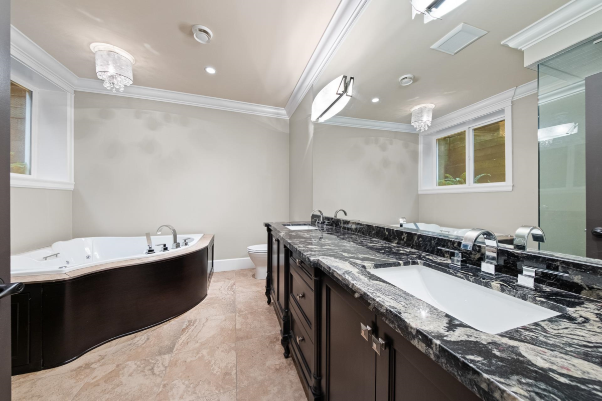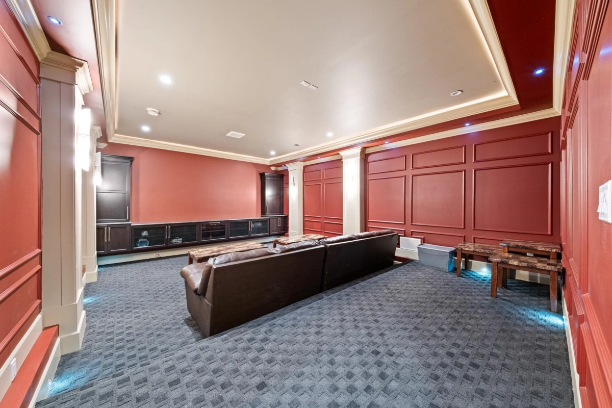 Exceptional residence in the prestigious Estates at Elgin Cree, ideally situated on a quiet cul-de-sac street offering privacy, exclusivity, and minimal traffic, with a desirable south-exposed backyard. This elegant custom-built home offers over 8,200 SF of refined living on an 18,514 SF lot. Highlights include soaring ceilings in the formal living room, a gourmet kitchen with separate wok kitchen, and an expansive family room designed for both everyday living and entertaining. The home features 8 bedrooms and 8 bathrooms, along with a fully equipped media room, games room, large L-shaped recreation room, private gym, and a spa-inspired sauna and steam room in the 8th bathroom. Beautifully landscaped grounds showcase a water feature, extensive decking, and a full sprinkler system.