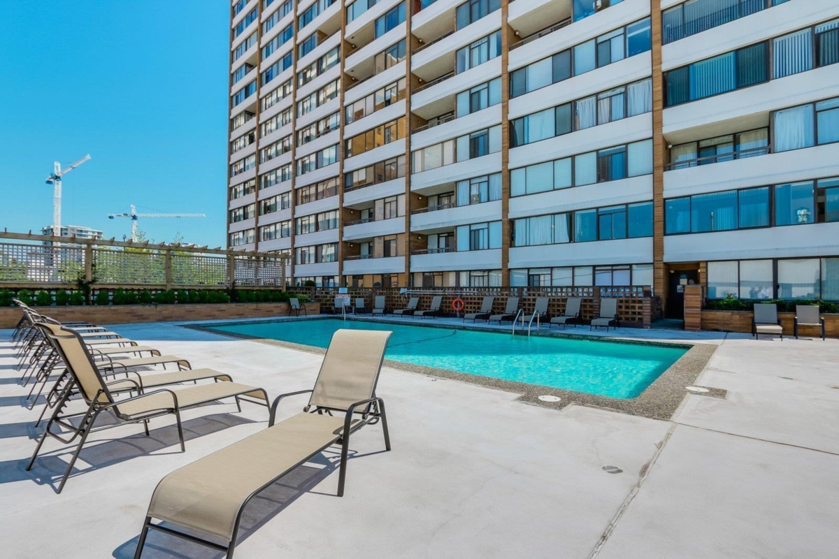 Located in a concrete high-rise across from Richmond Centre Mall, this bright one-bedroom home offers stunning views of Minoru Park, the Gulf Islands, and the airport. Just steps from the SkyTrain, Richmond Centre for Active Living, library, seniors centre, ice arenas, and hospital, this prime location ensures convenience at your doorstep. Upgraded with a modern kitchen and sleek laminate flooring. Newly enclosed balcony. Monthly strata fee of only $305.72 includes heat, hot water, electricity and City Utility bill.